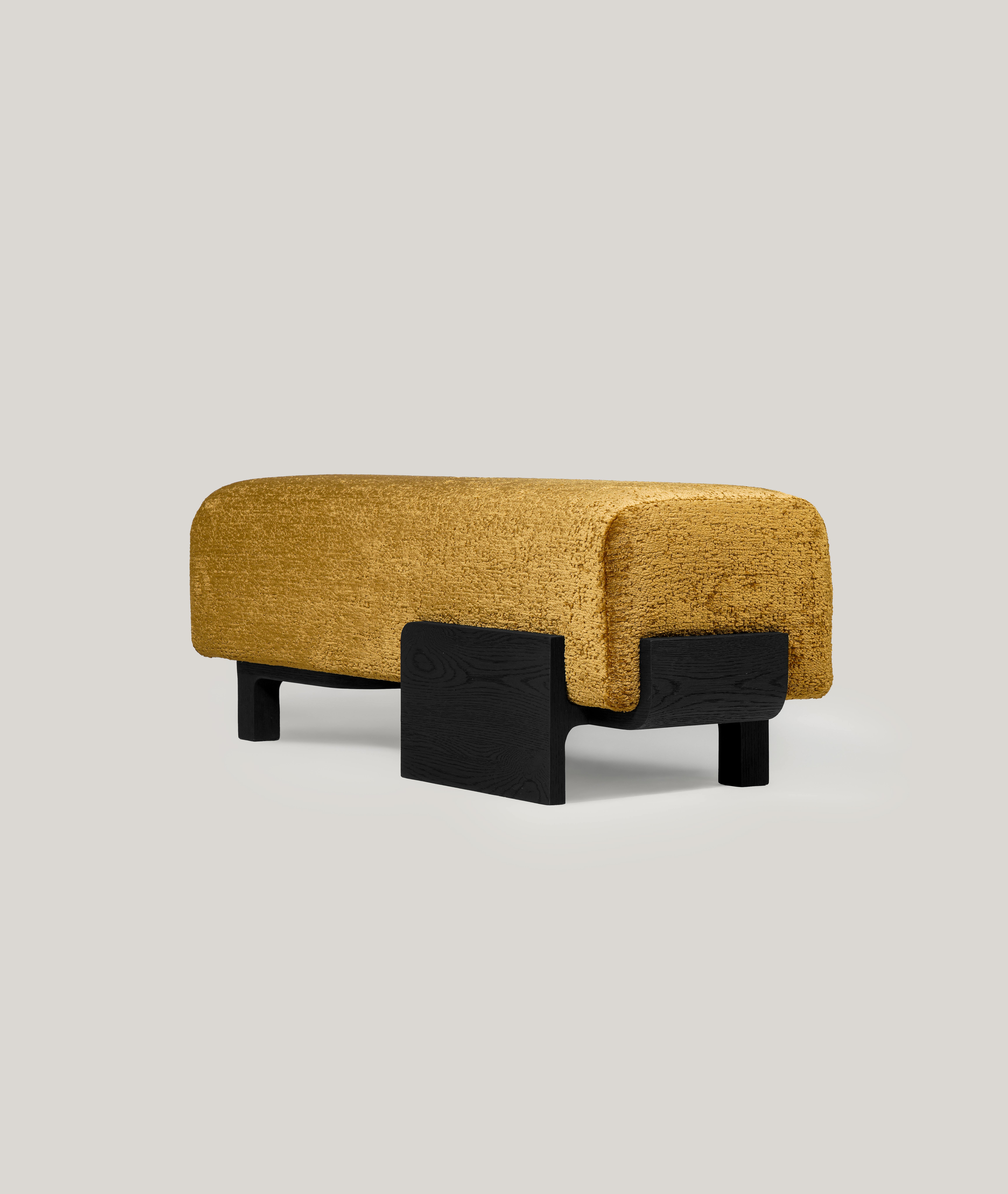 The seat is upholstered with Freddo Ambra by Pierre Frey.