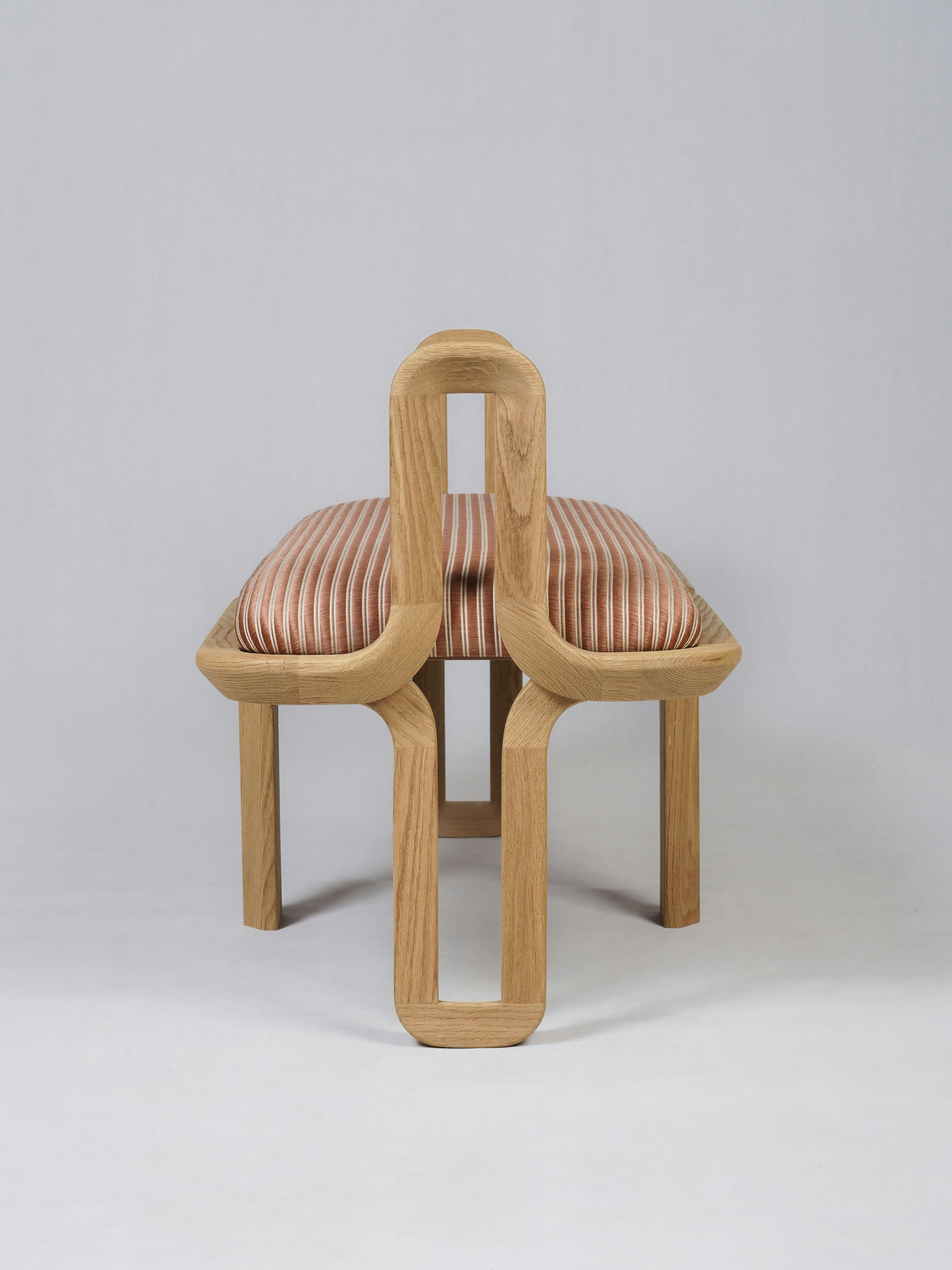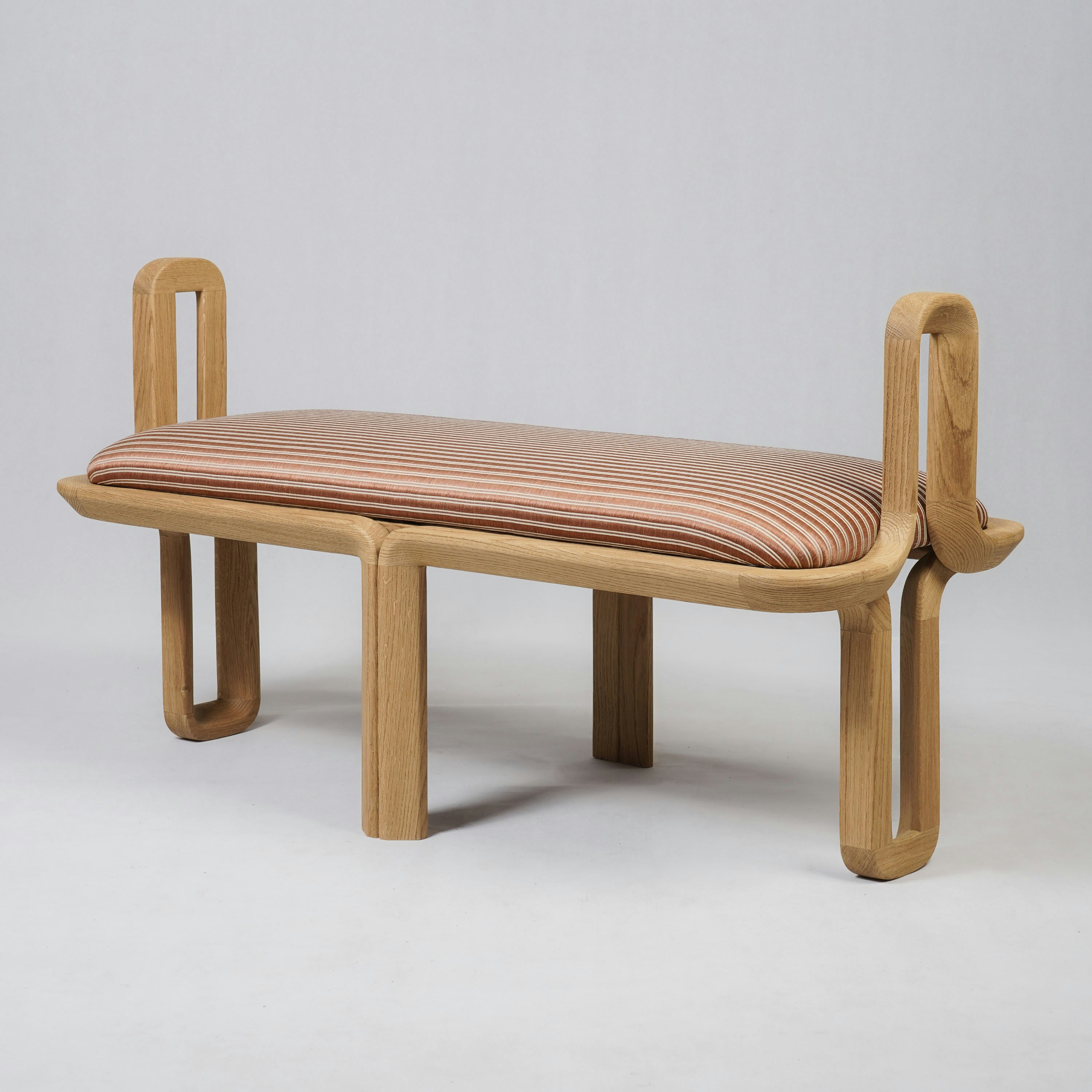 Bench pictured in European oak upholstered with horse-hair in Christiane Rose/Beige.