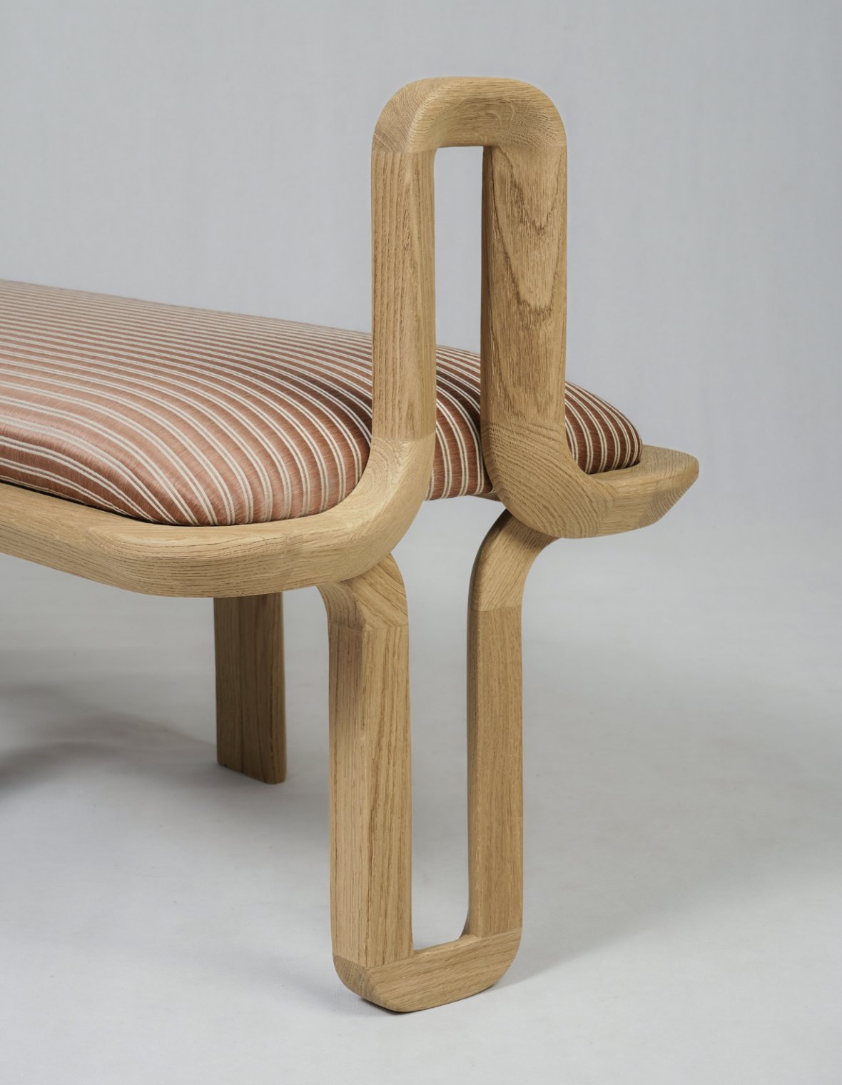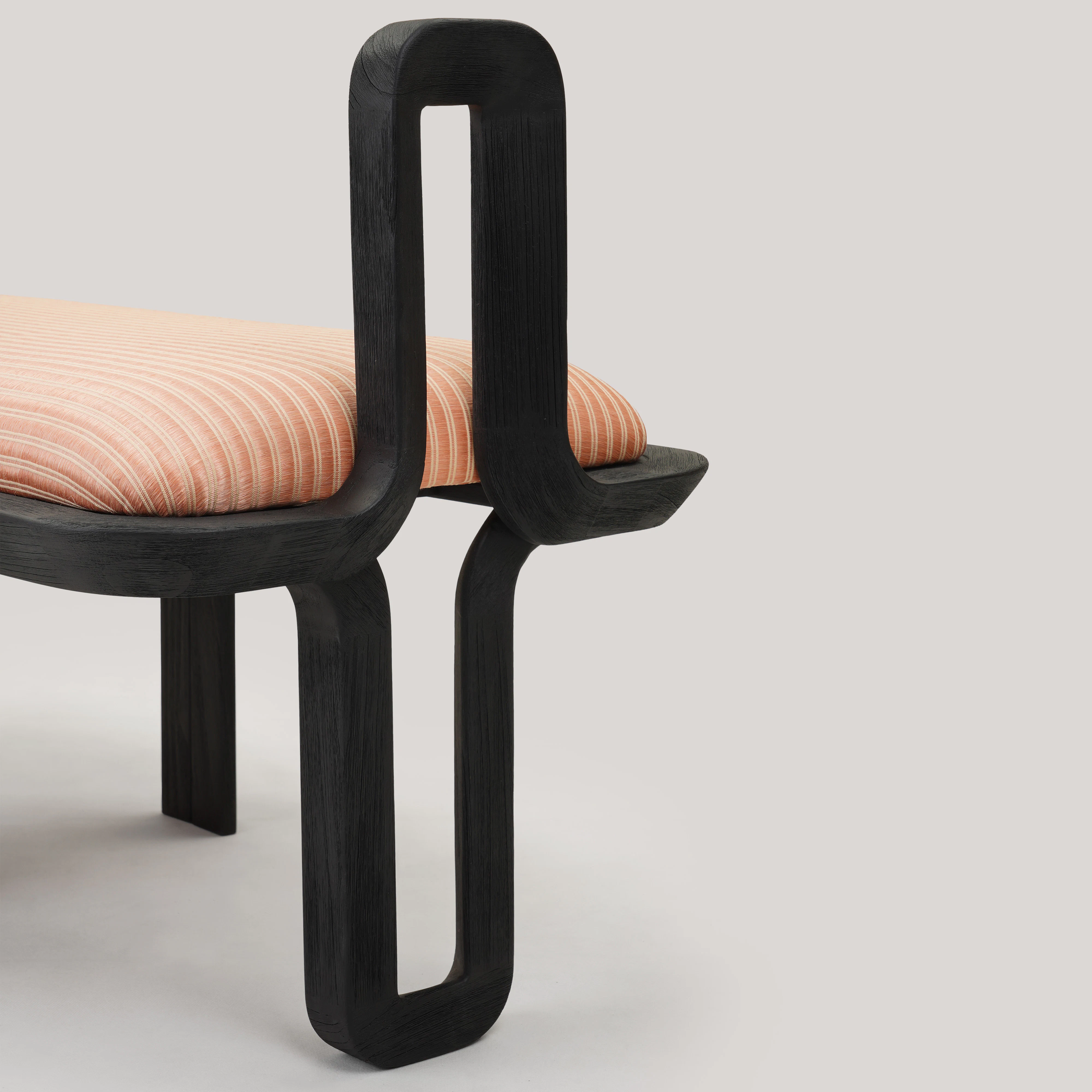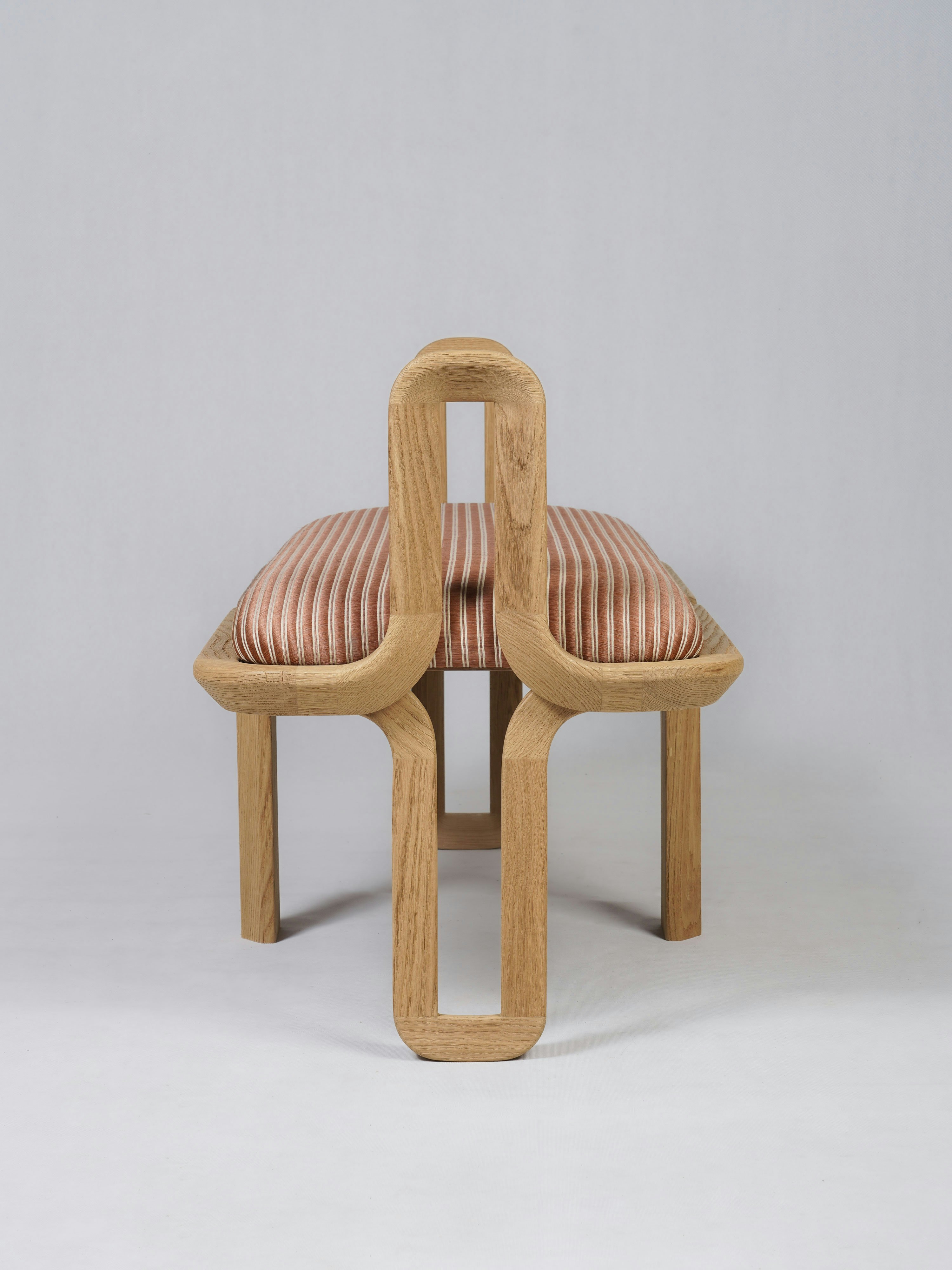 The seat is upholstered with Le Crin Christiane Brique by Métaphores.