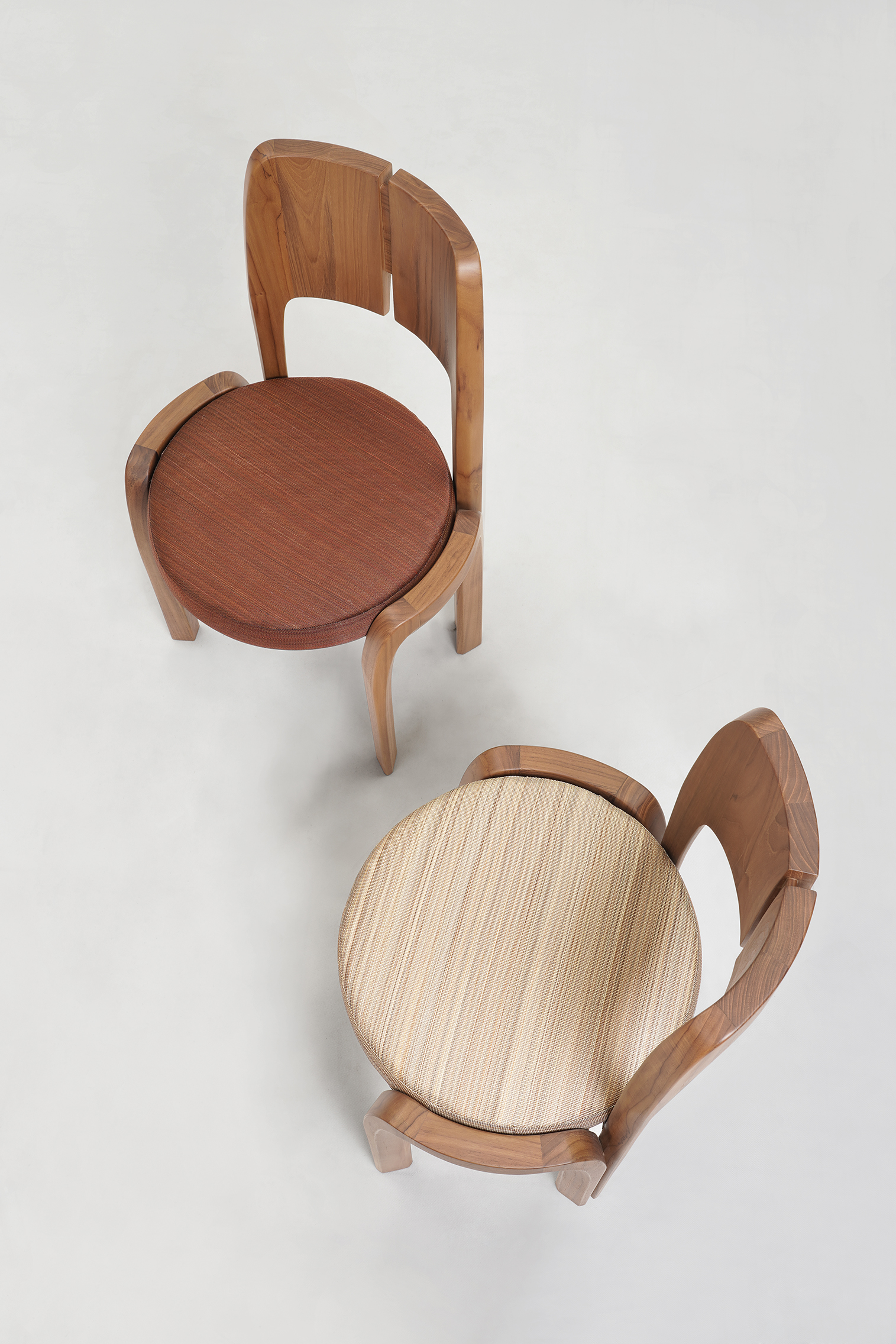 The seat is upholstered with Cavalcade Or by Métaphores.