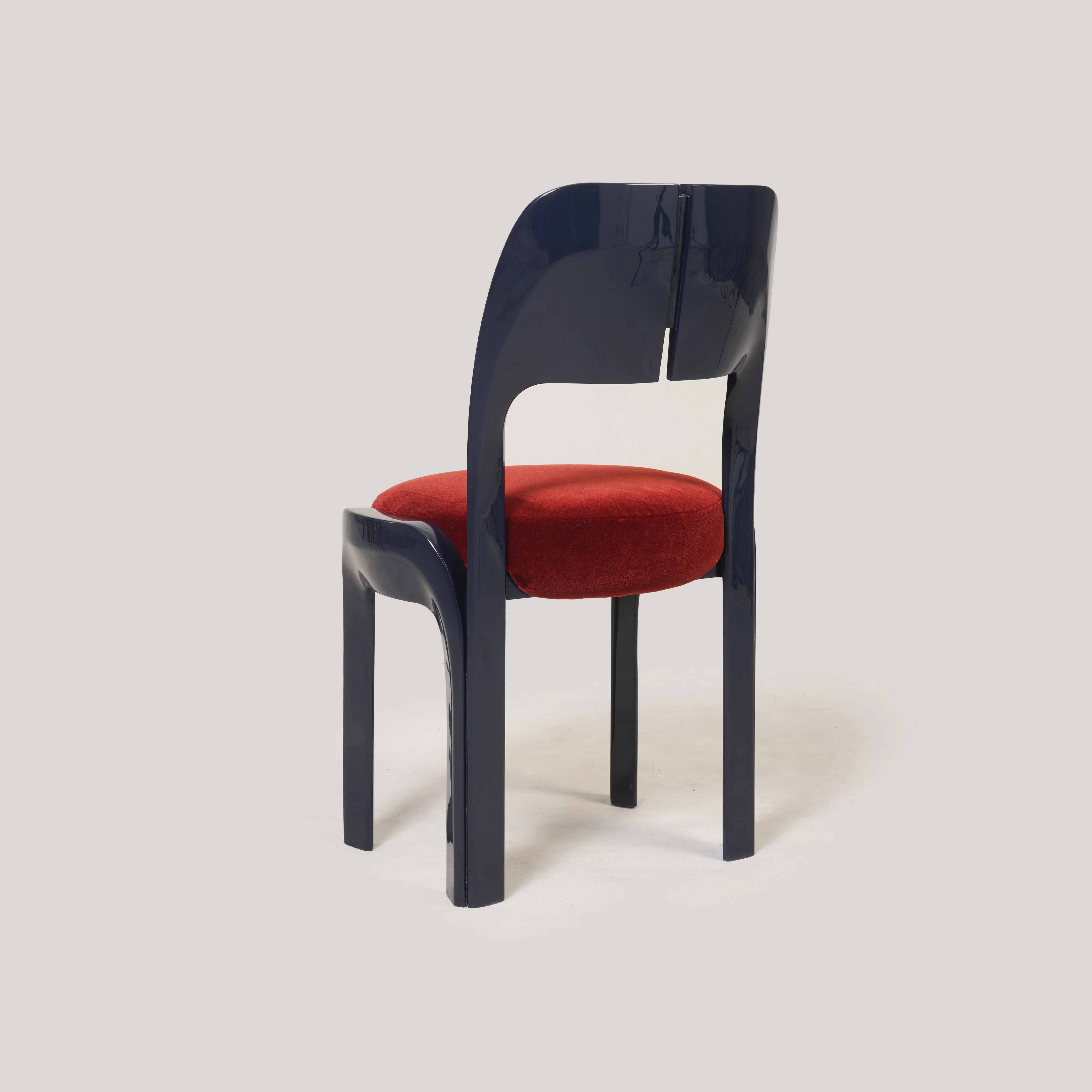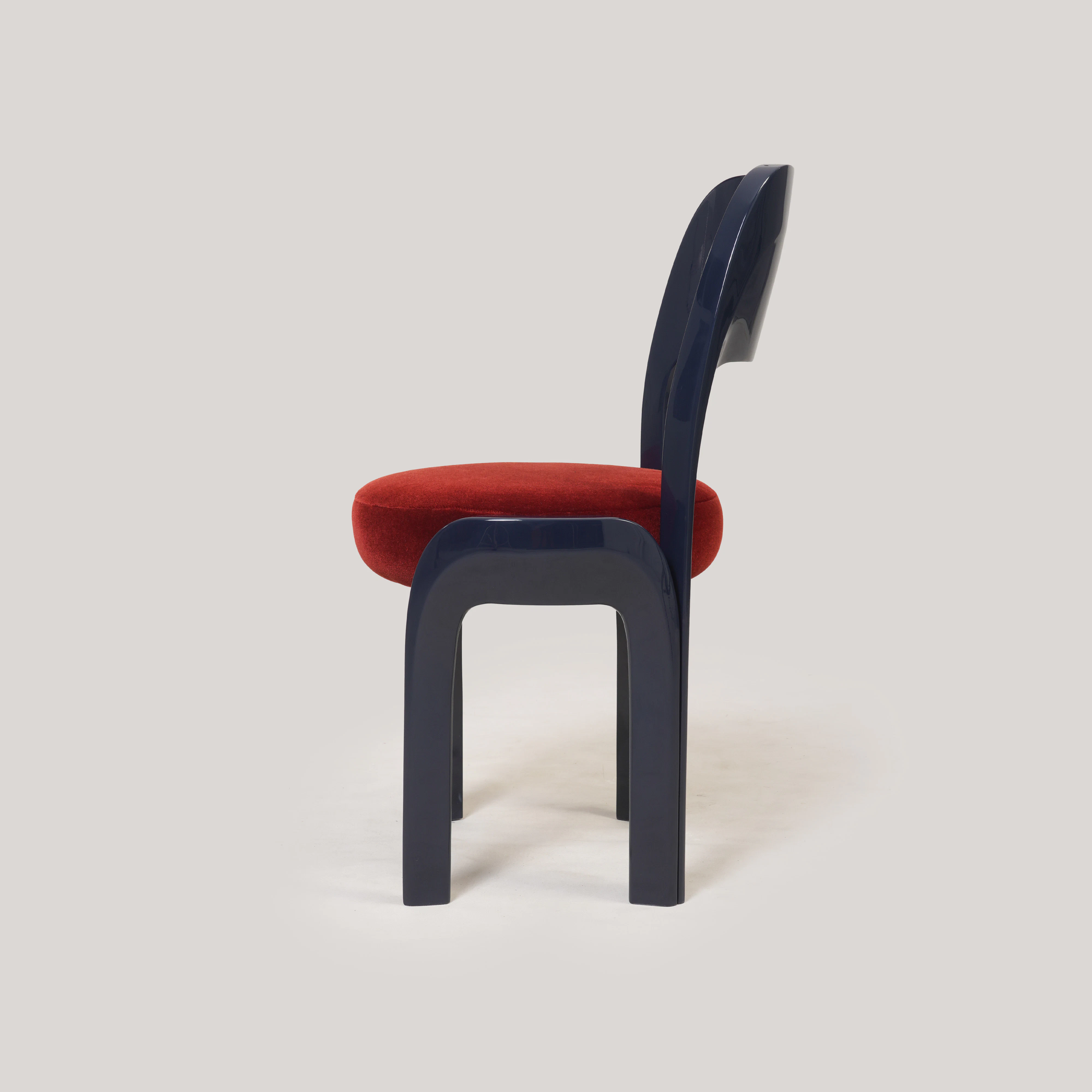 Dining chair pictured in indigo blue lacquer.