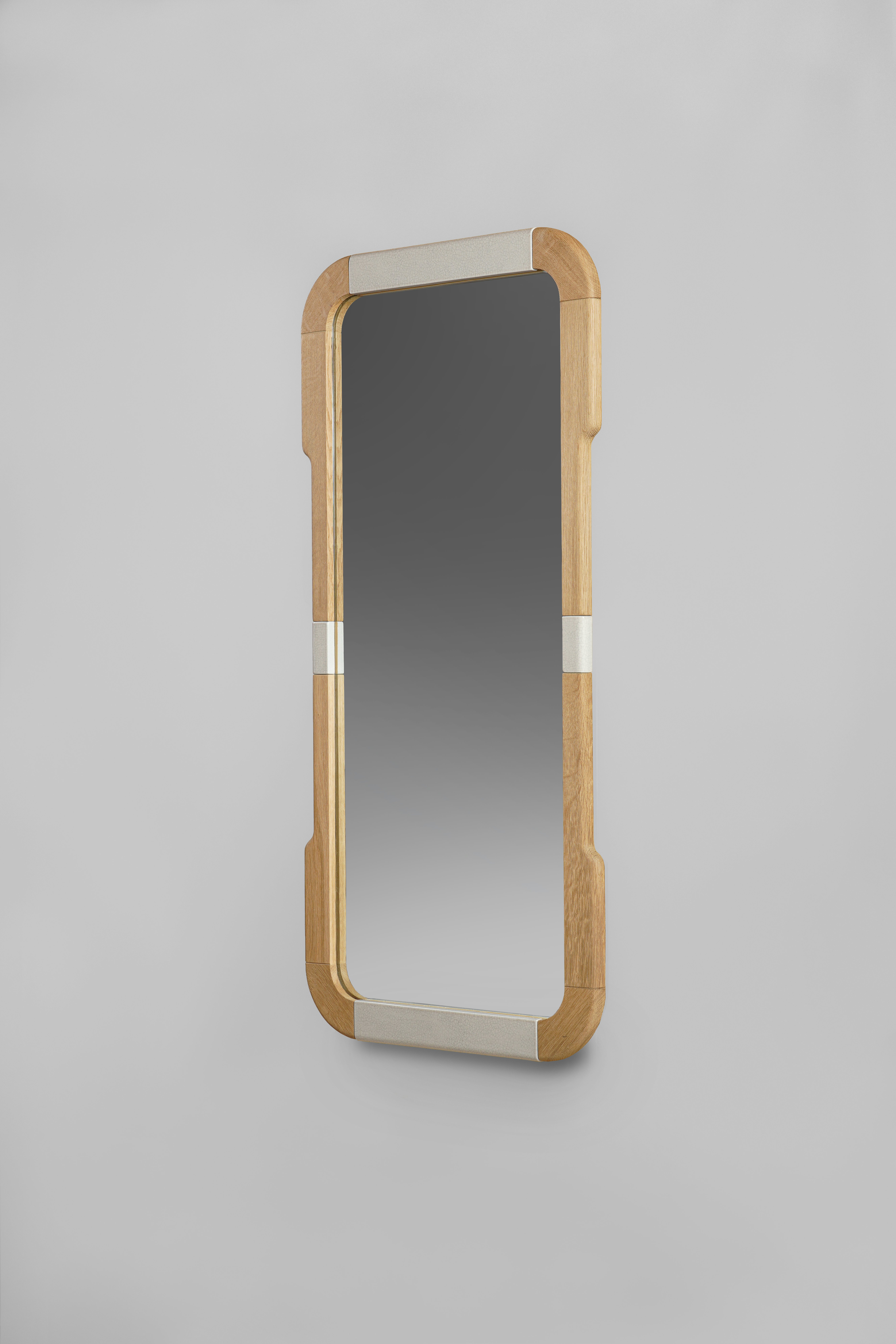 Mirror pictured in natural oak and raku blanc écru details.