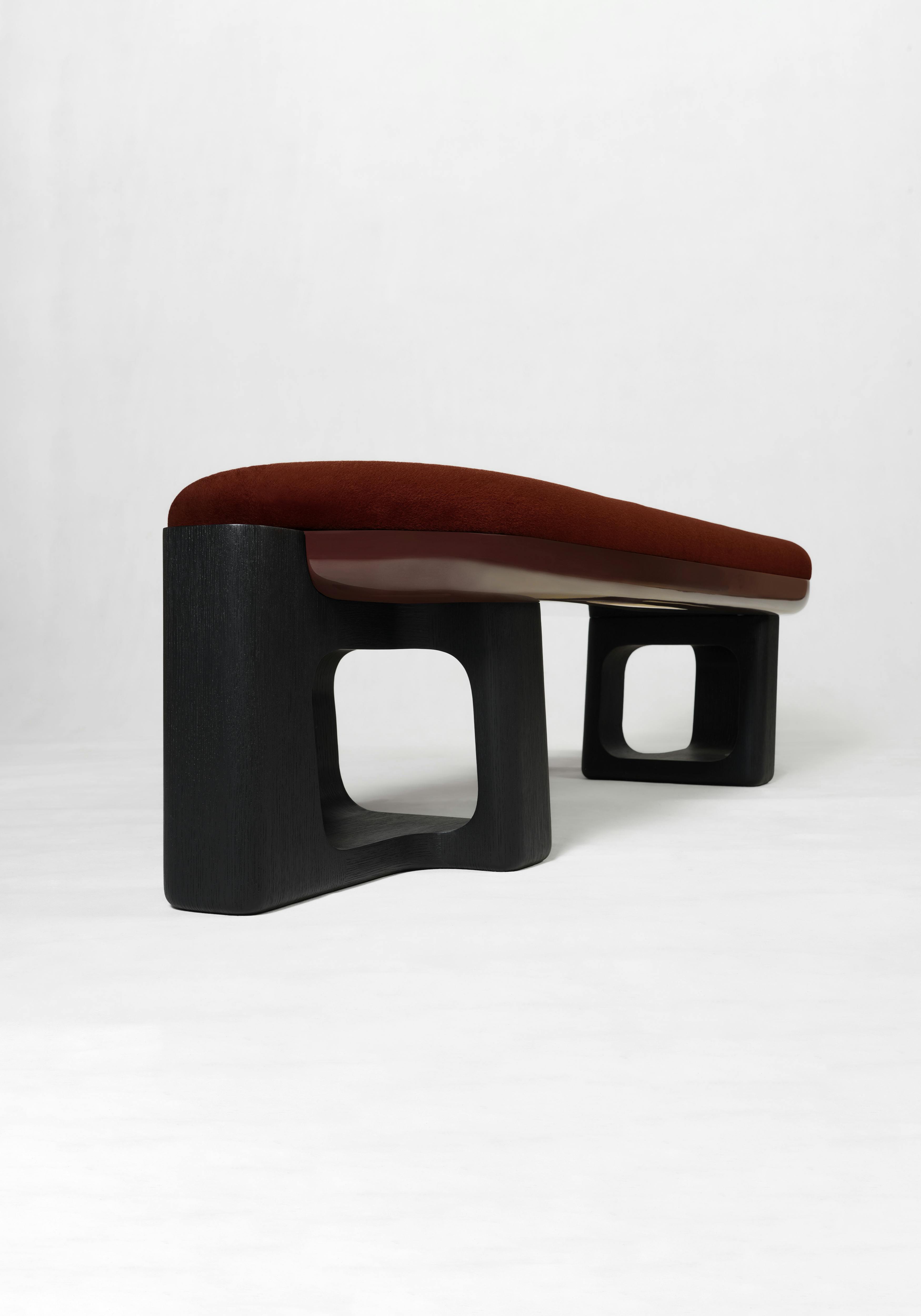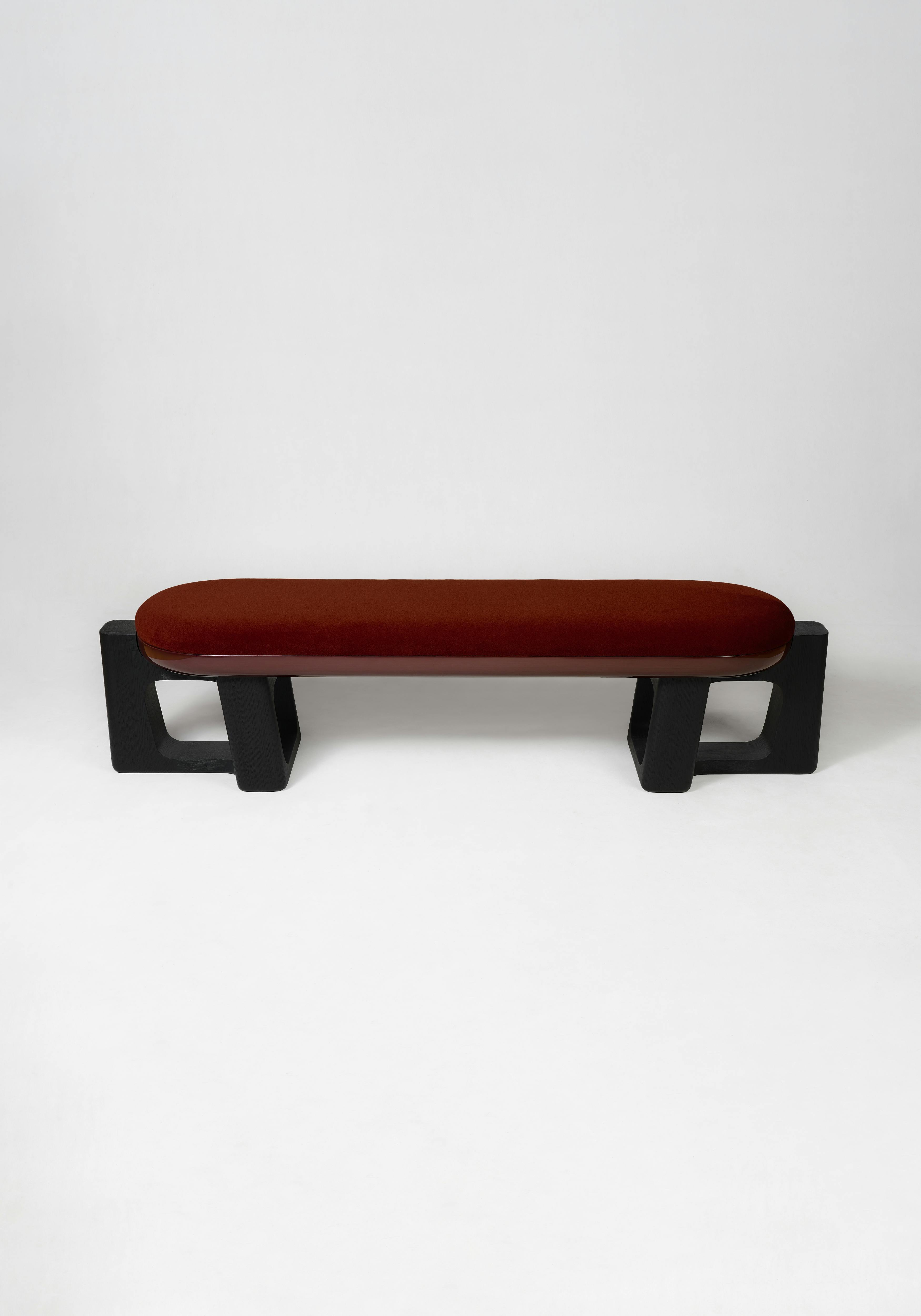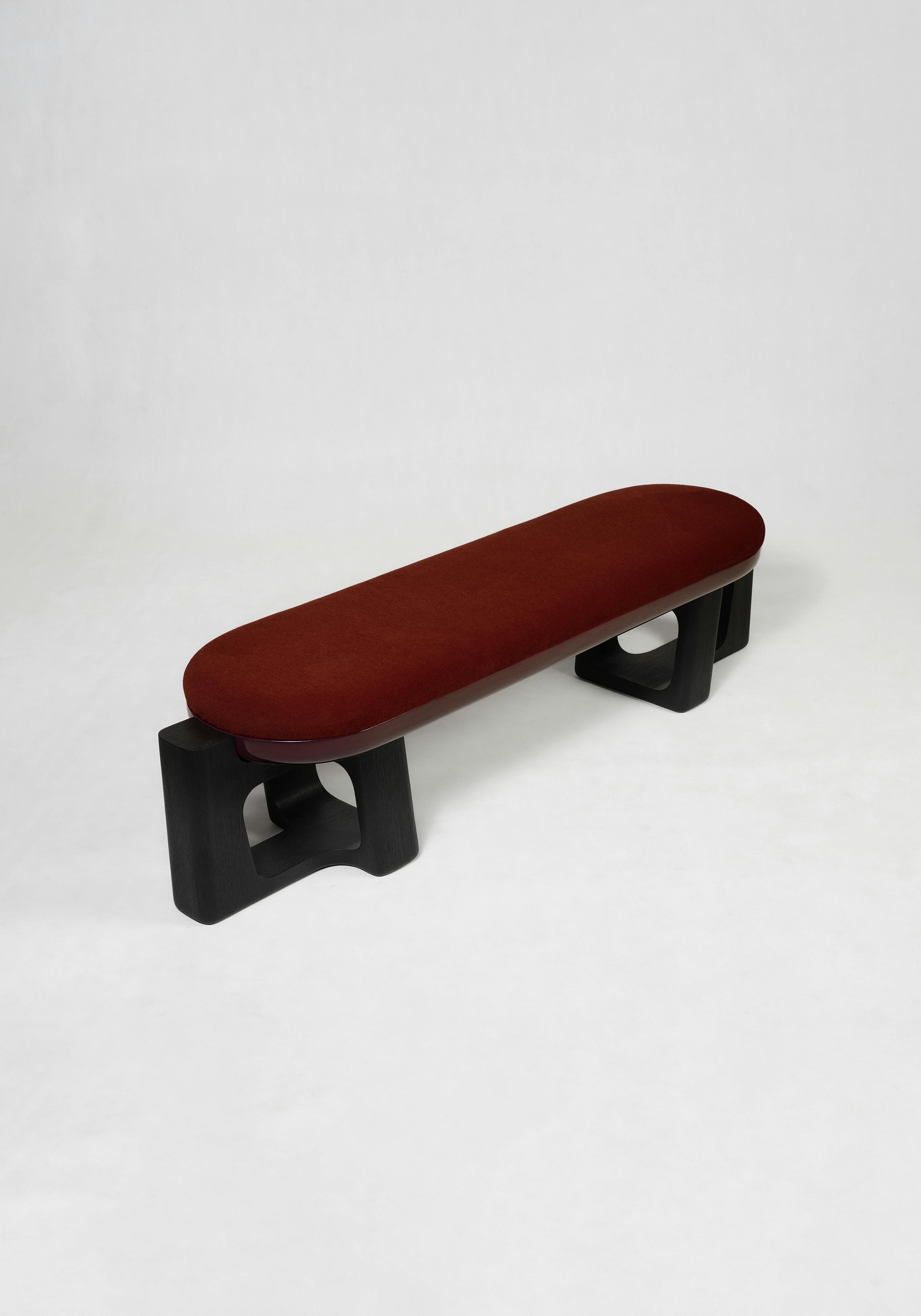 Bench pictured in black oak with an edging in black lacquer under the seat.