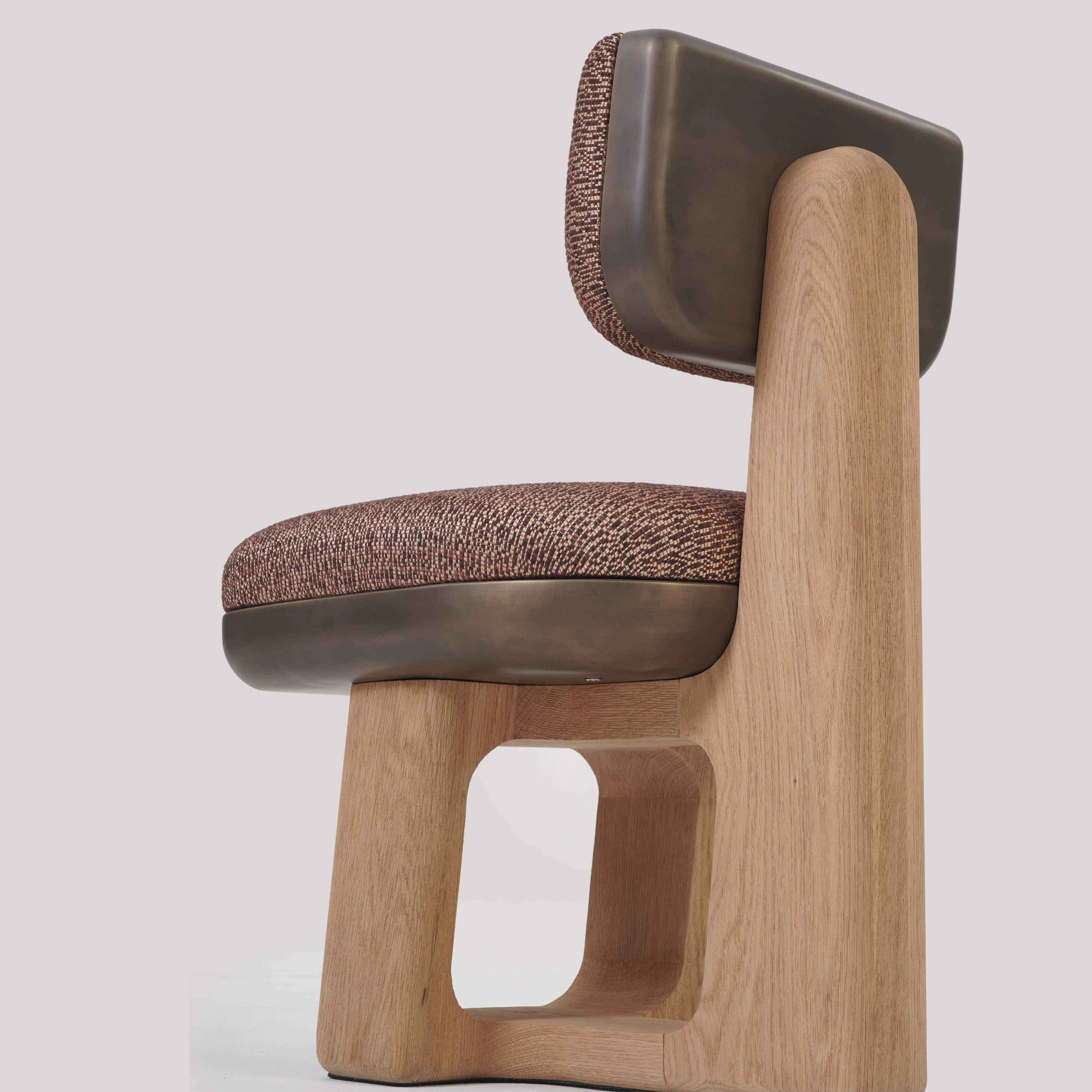 The seat and back are upholstered with the fabric Cocoon Marron Glacé by Métaphores.