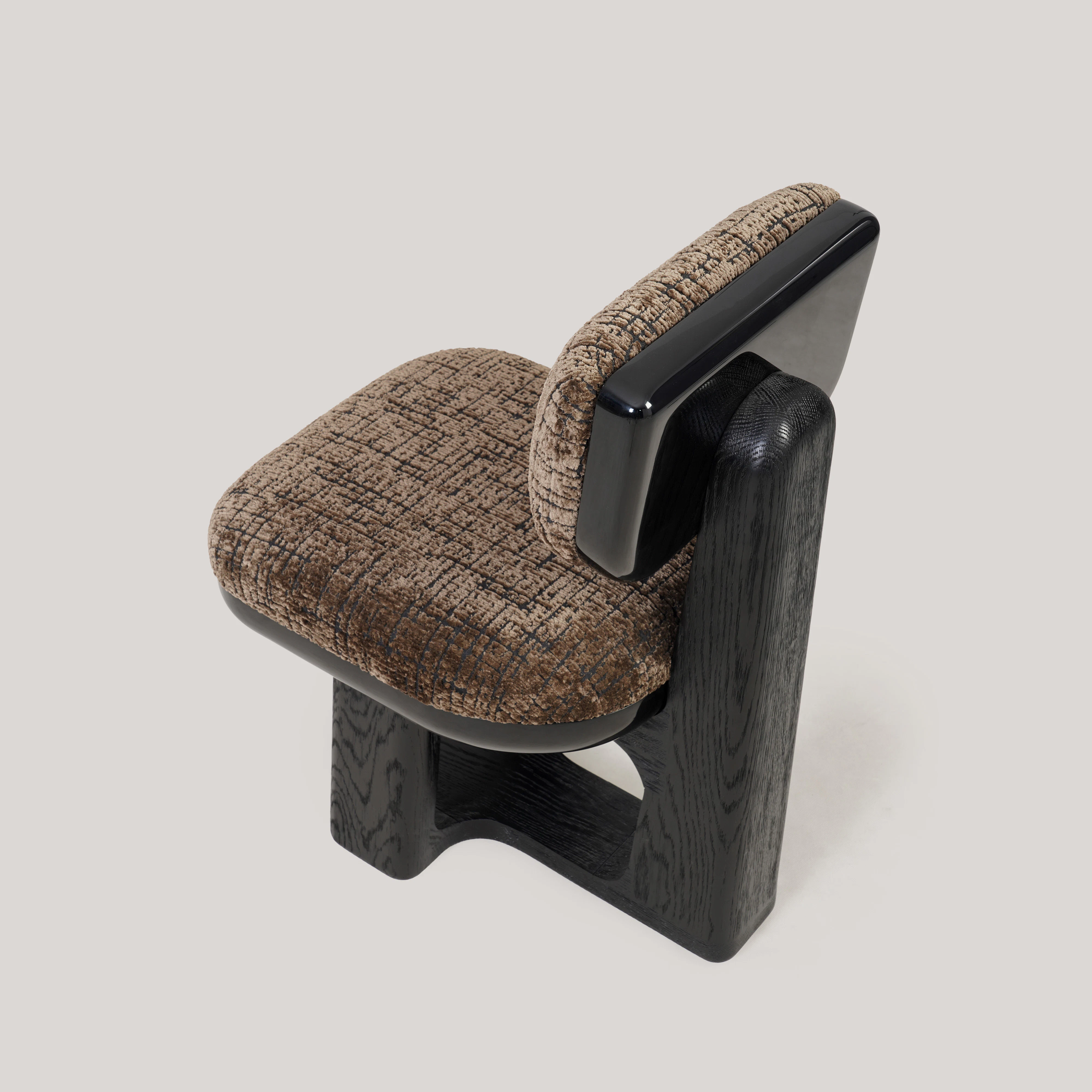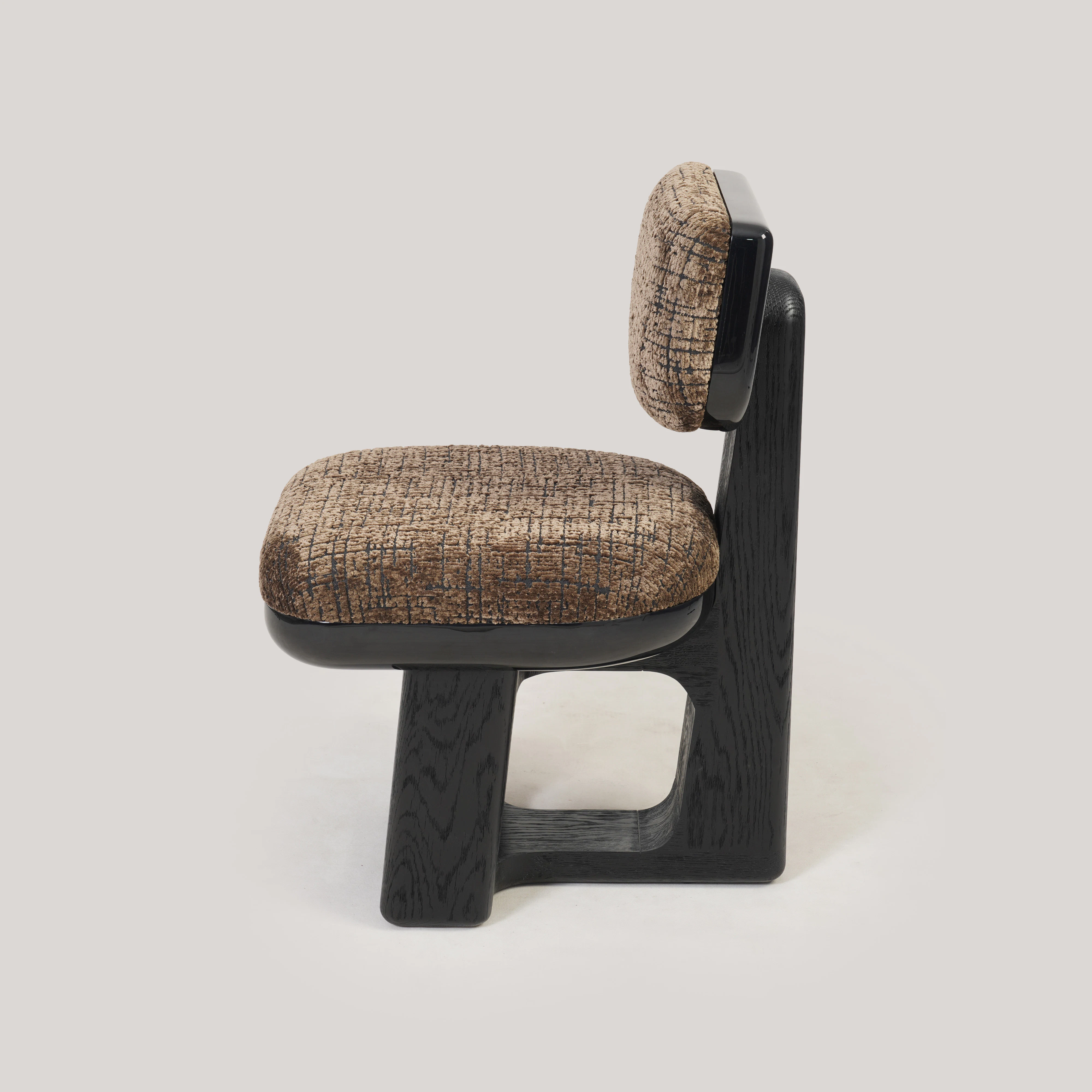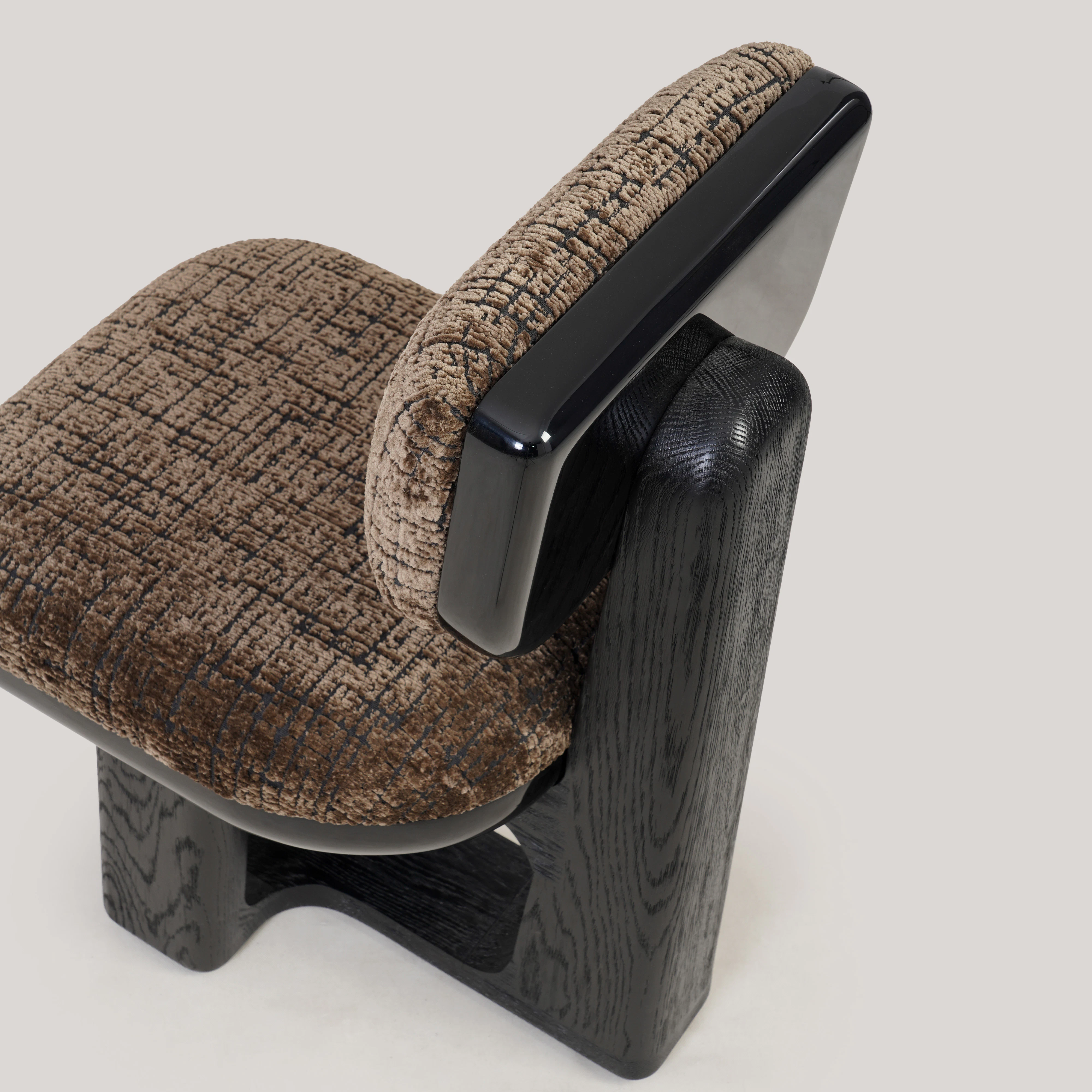 Dining chair pictured in black oak with a black lacquer edging behind the back and the seat.