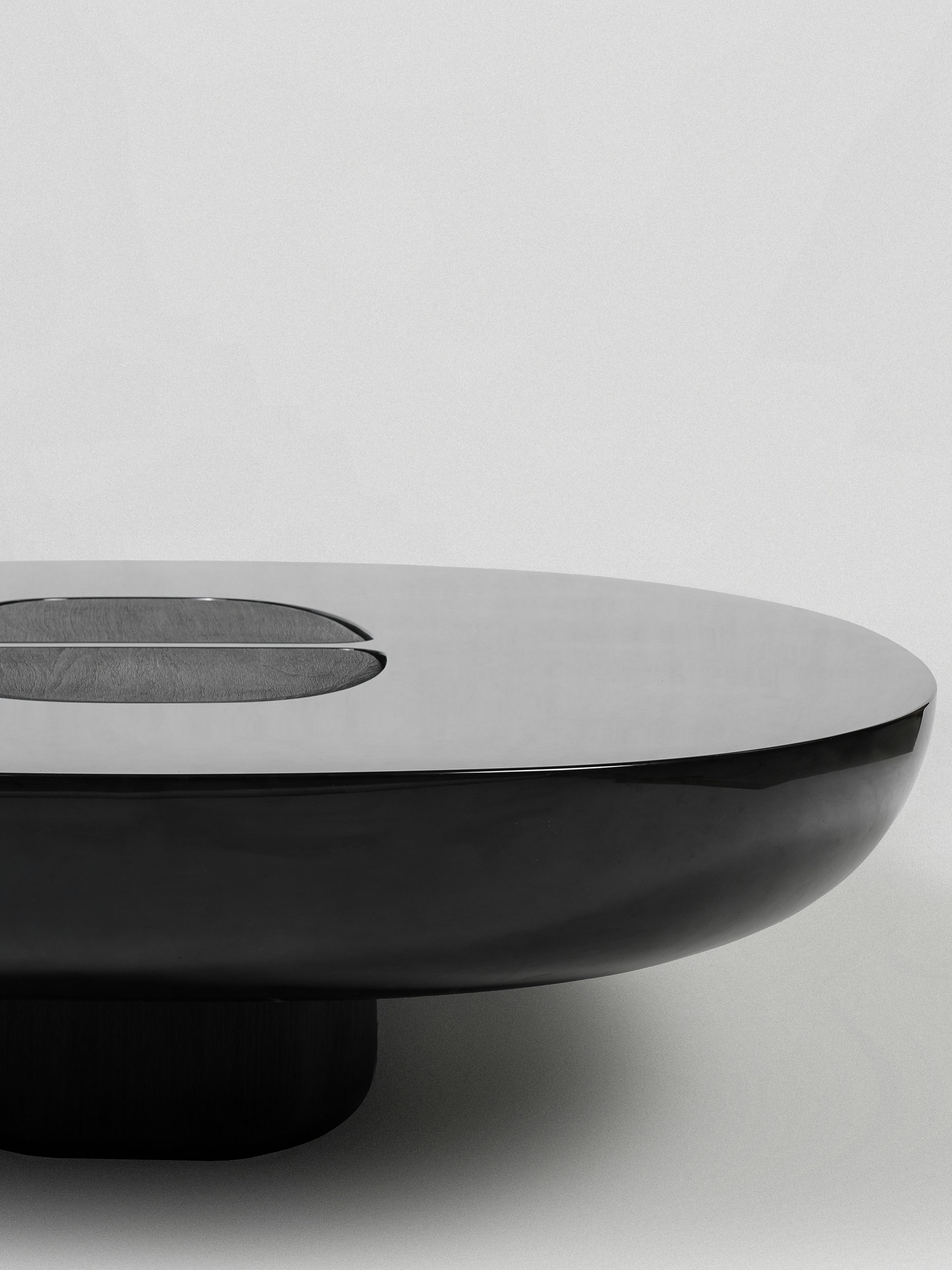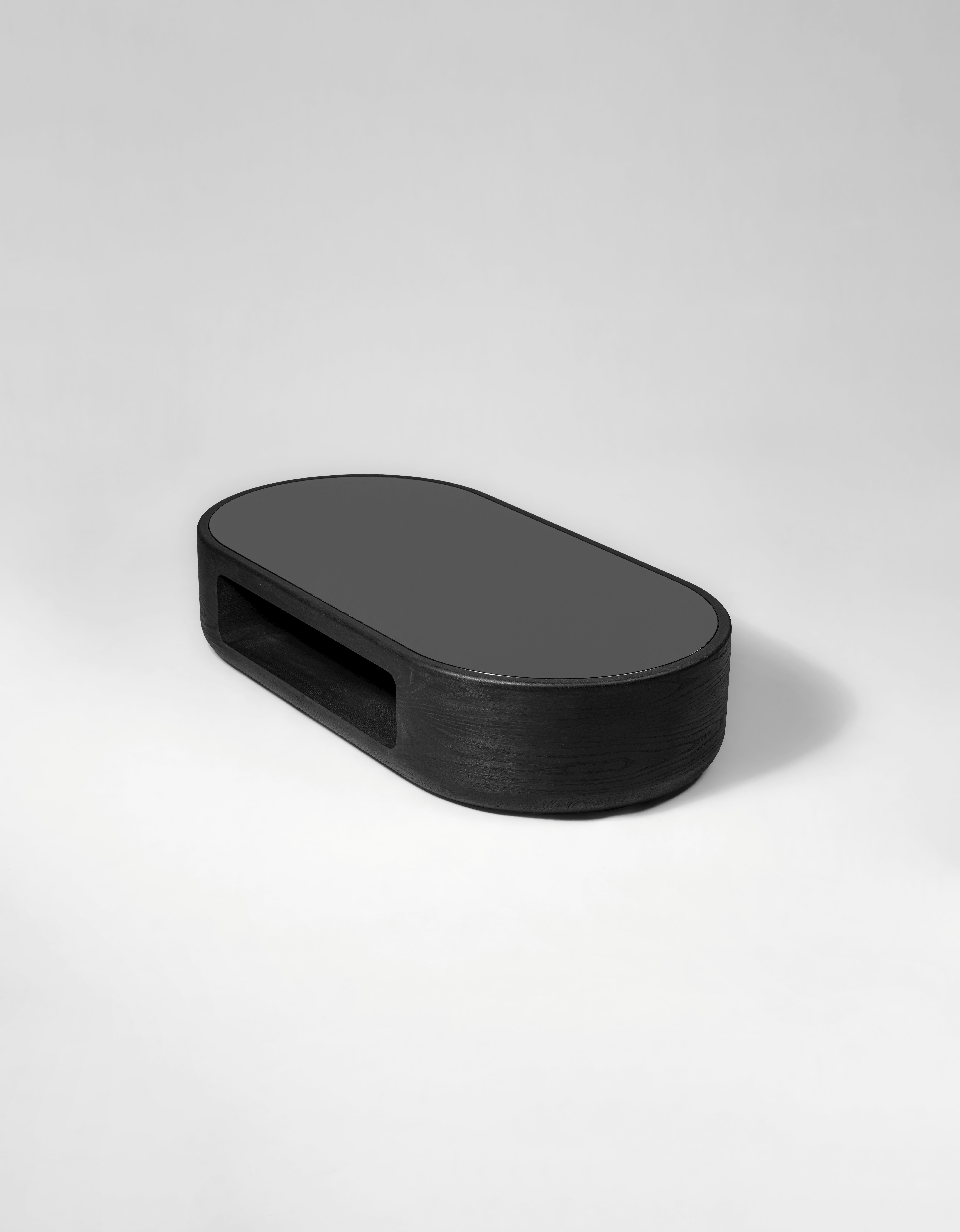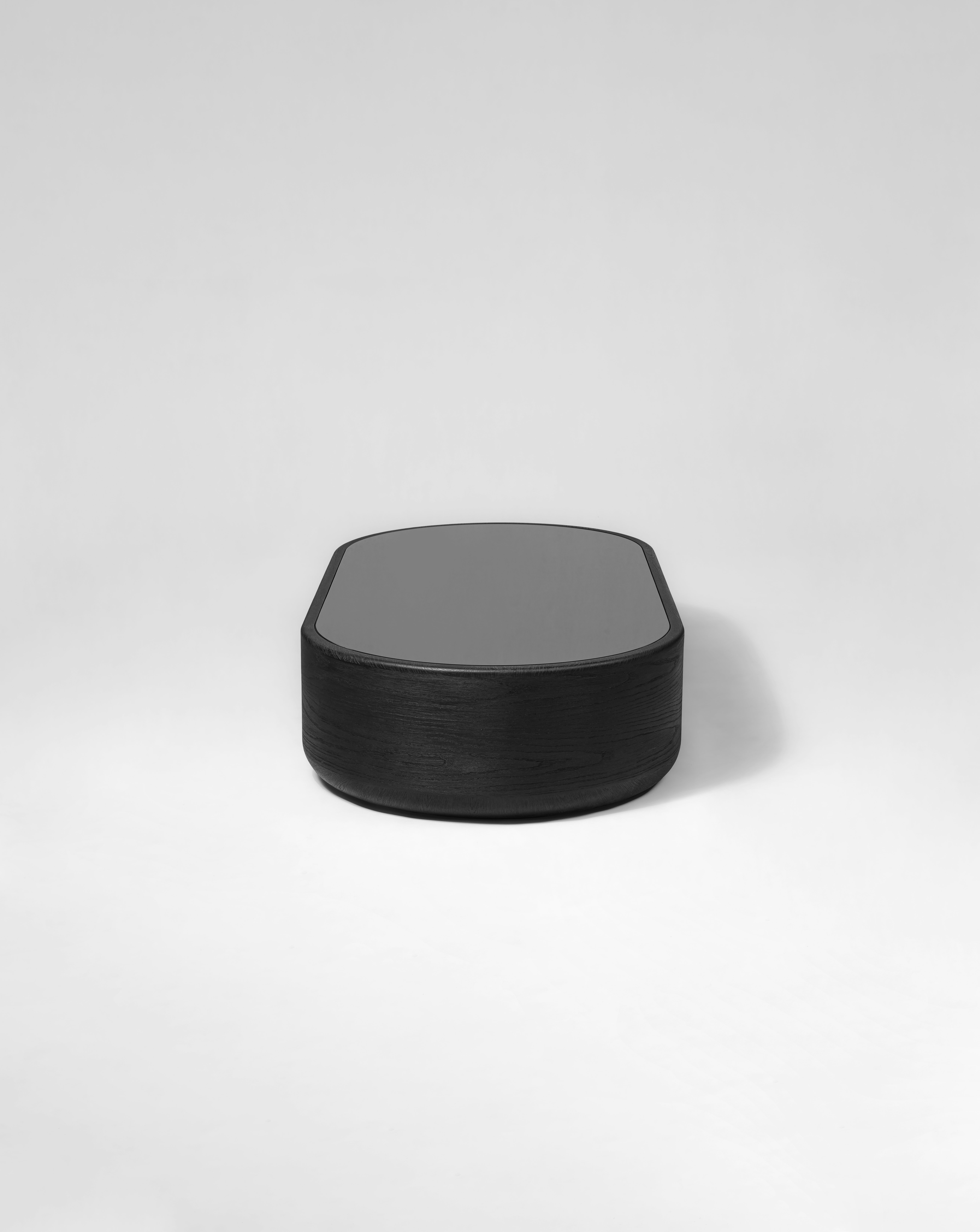 Coffee table pictured in black oak with a black lacquer tabletop.