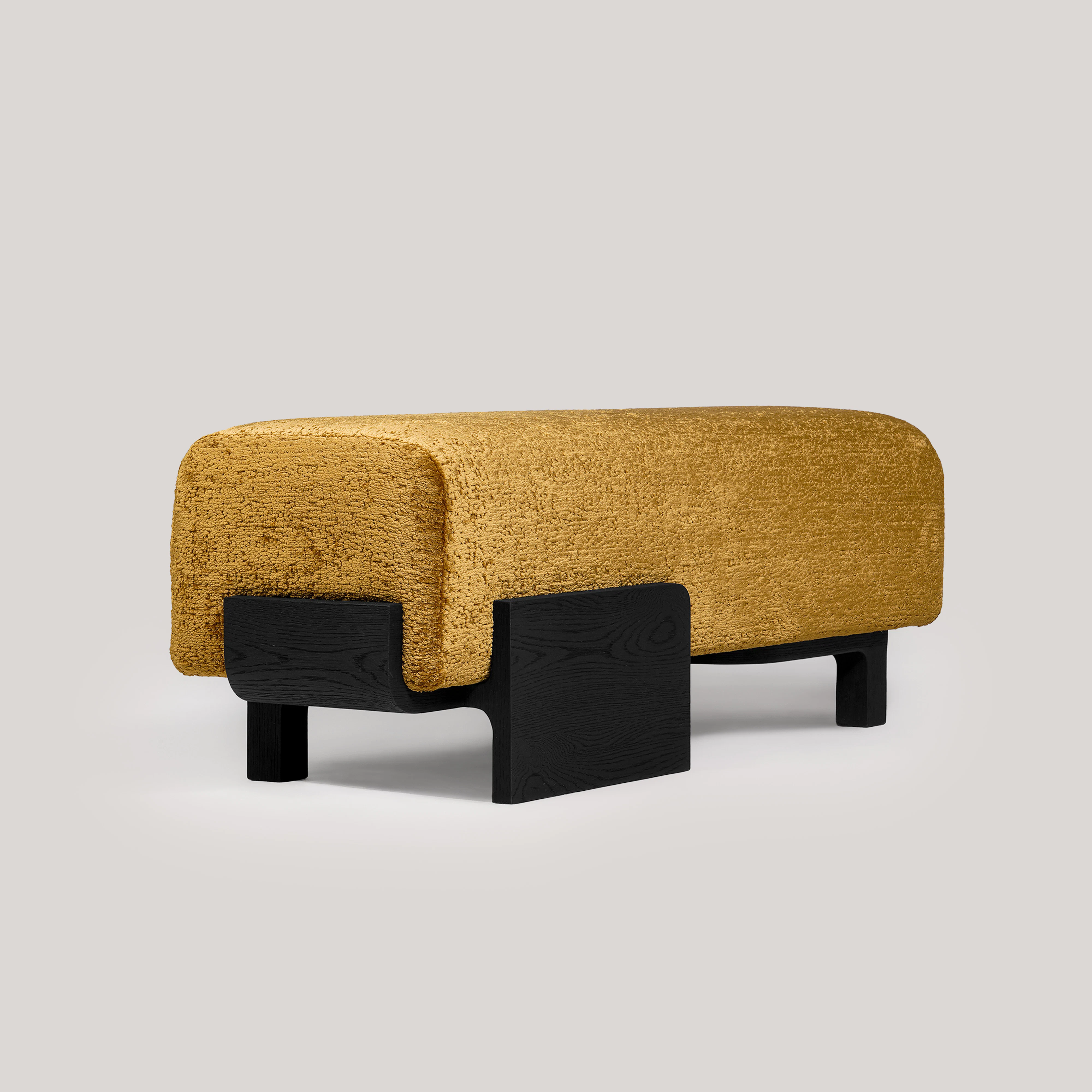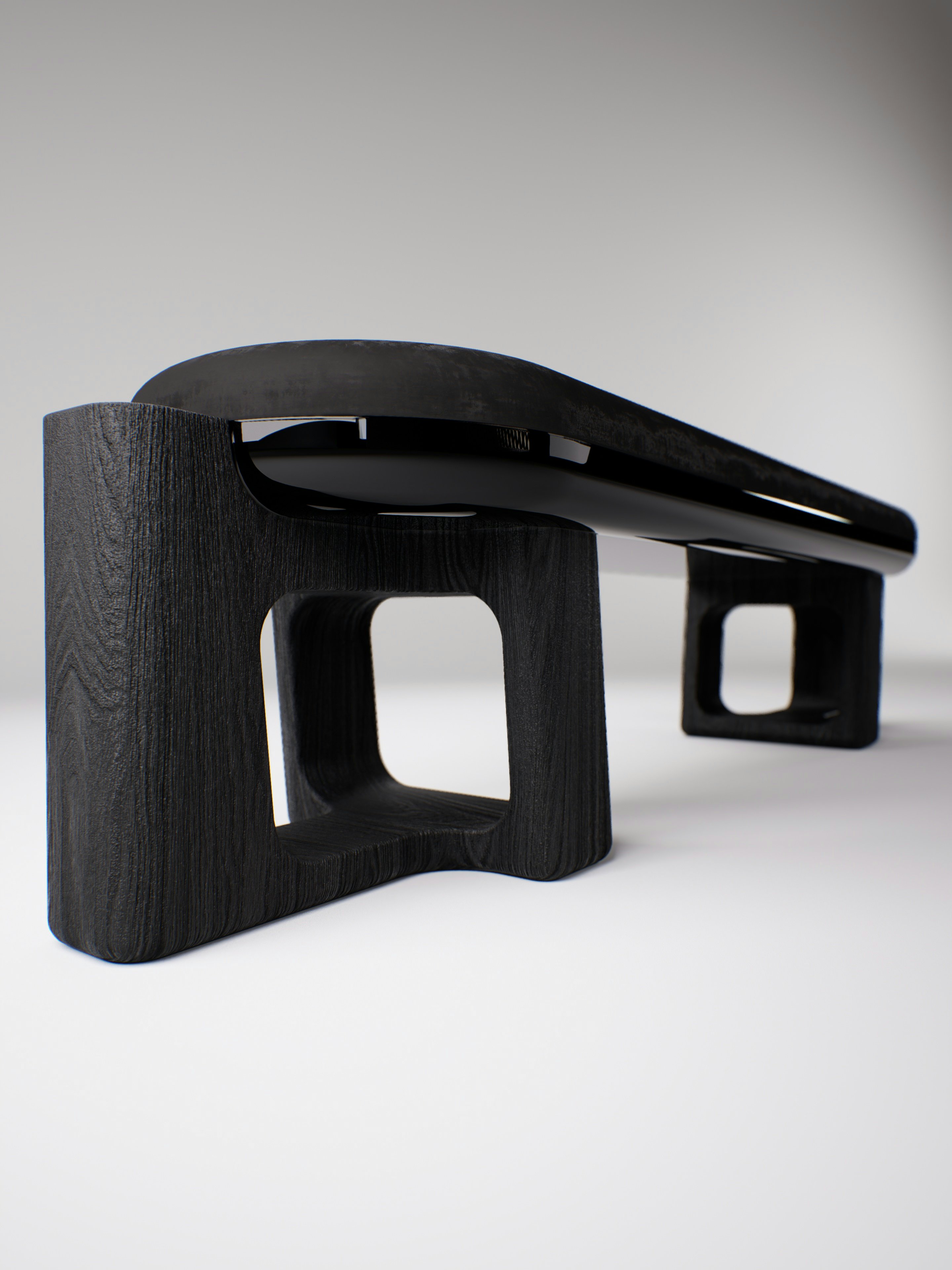 Bench pictured in black oak with an edging in black lacquer under the seat.