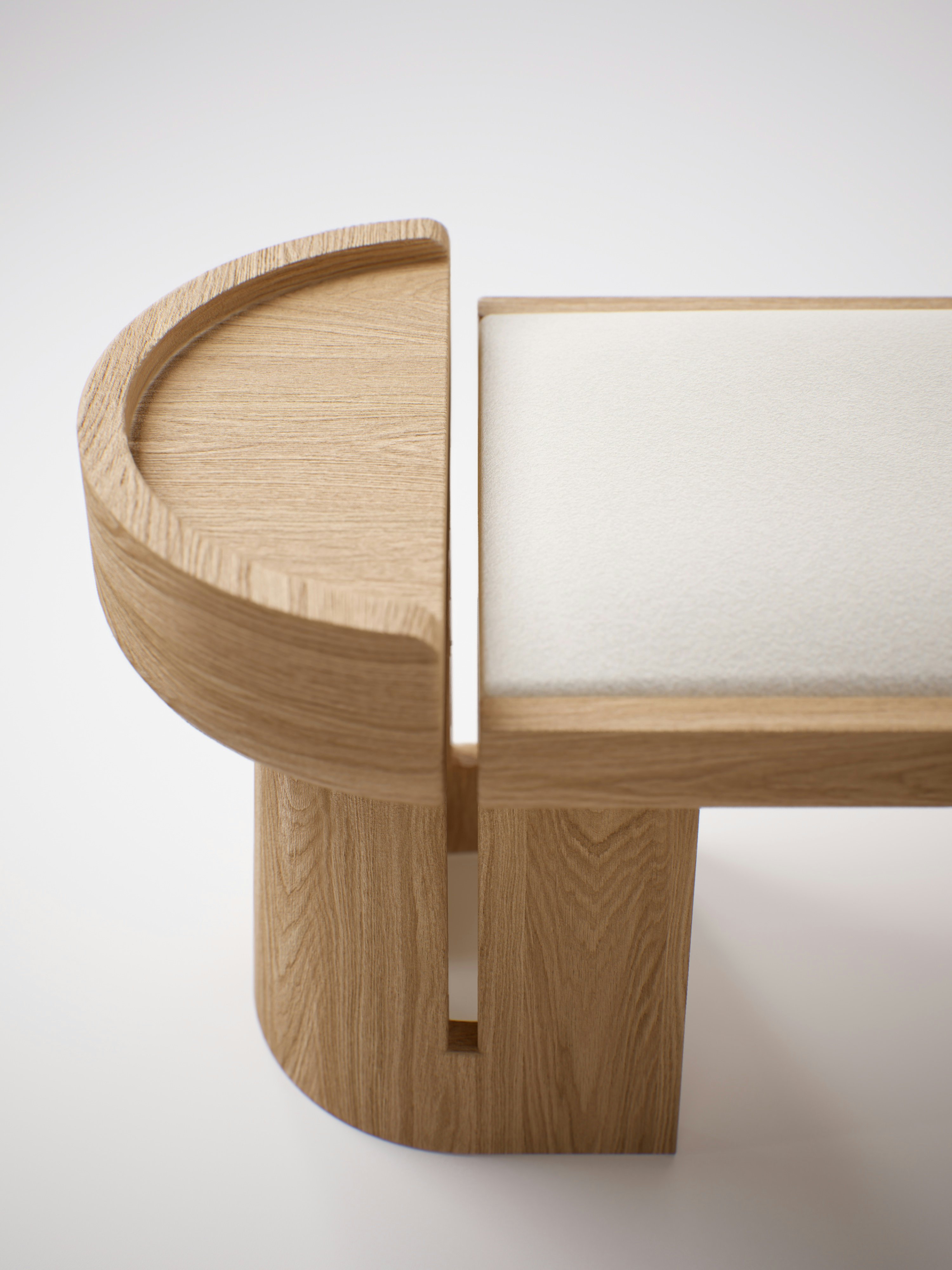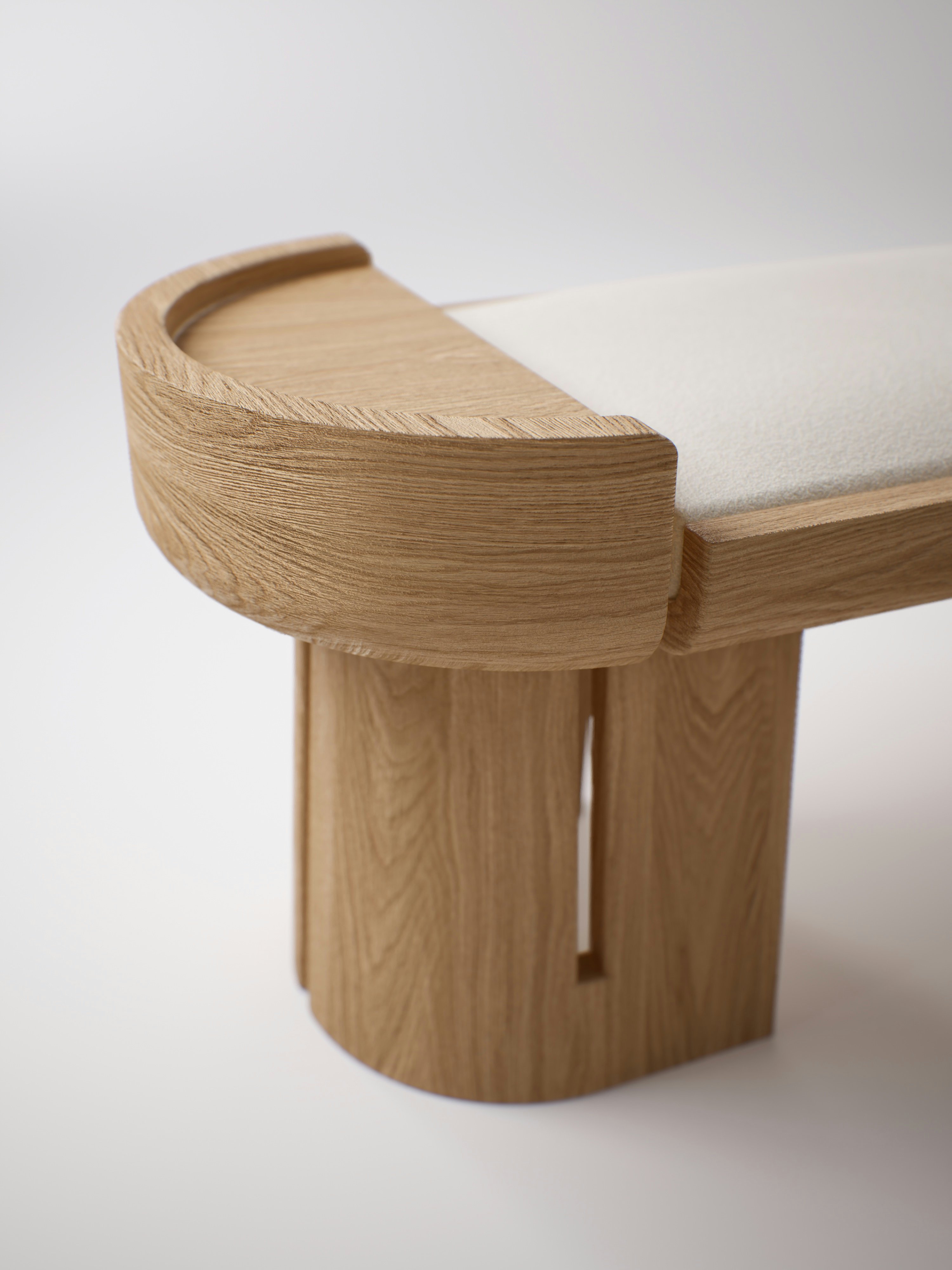 The seat is upholstered with Adorabile Alpaca Banguise by Dedar.