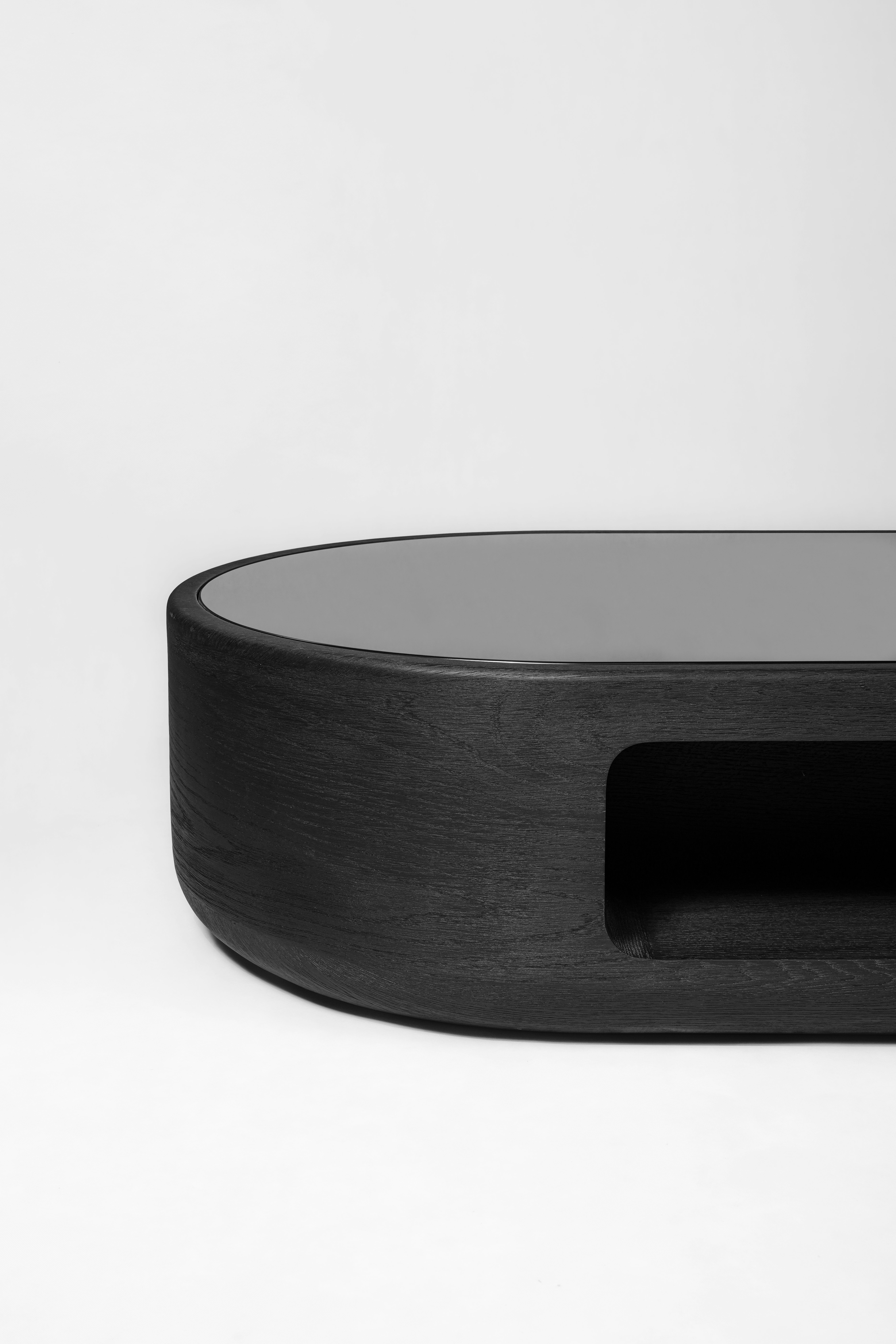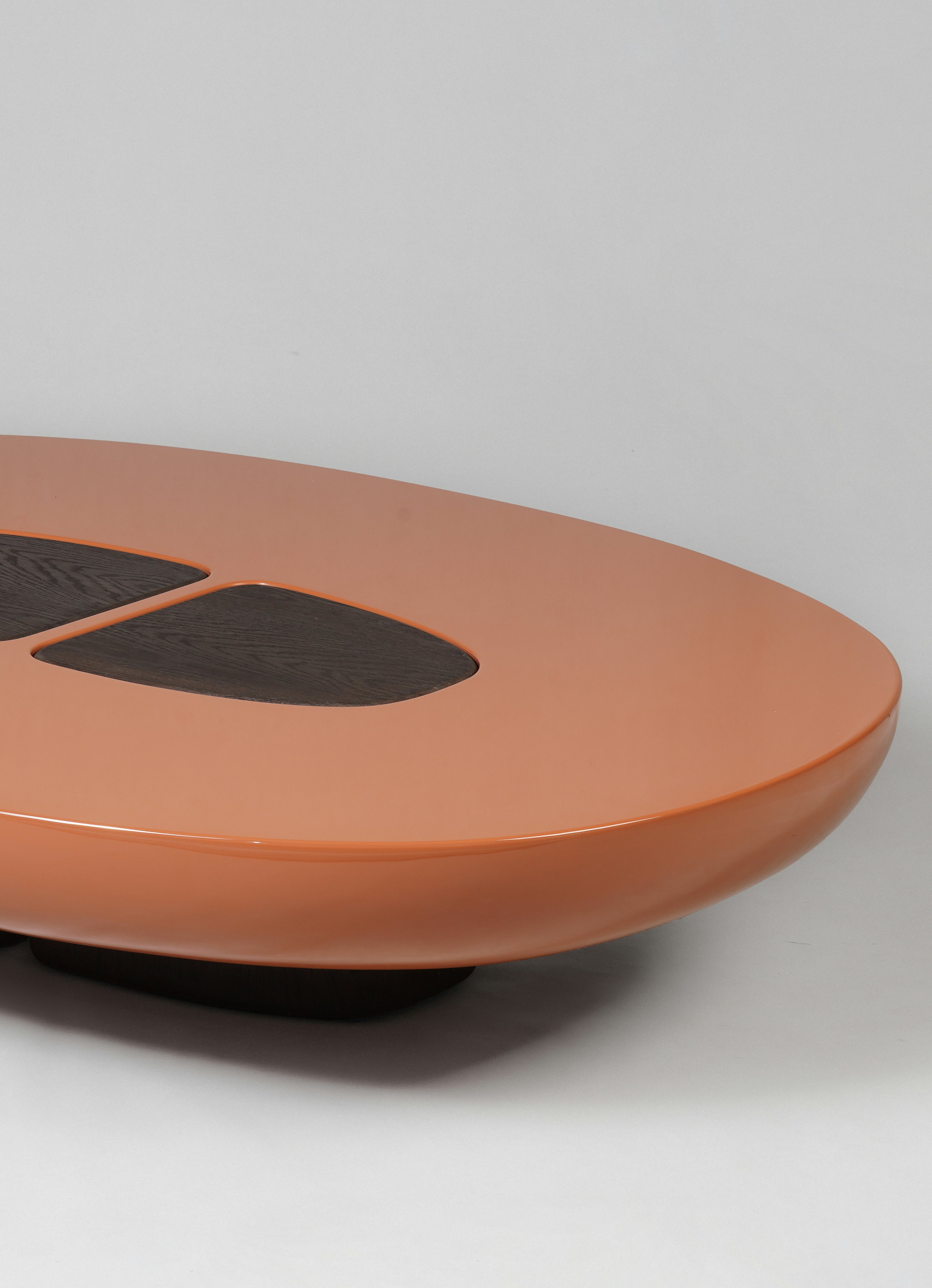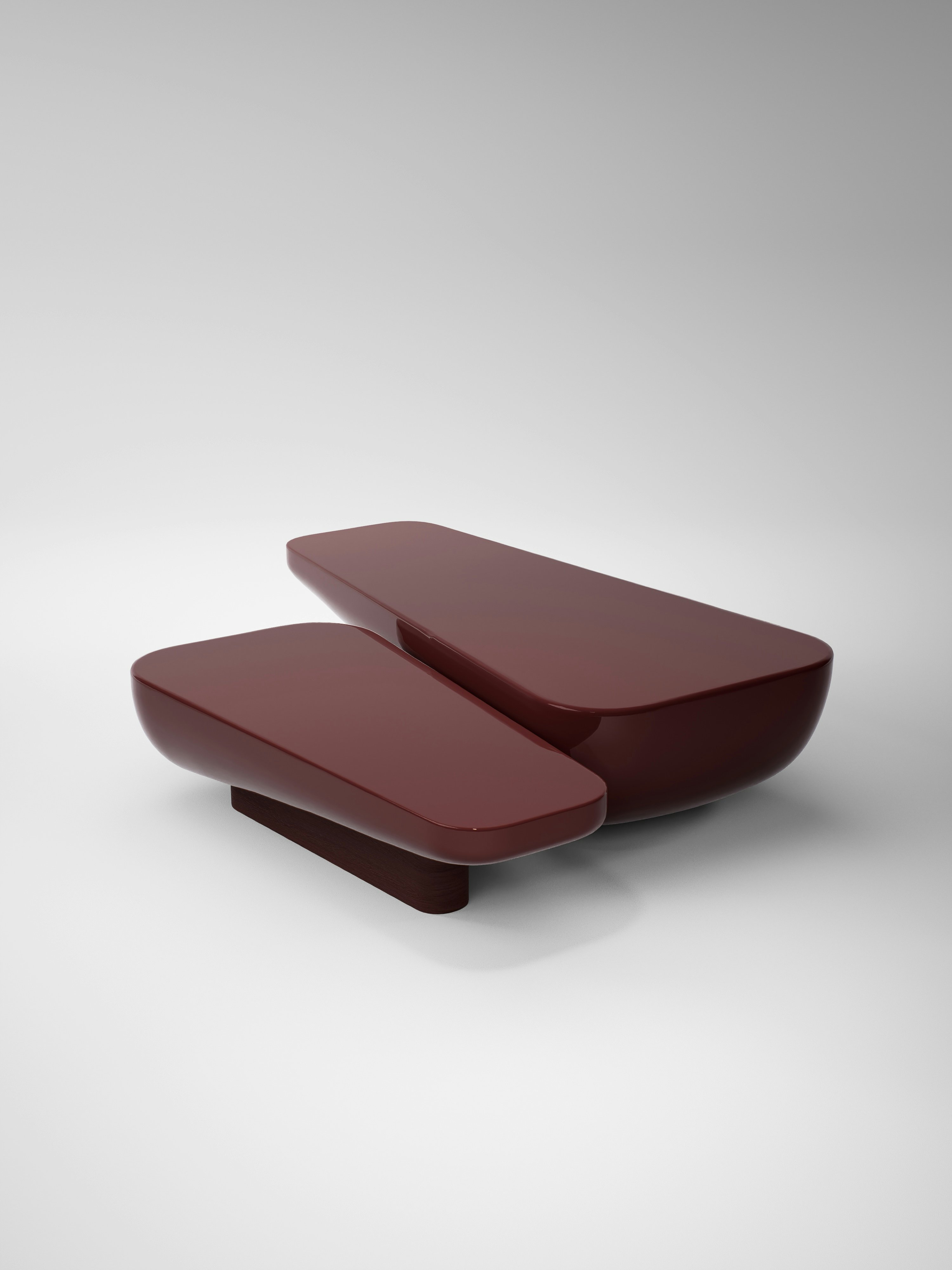 Coffee table pictured in lacquered wood.