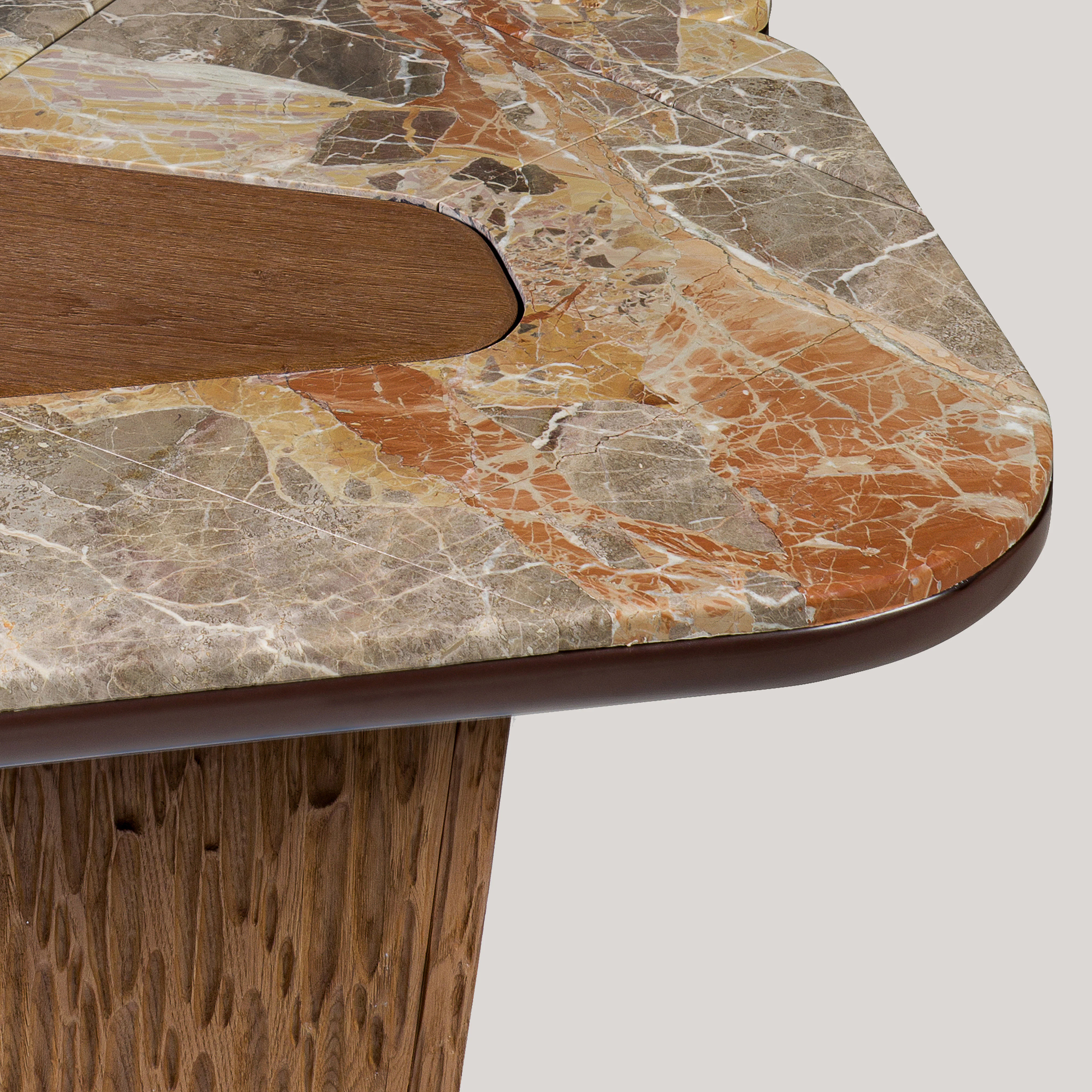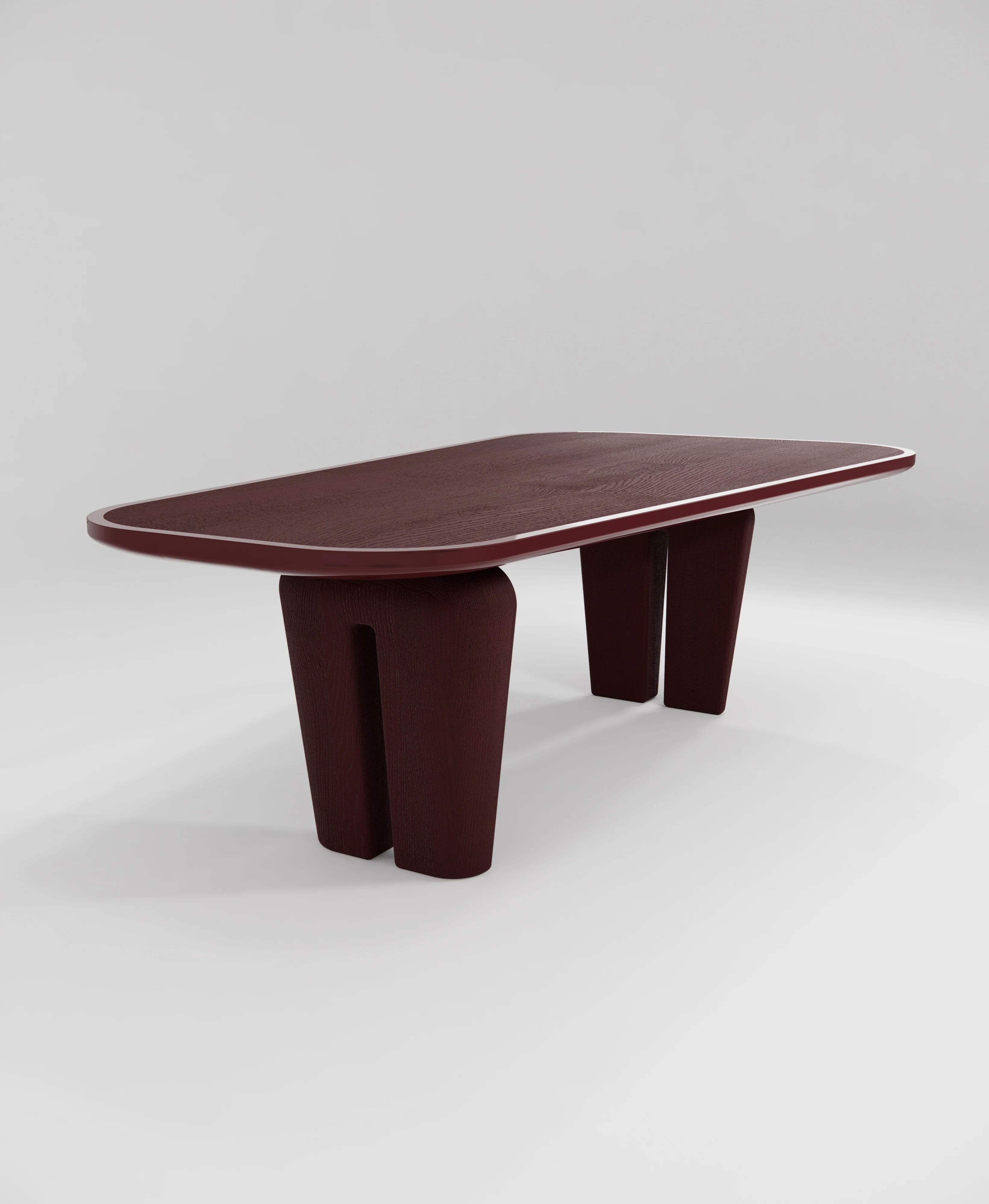 Dining table pictured in oak and lacquered wood.