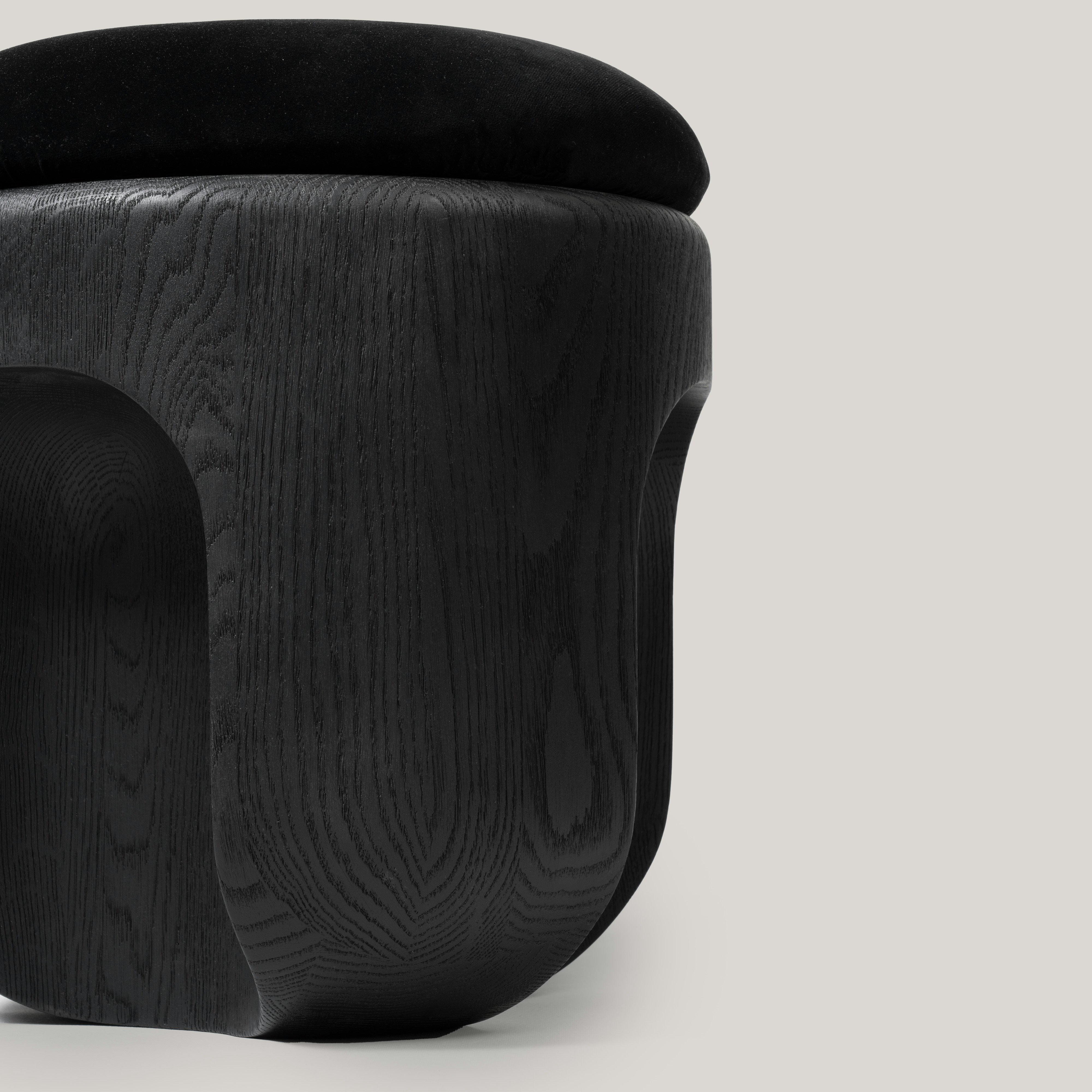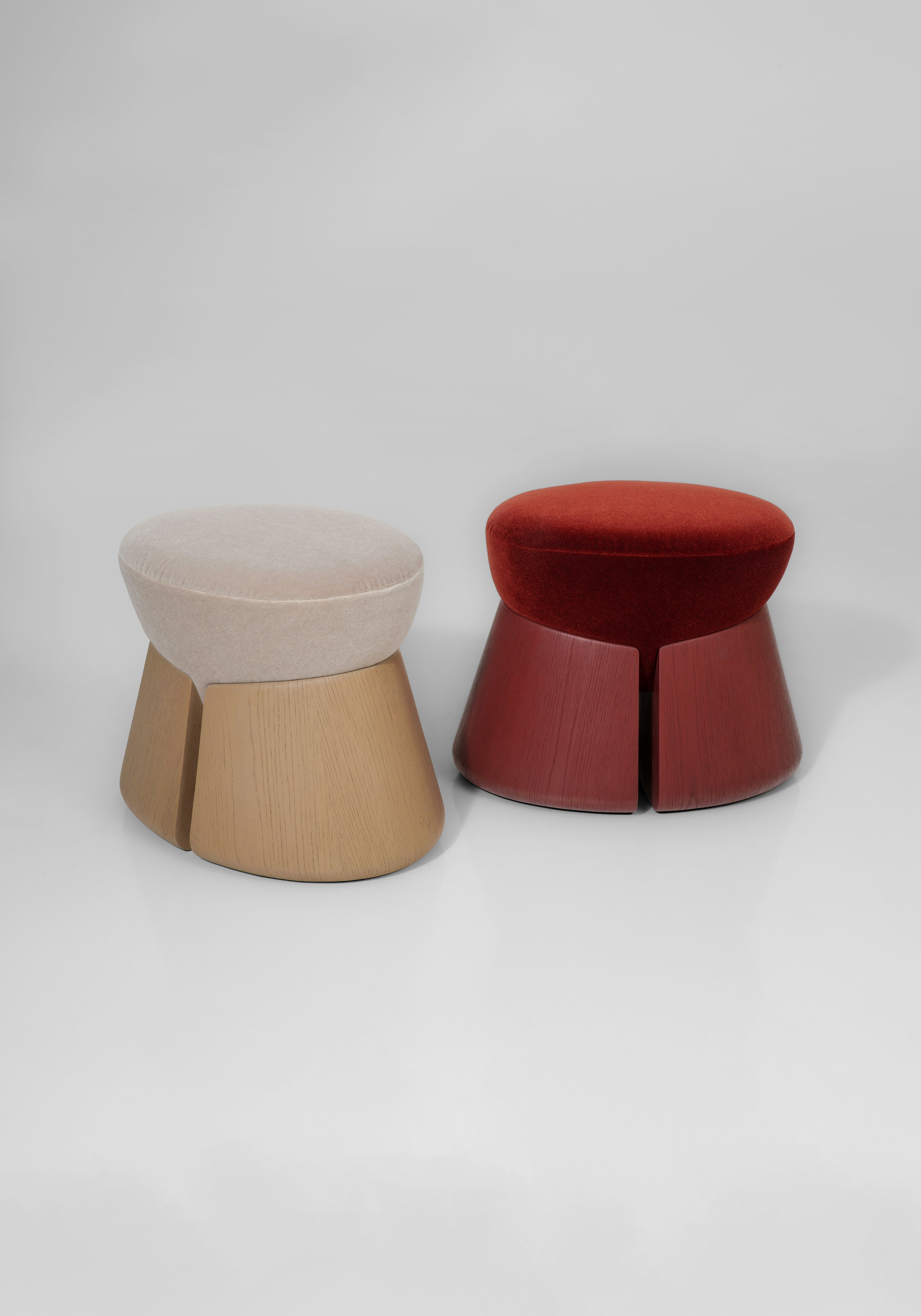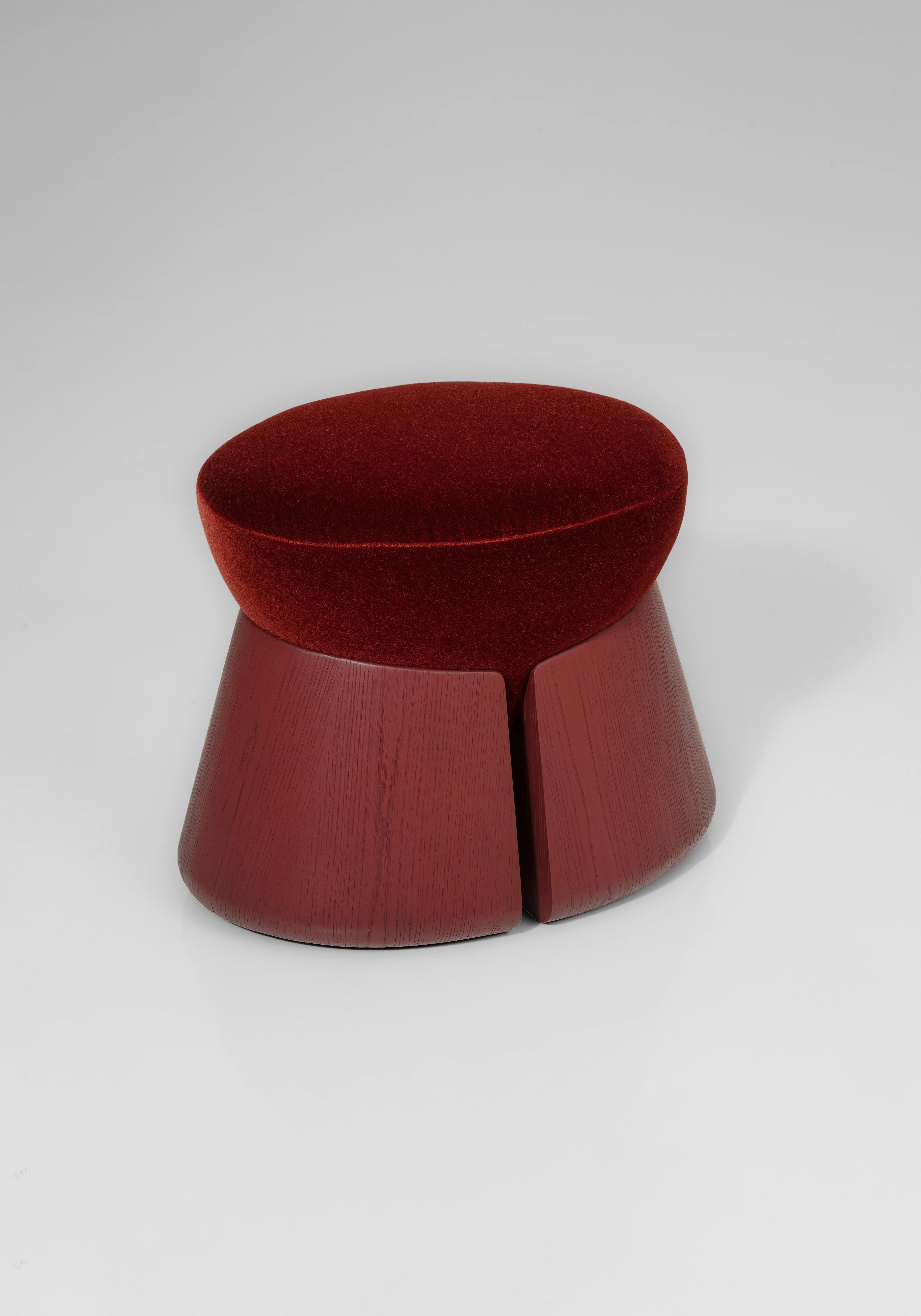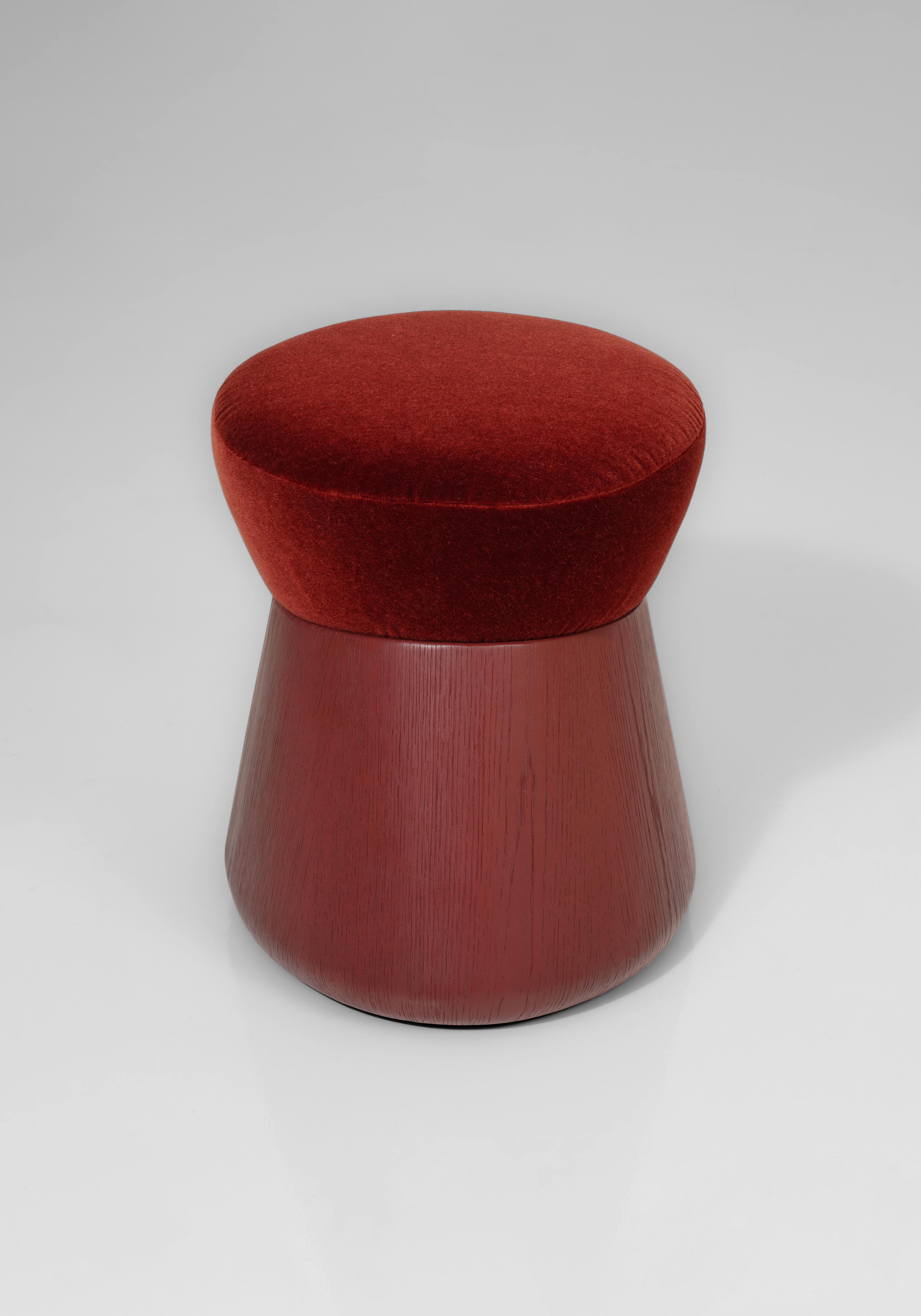 The seat is upholstered with fabric Vladimiro Mohair velvet Mosto Cotto by Dedar.