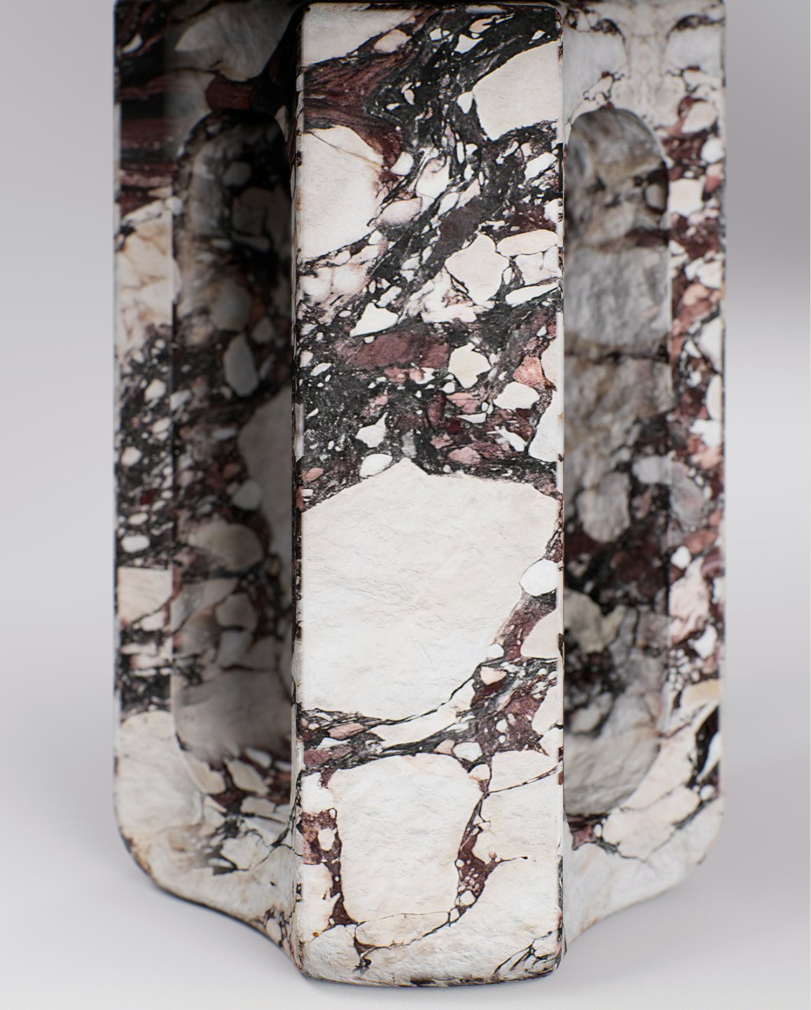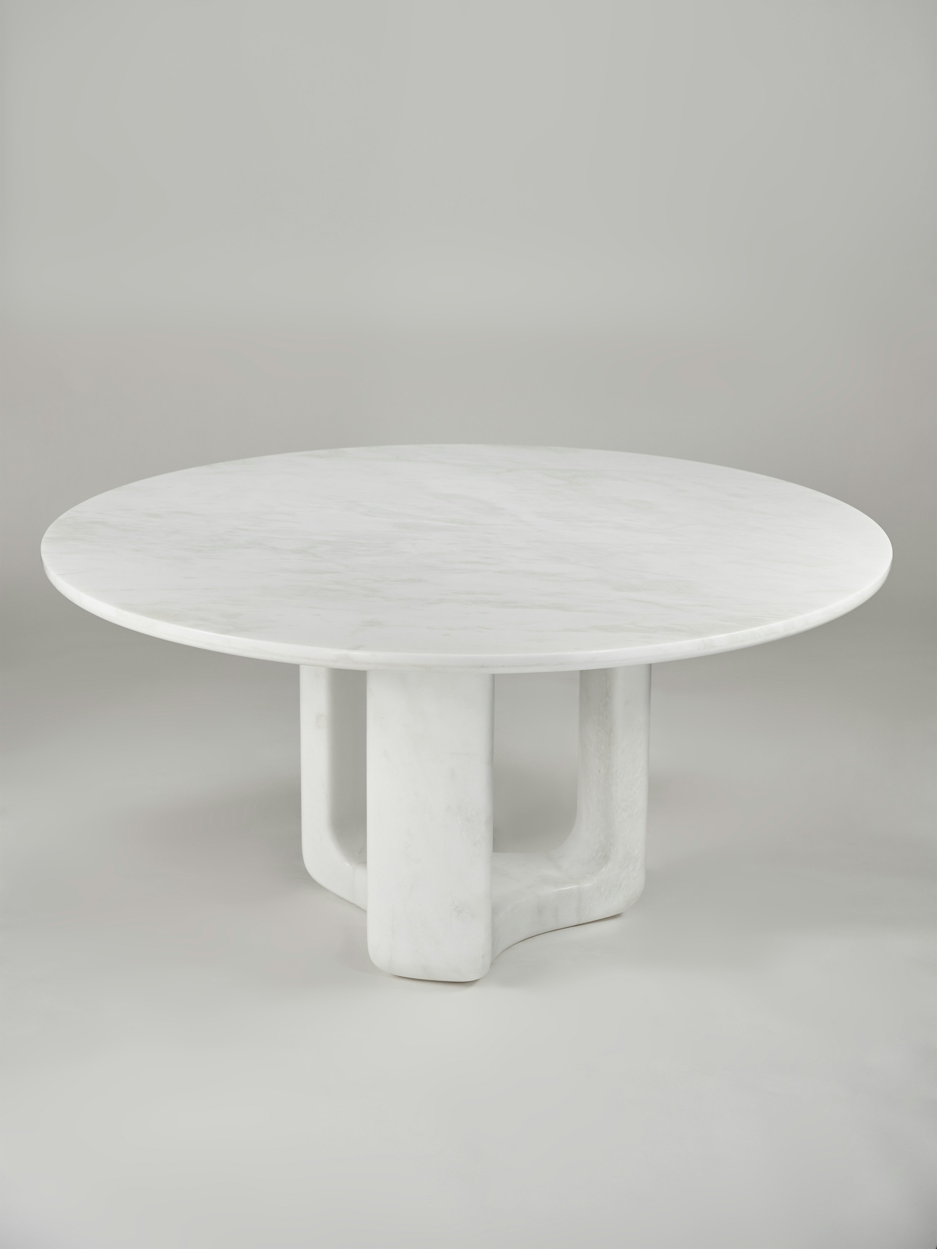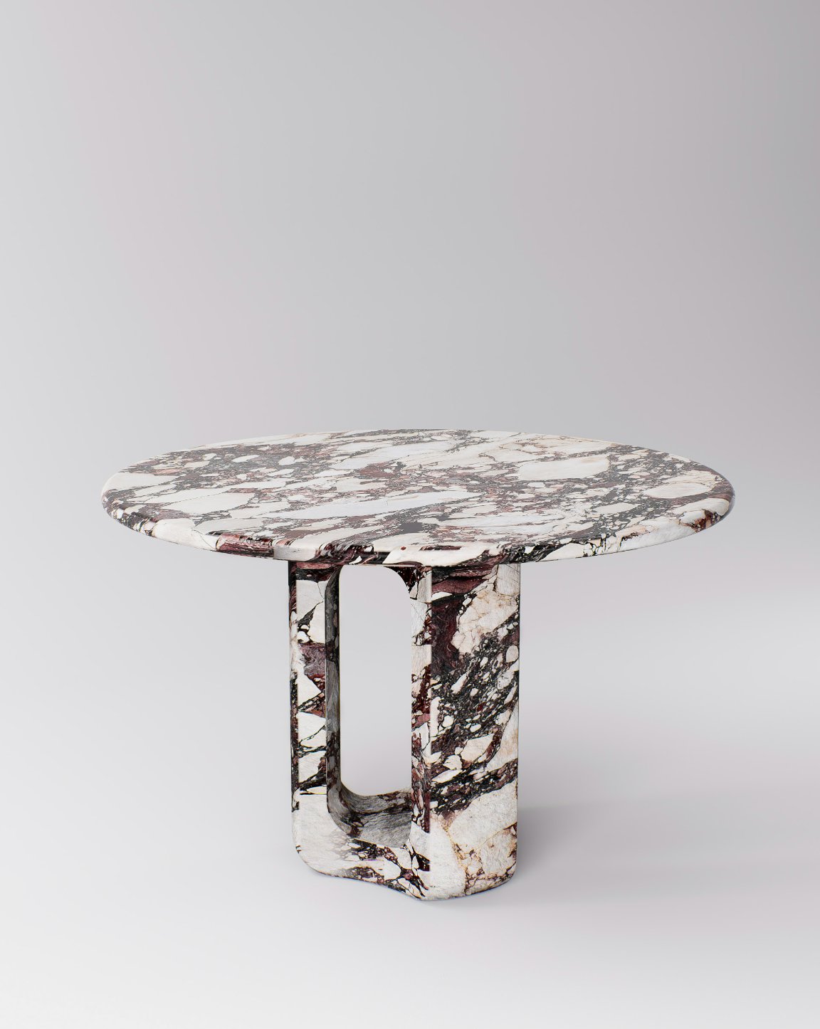 Circular dining table pictured in Viola Calacatta marble.