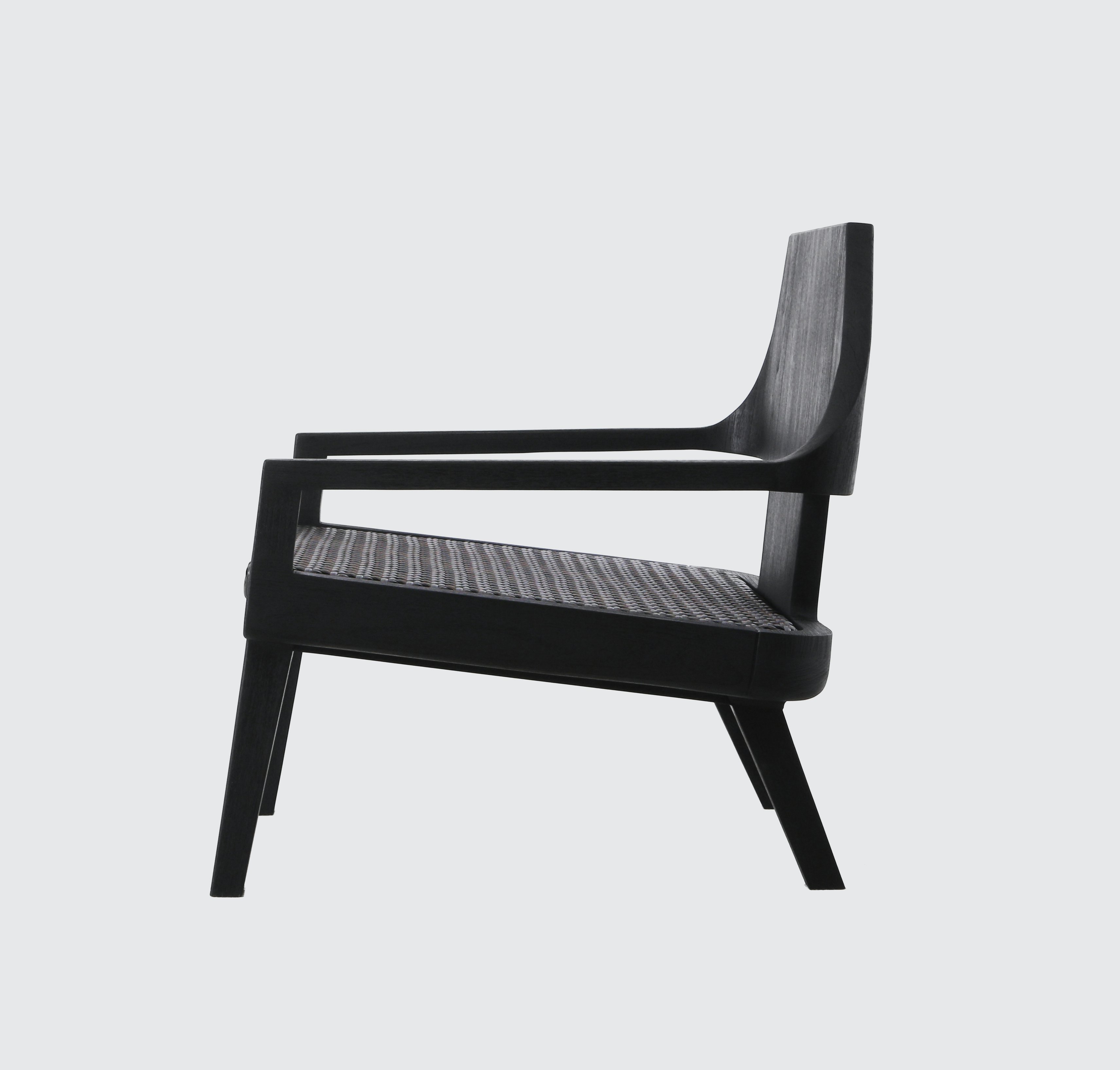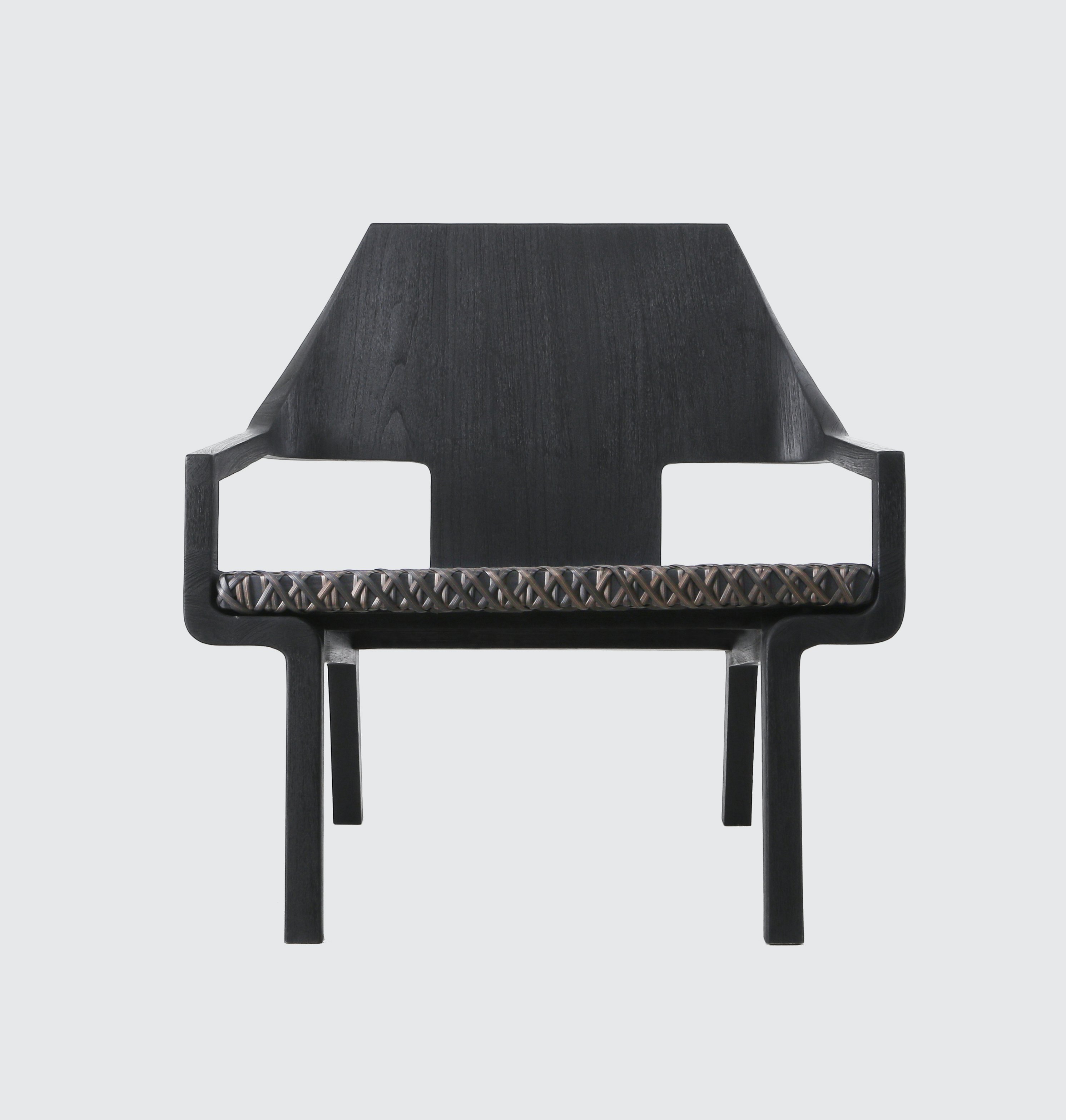 Lounge chair pictured in black teak.