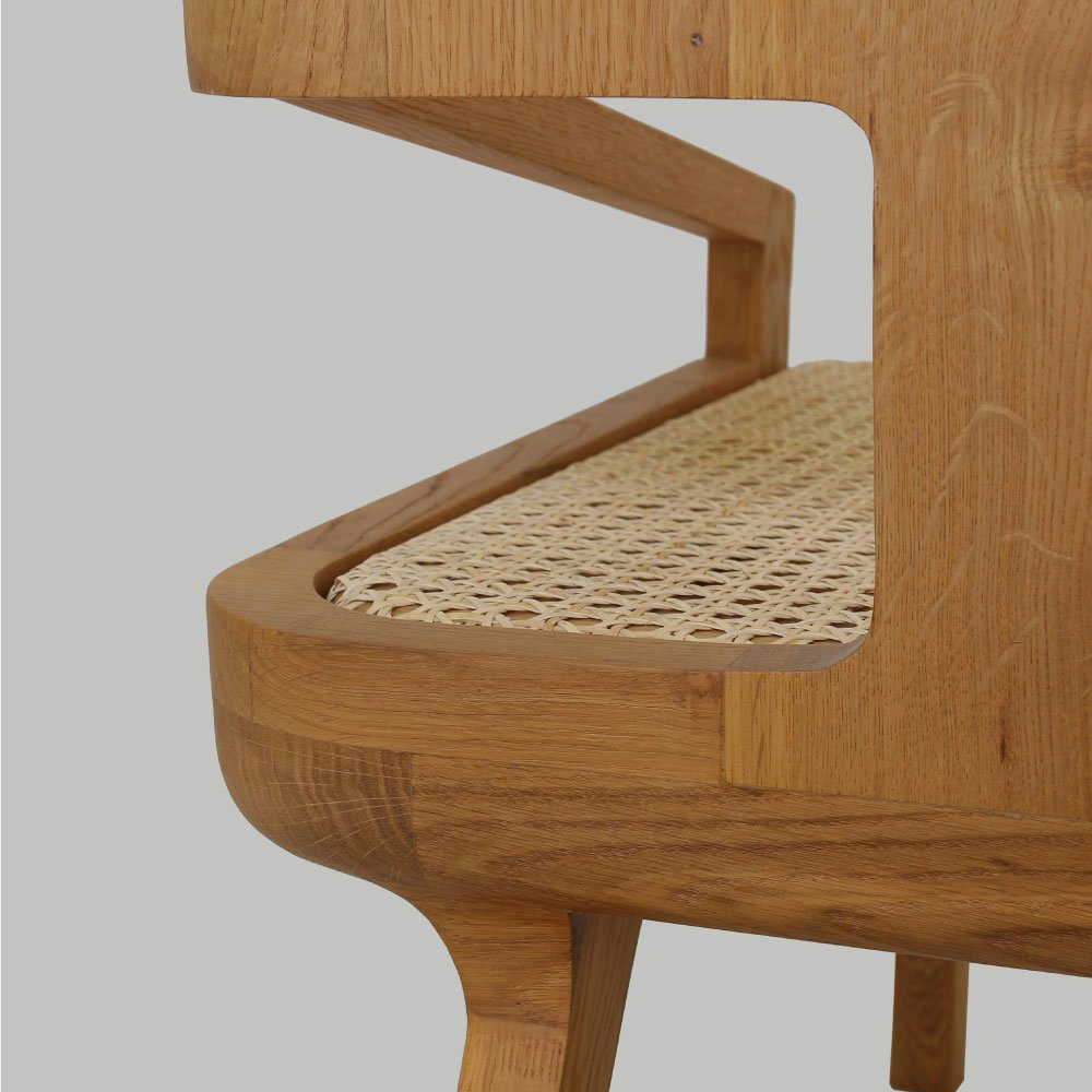 The seat is upholstered with a hand woven French rattan mesh.