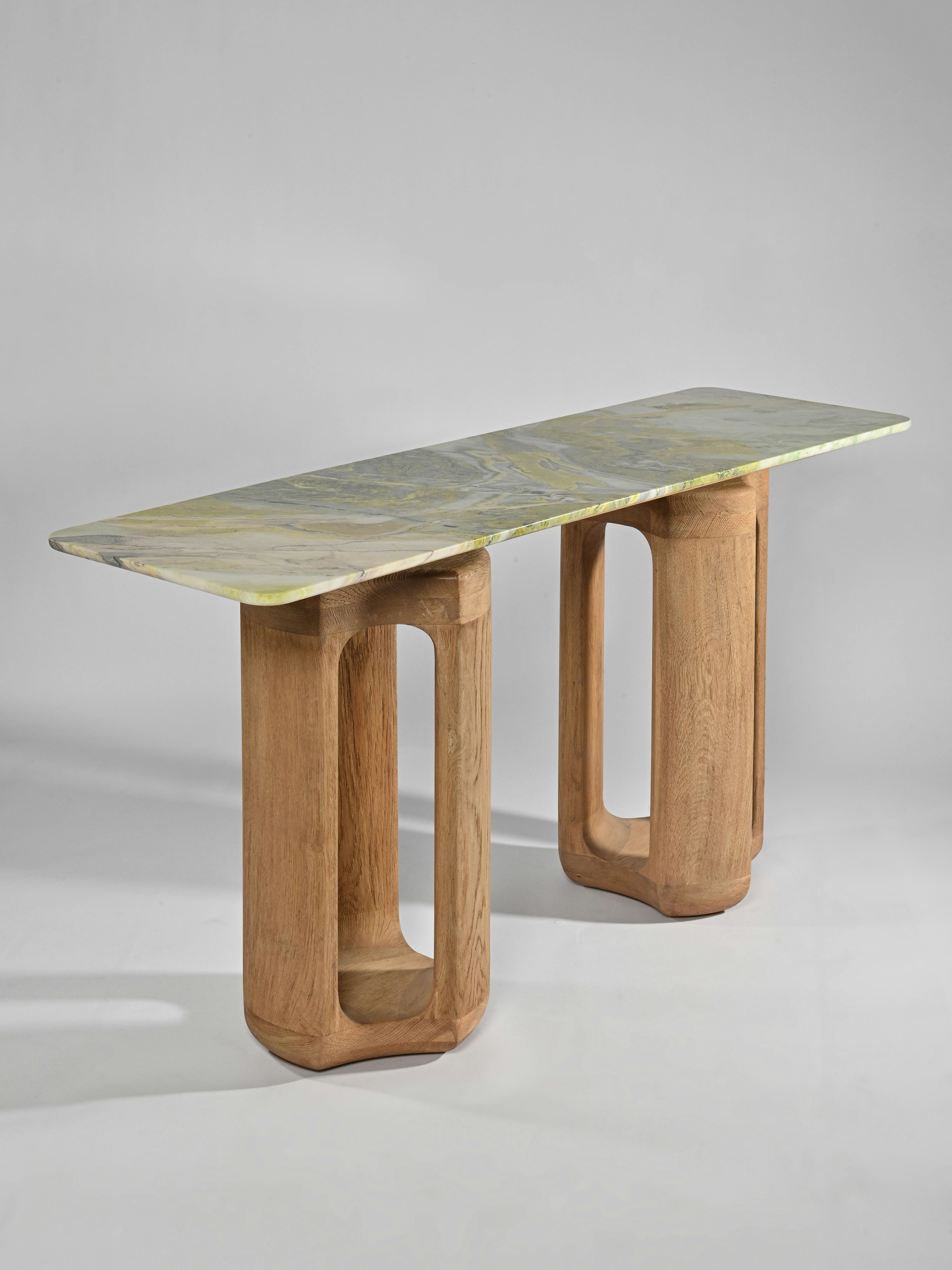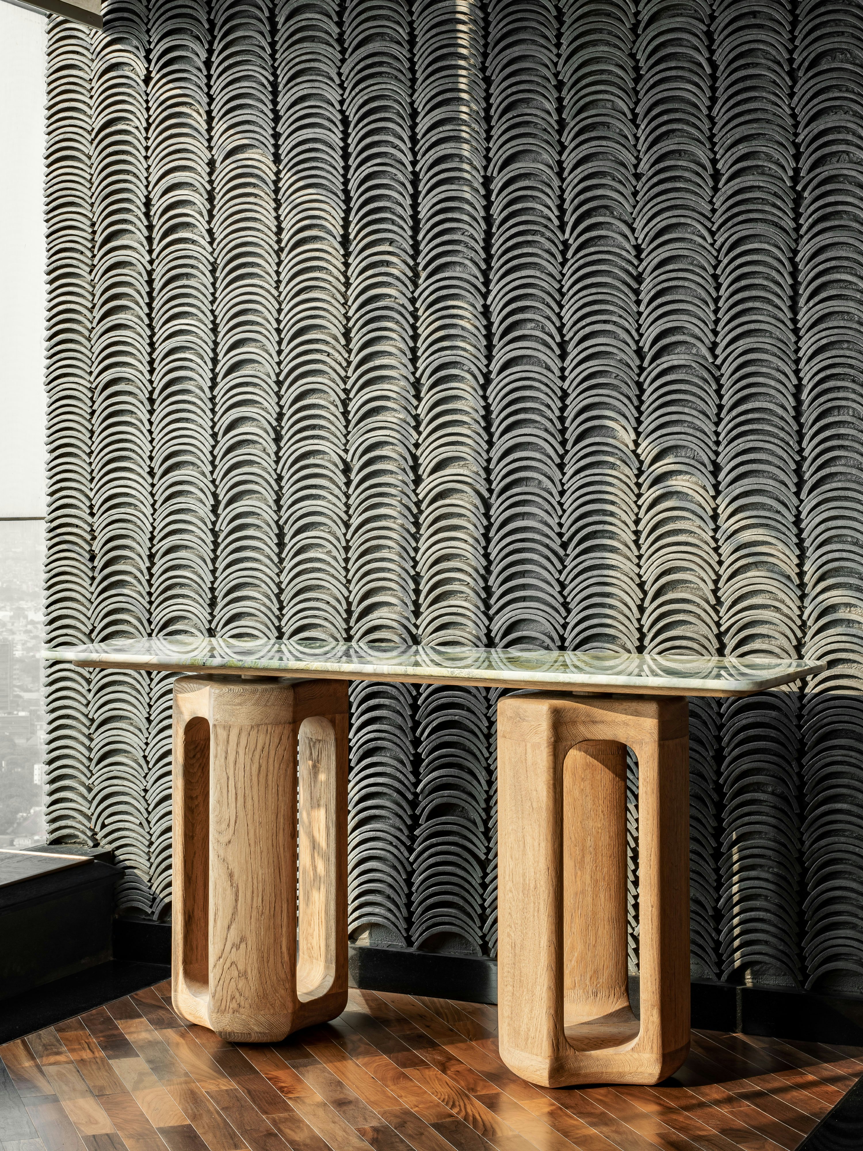 As the studio continues its investigation of the relationship between physical mass and the body in space, the Deepah collection showcases pieces that explore the fluidity of our perception of the environment: it is a collection of pieces shaped by the intersections of pure circular forms. The result is an alternation between curves and straight edges. The Deepah is a point of attraction in space: each pieces raises curiosity through form and technique.