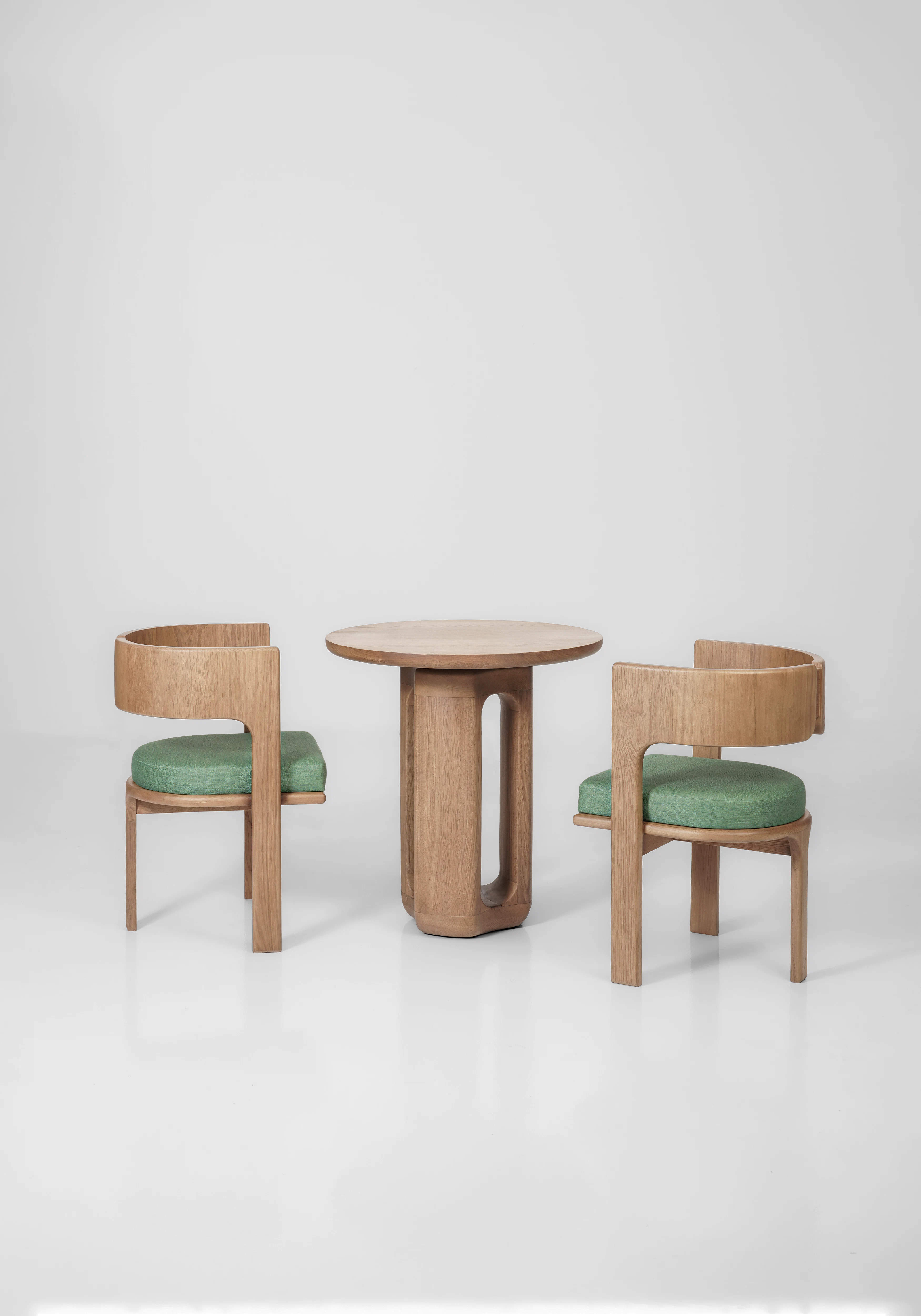 The seat of the Mast chair is upholstered with the fabric Mundus Erba by Rubelli.