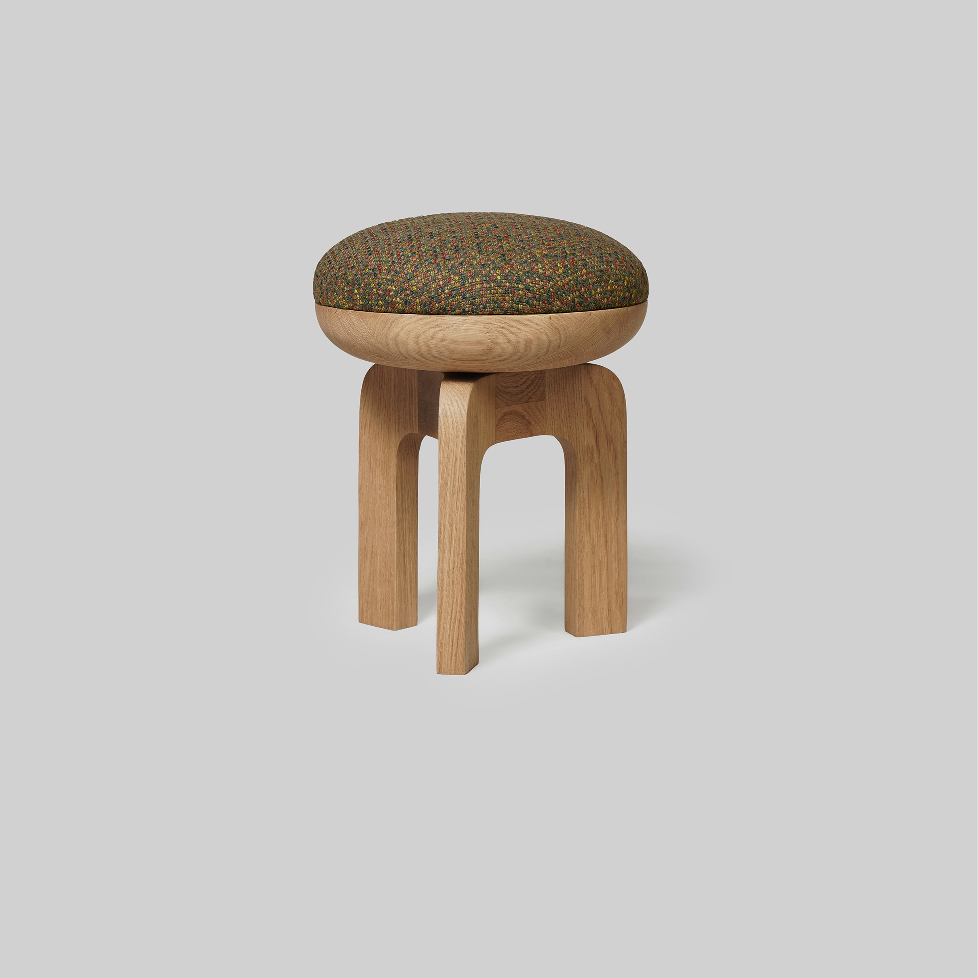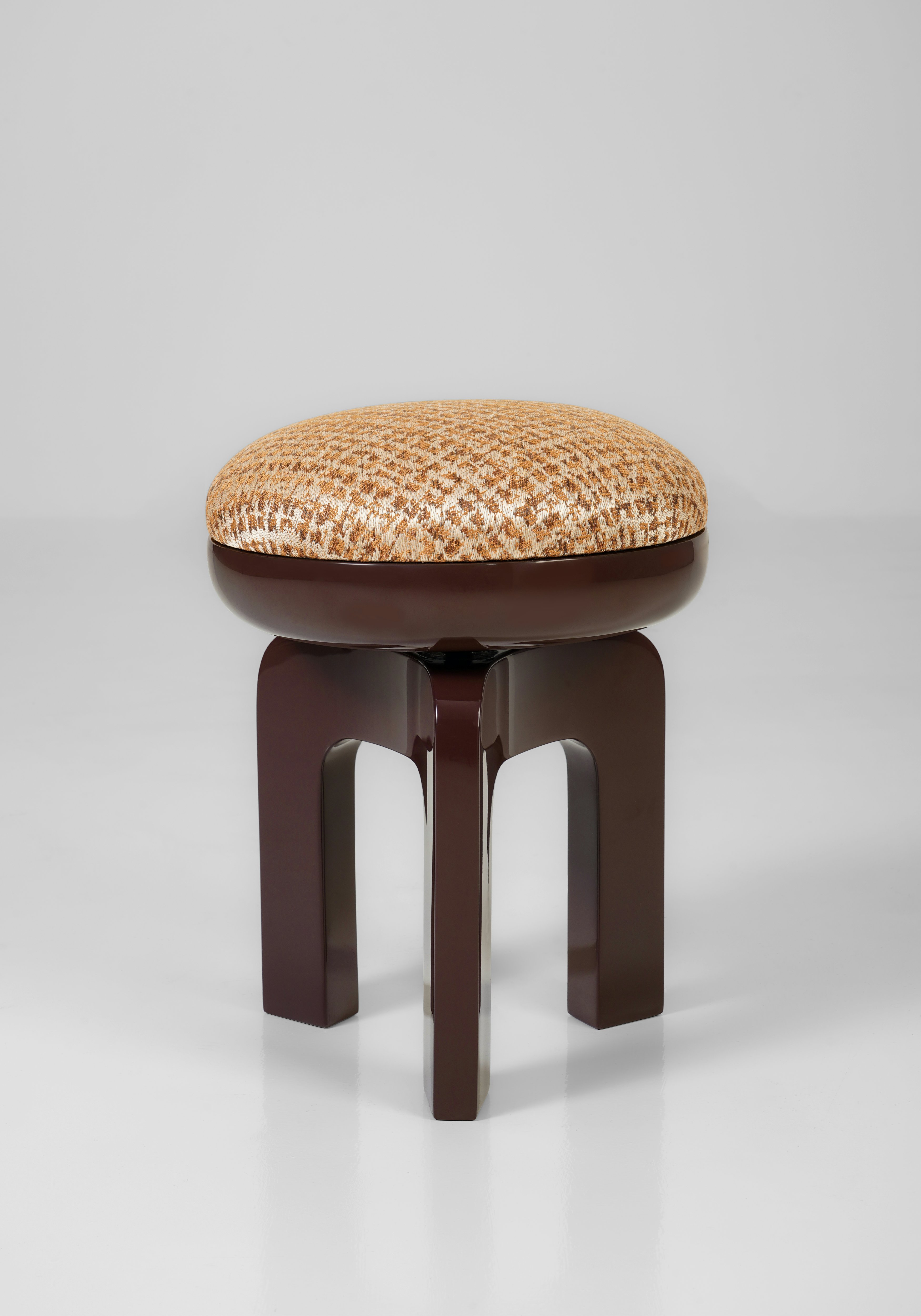 The seat is upholstered with fabric Cavalcade Cognac by Métaphores.
