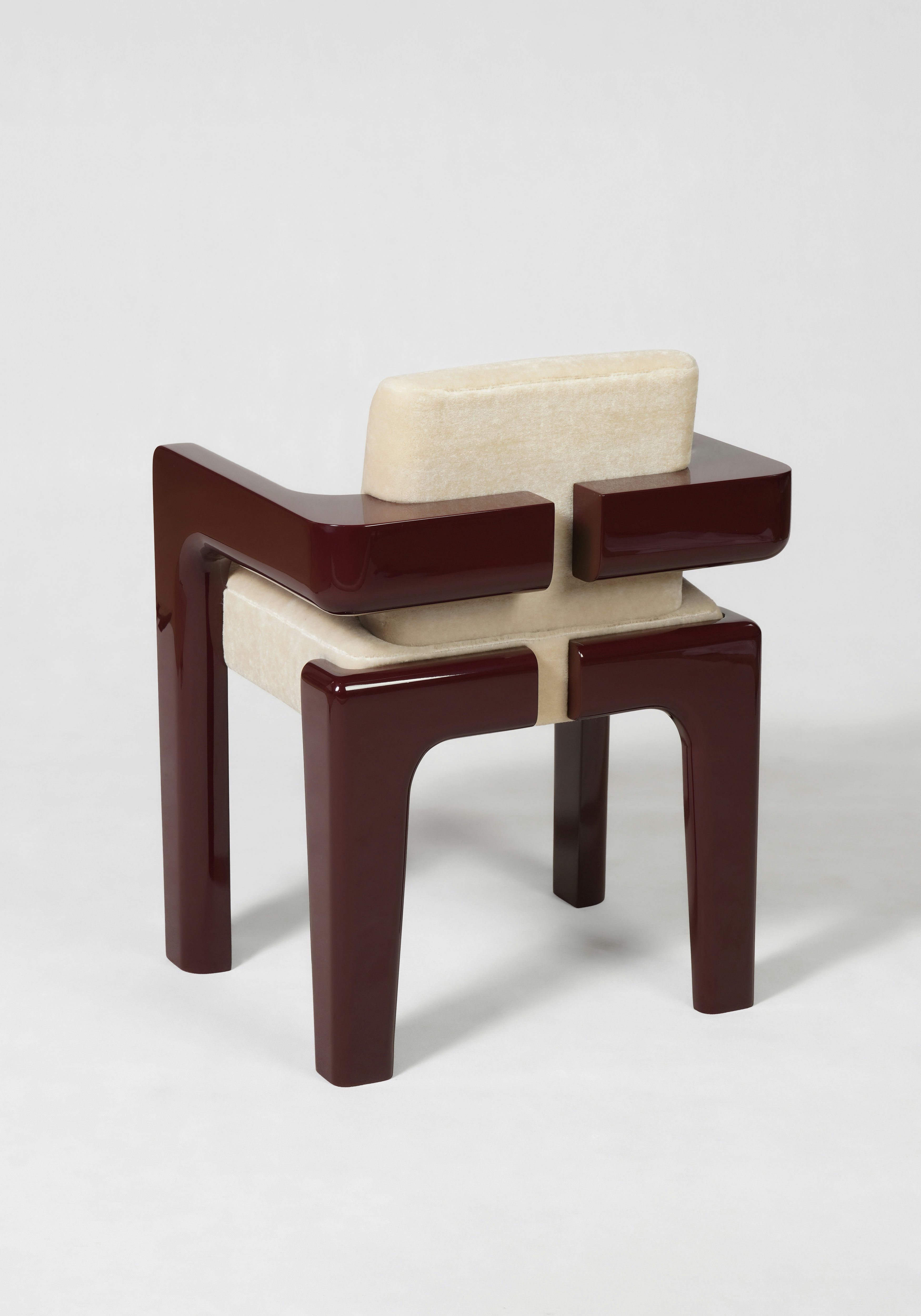 Dining chair pictured in oxide red lacquer.