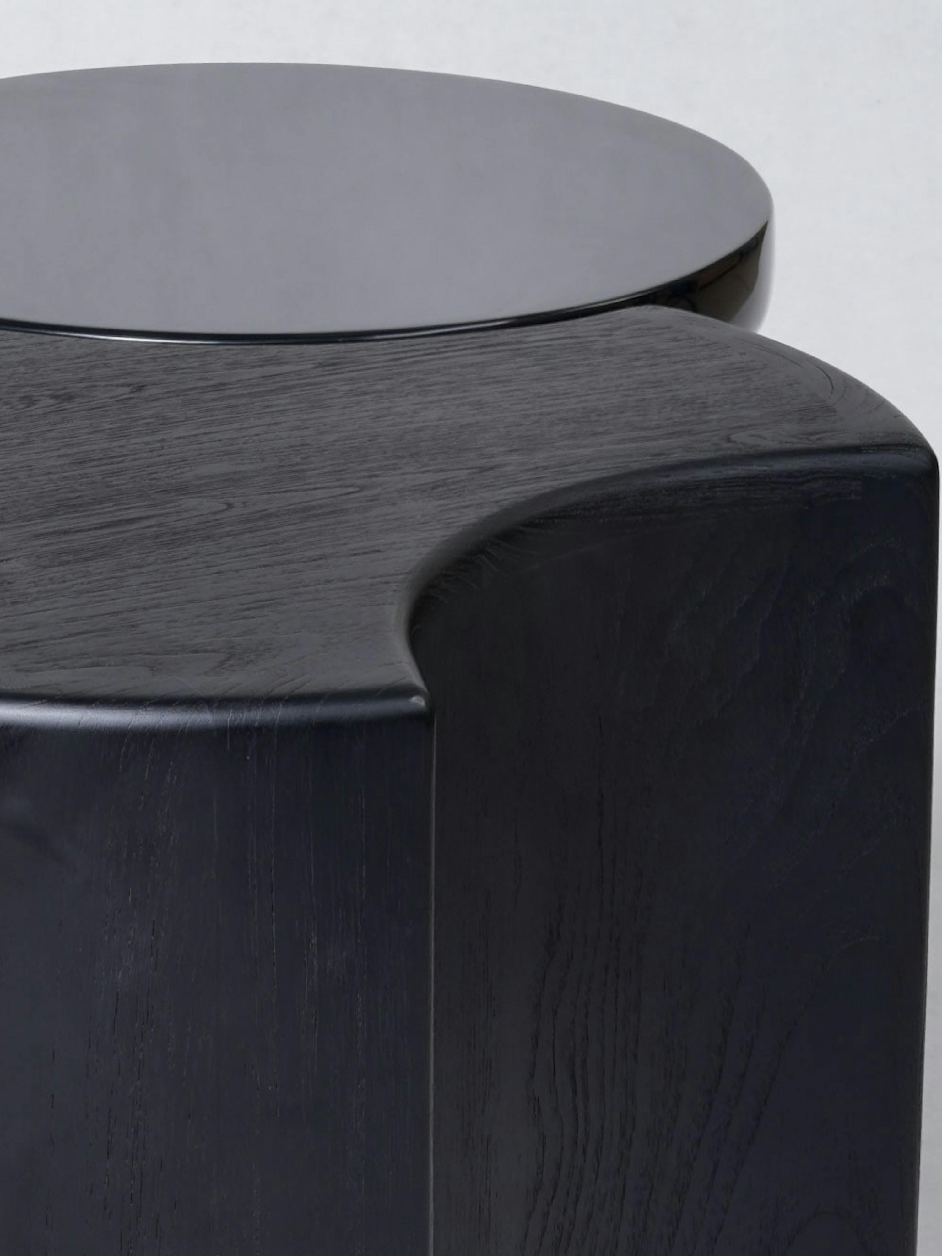 Side table pictured in black teak with a tabletop in black lacquer.