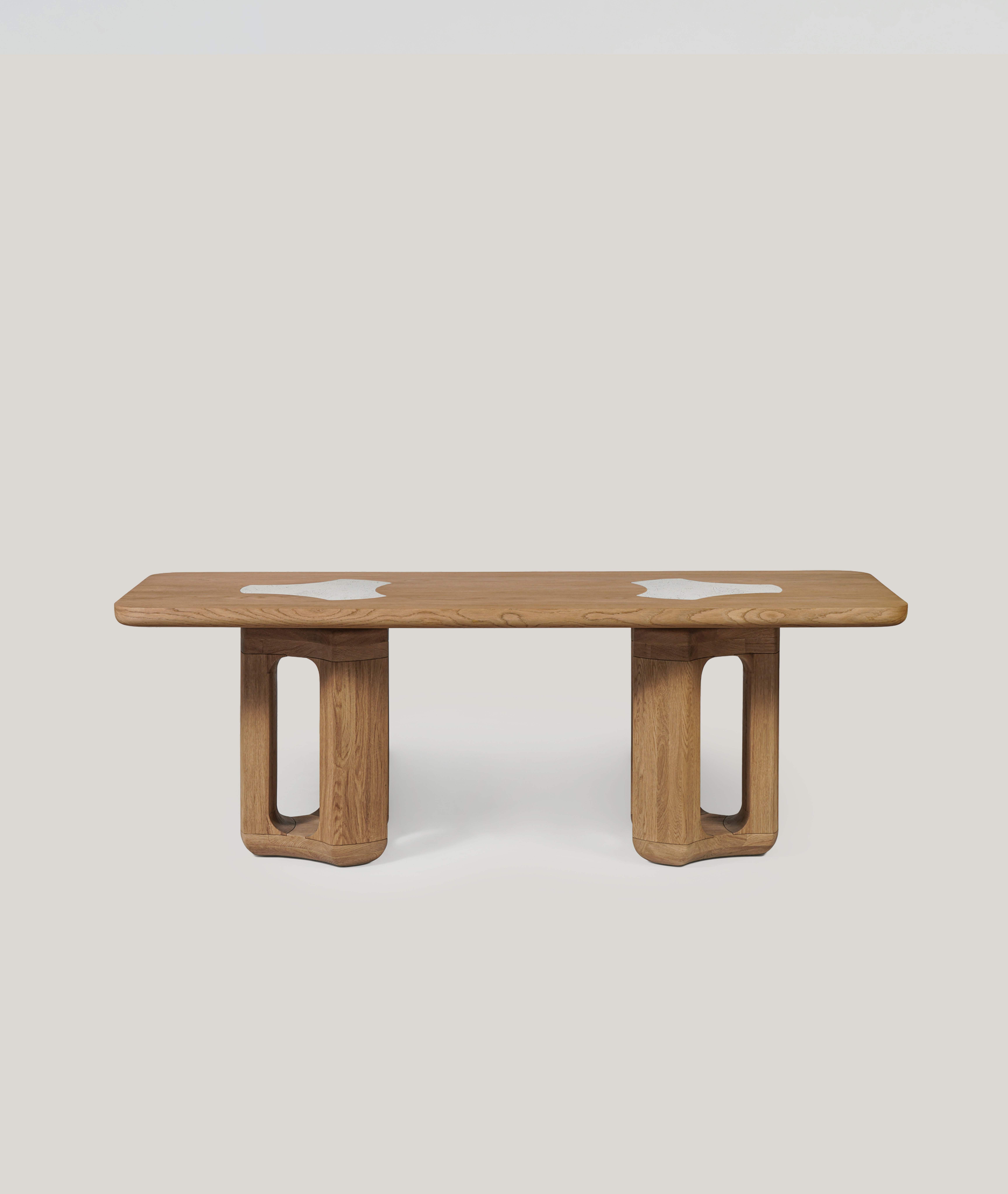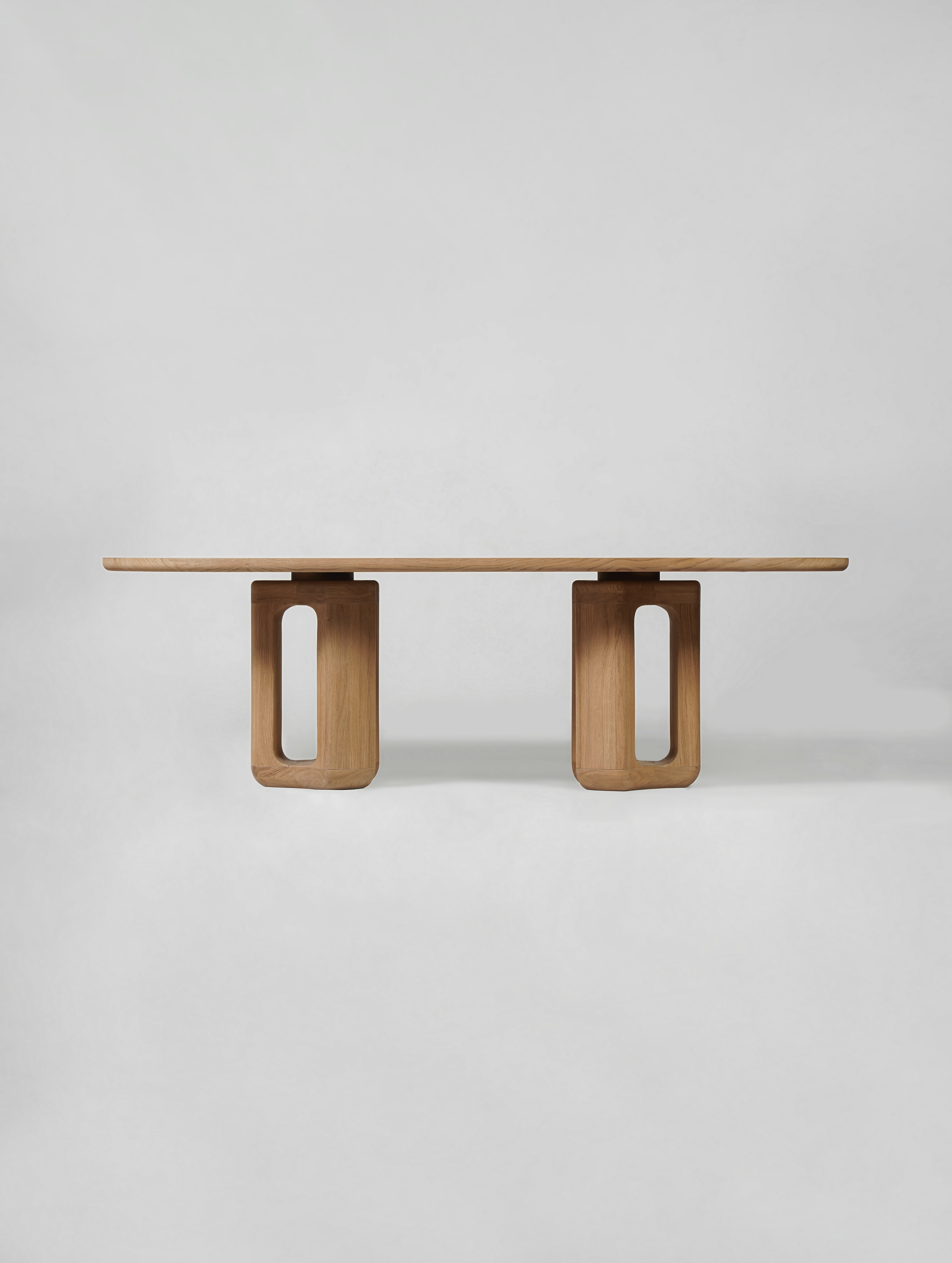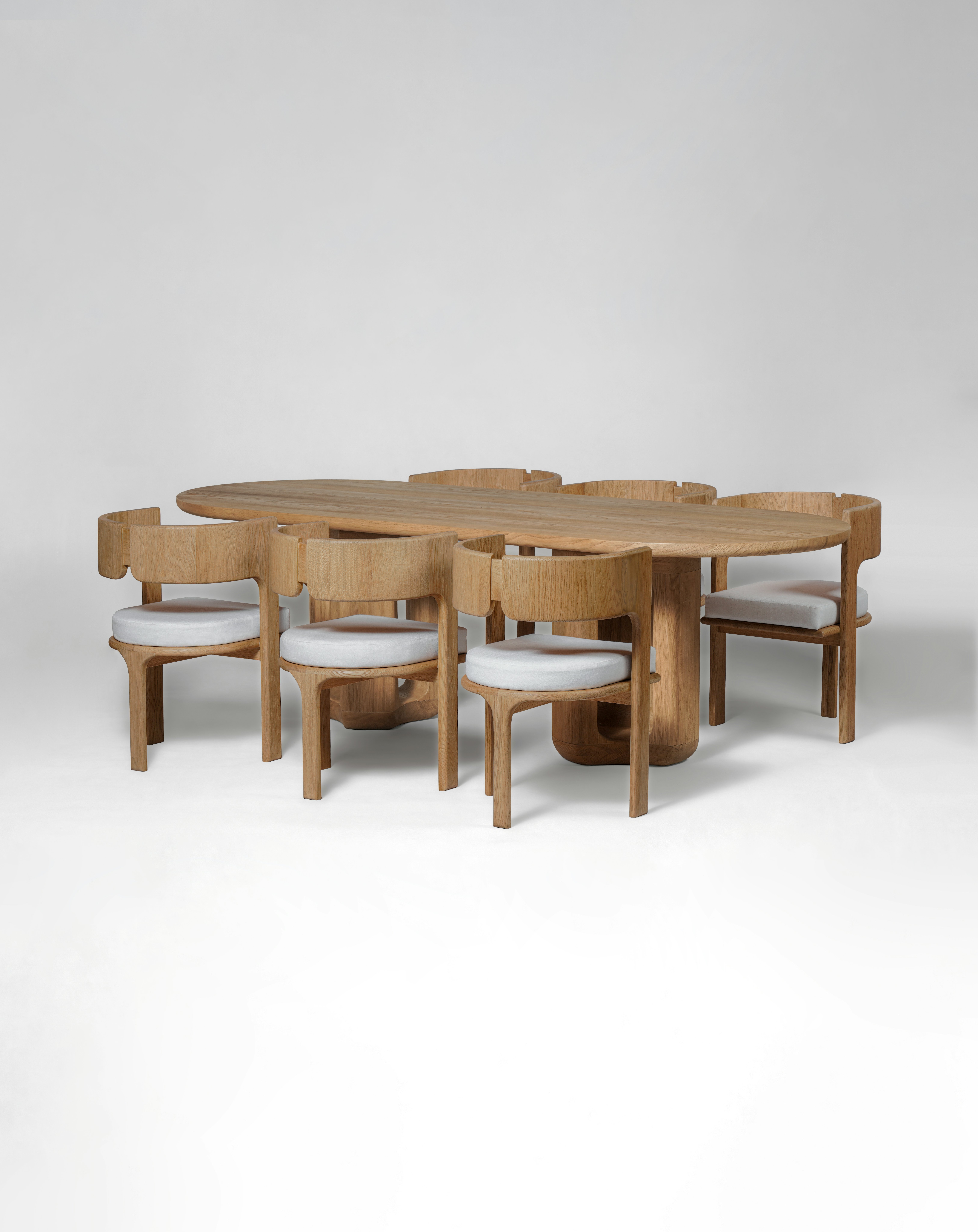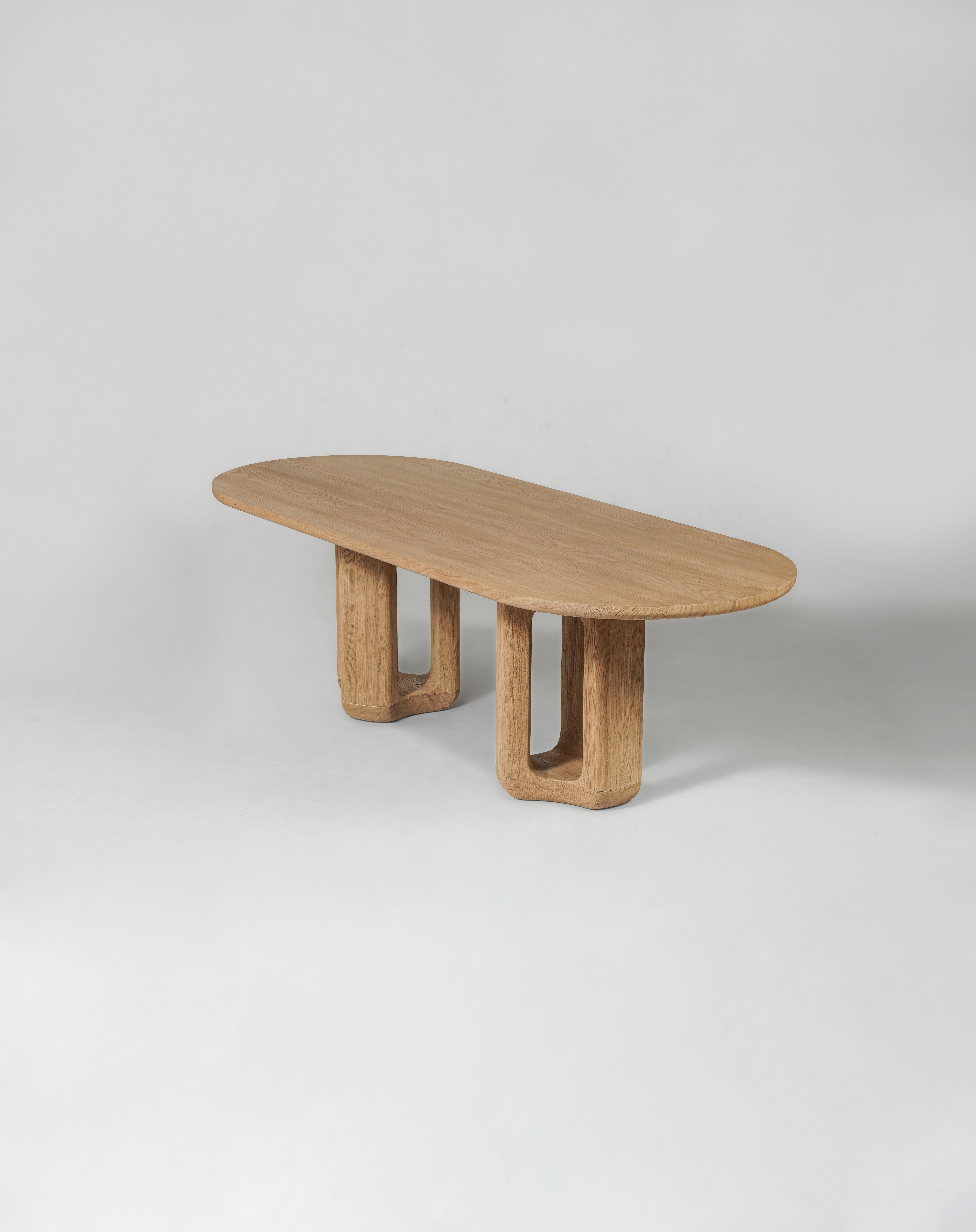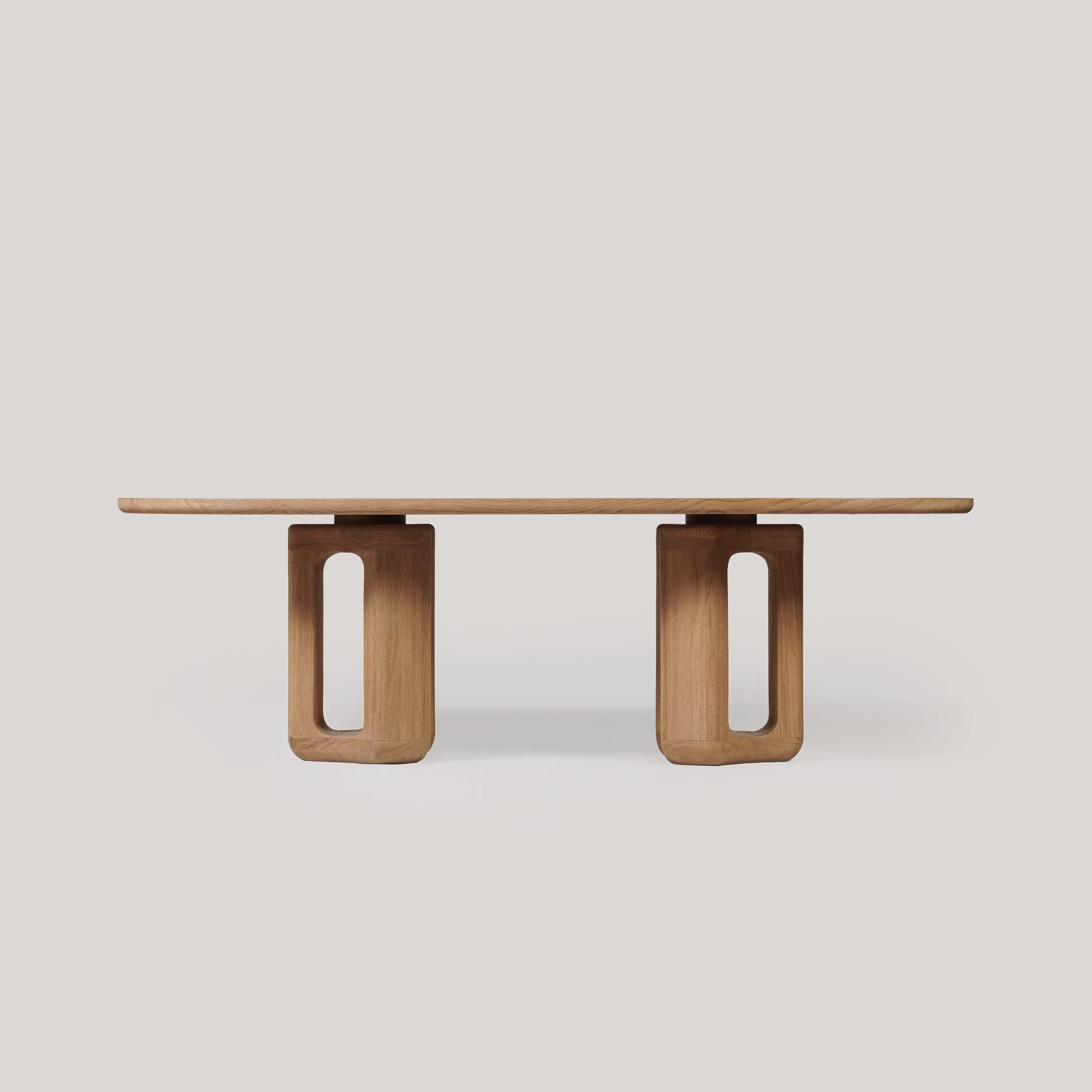 Dining table pictured in natural oak with a natural oak tabletop.