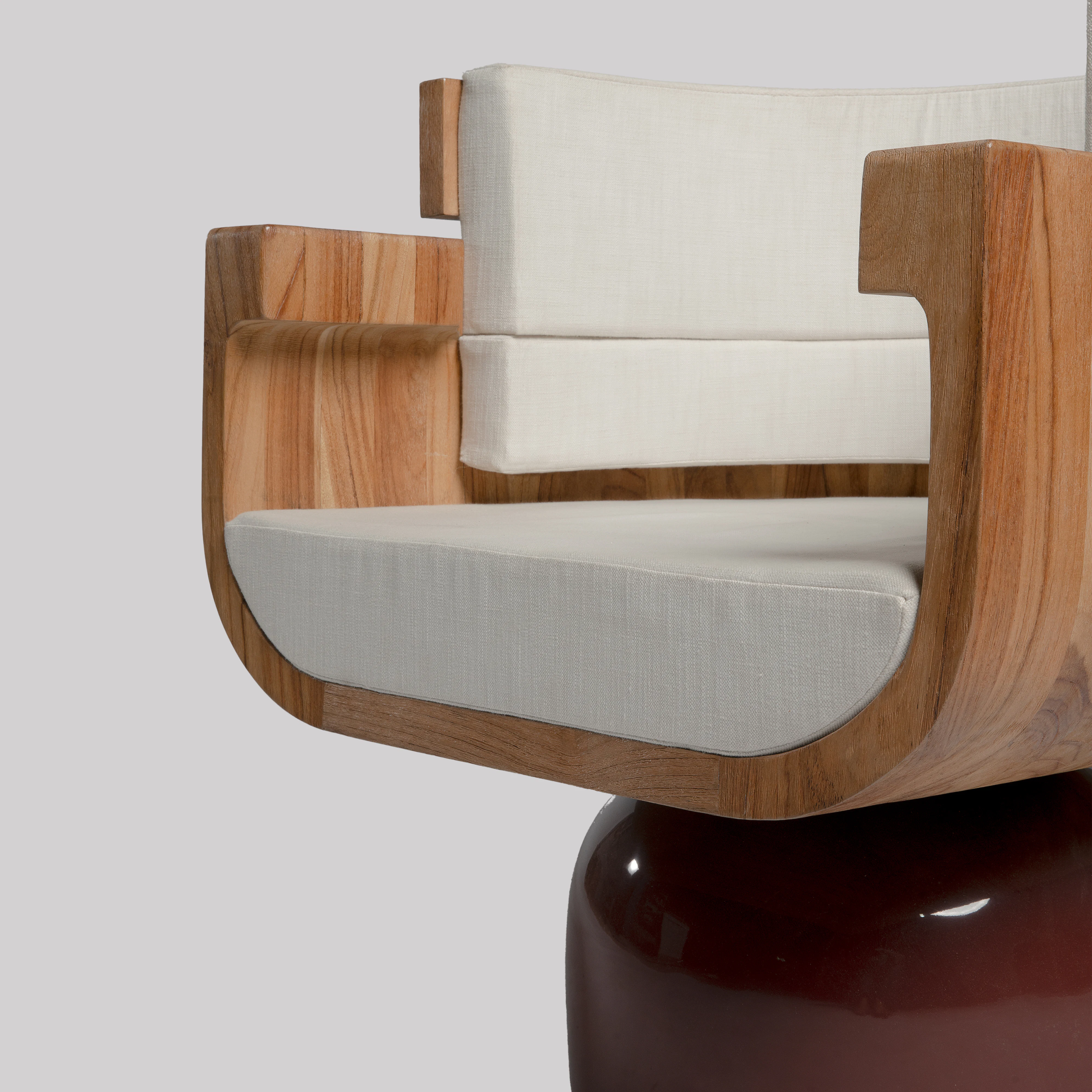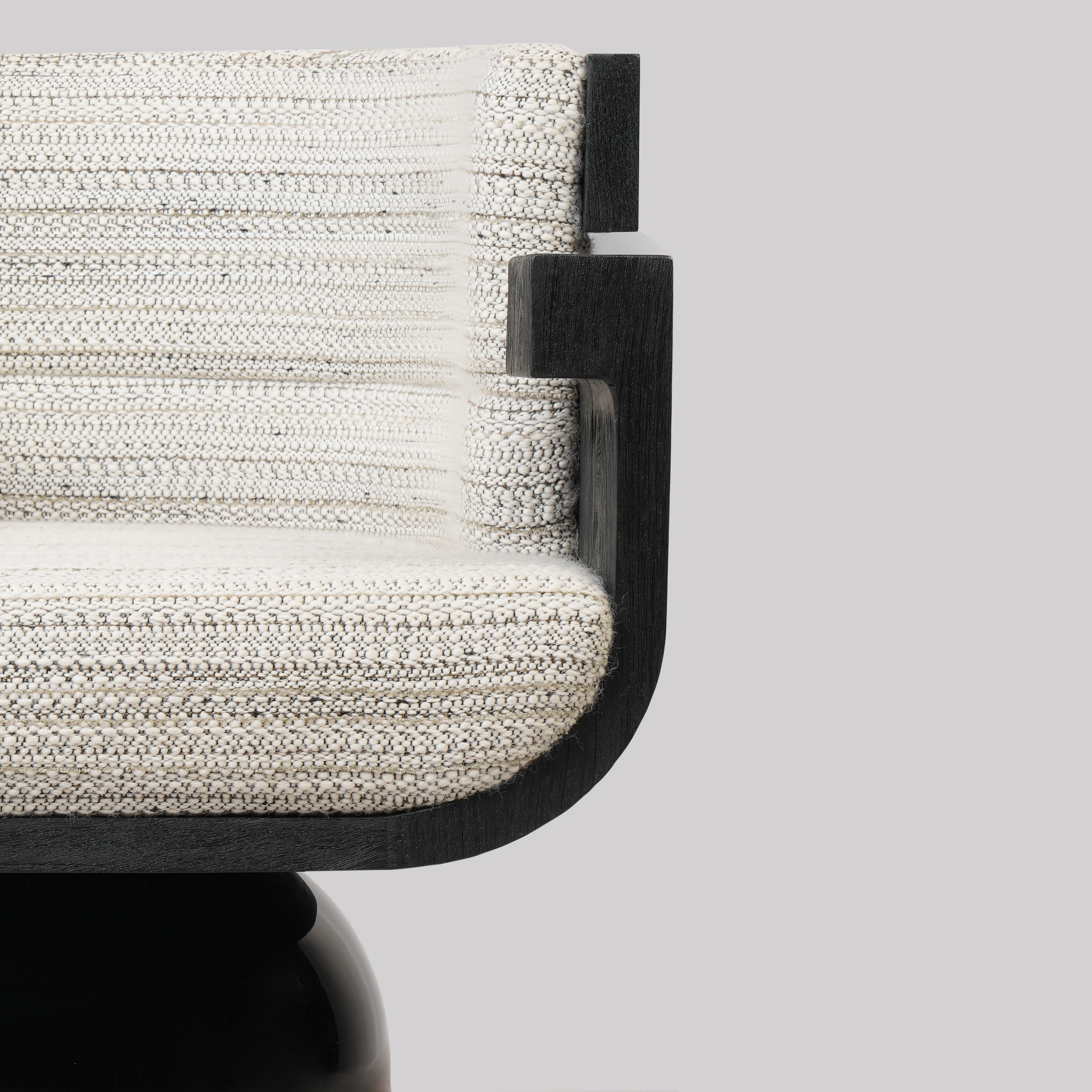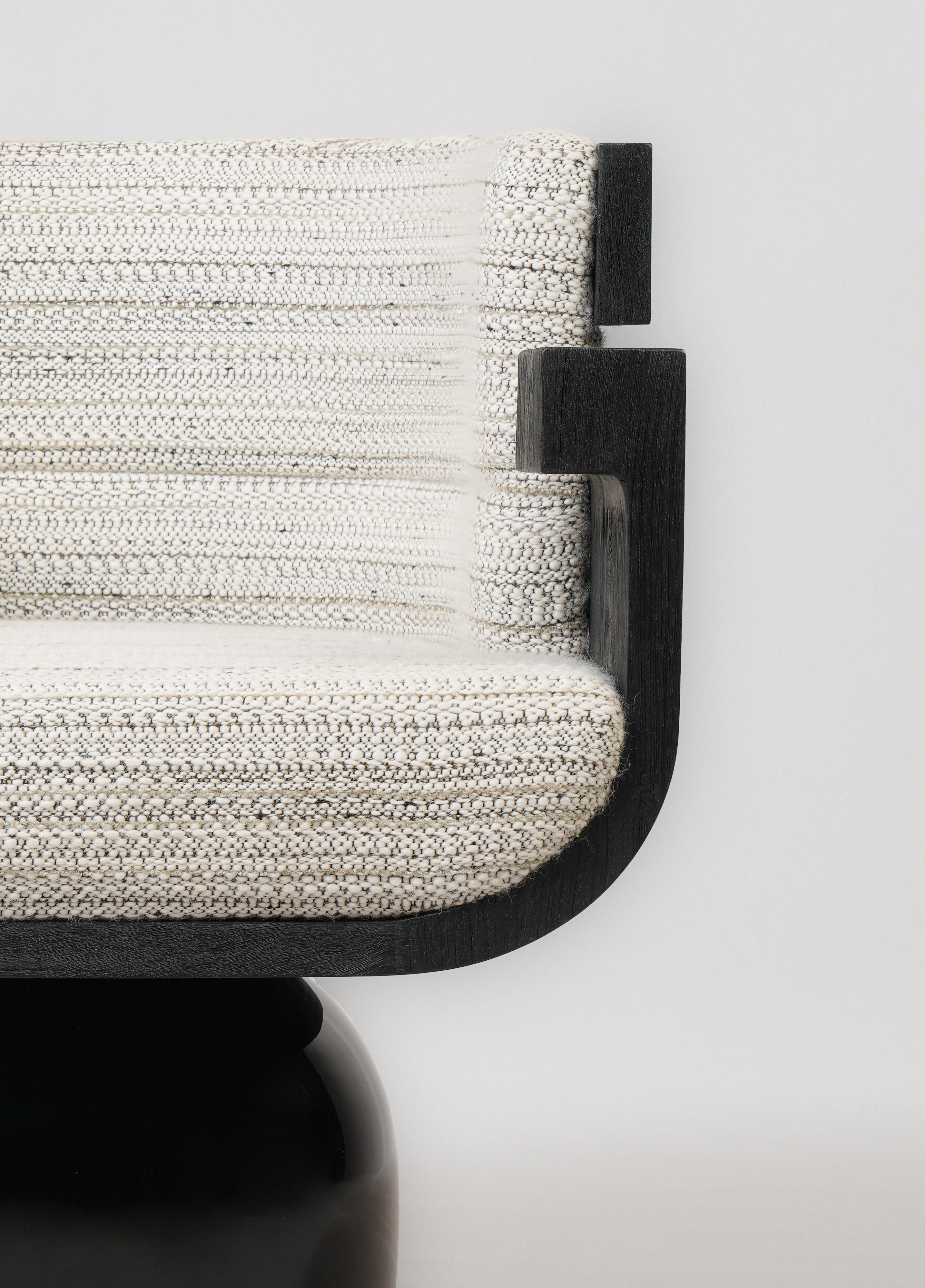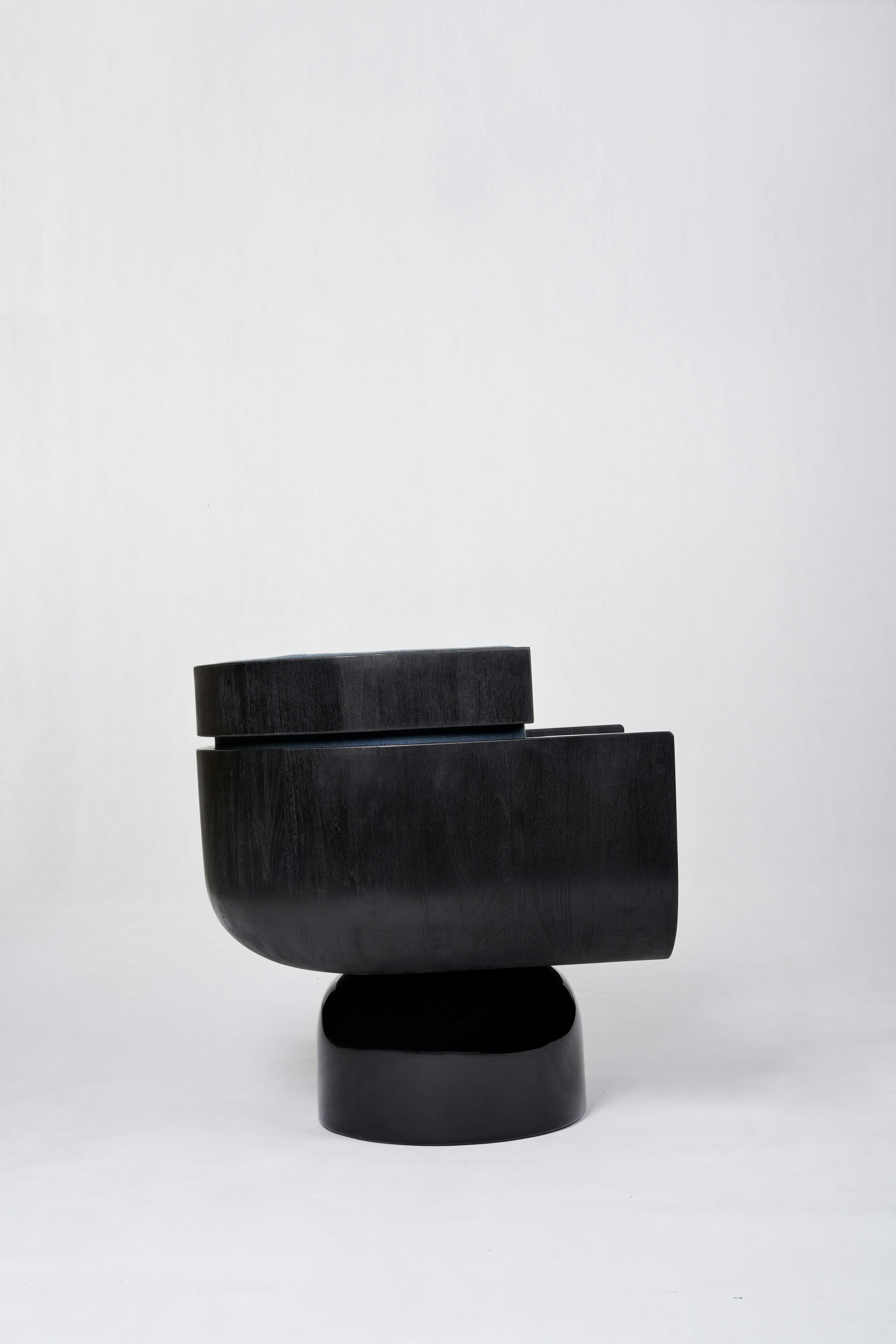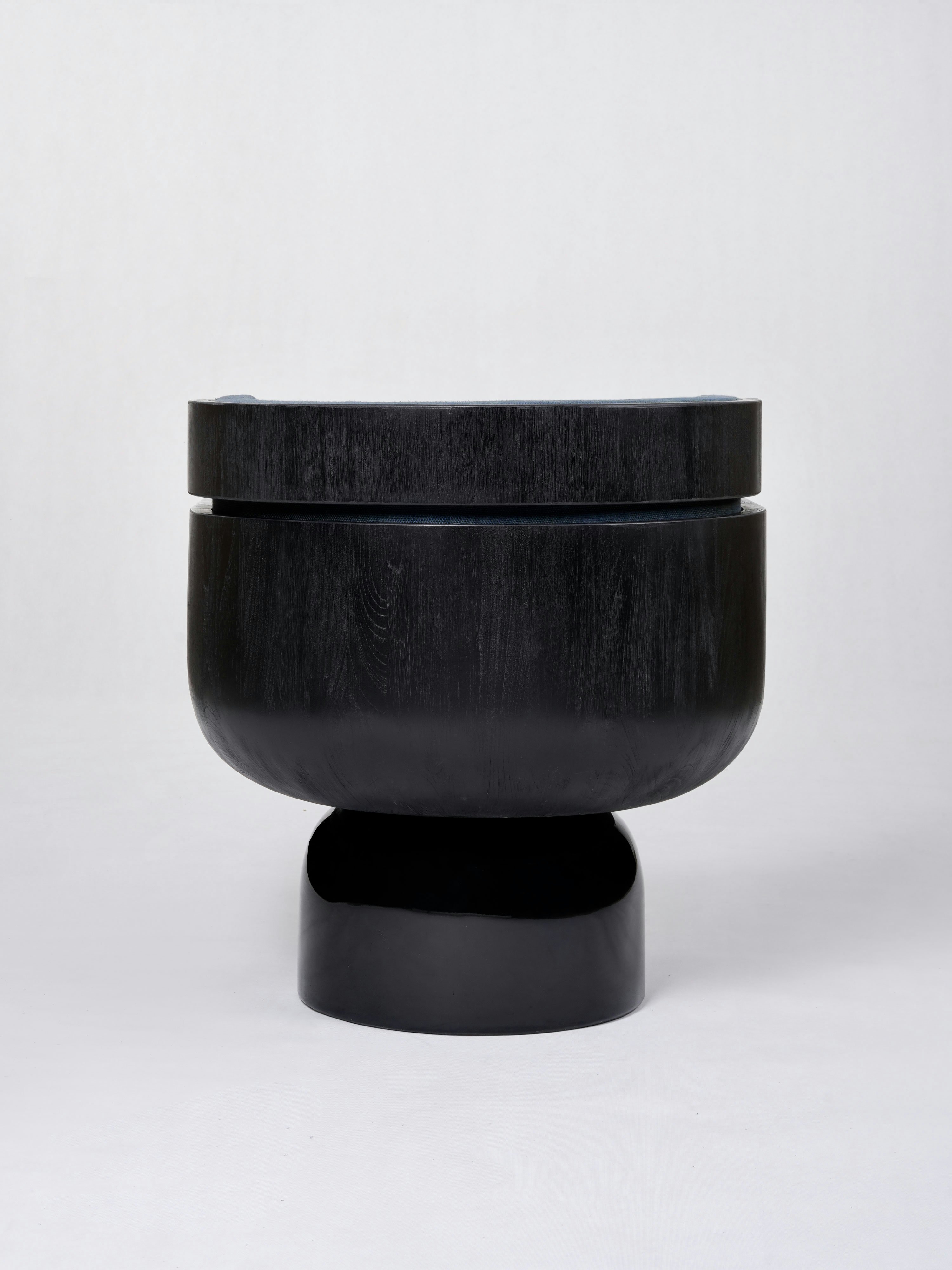 Armchair pictured in black teak with a leg in black lacquer.