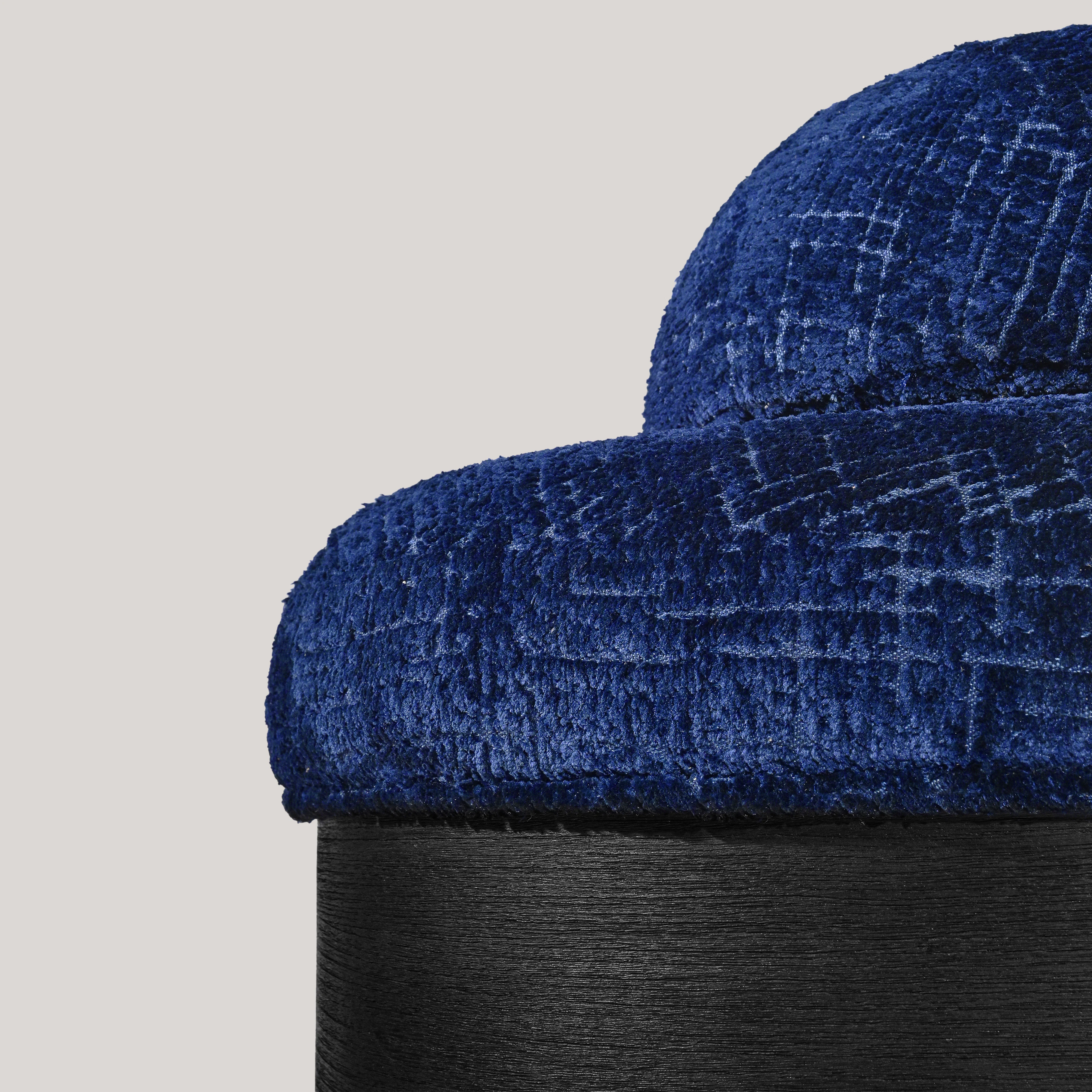 The back and seat are upholstered with Fifty Fifty Canard by Dedar.