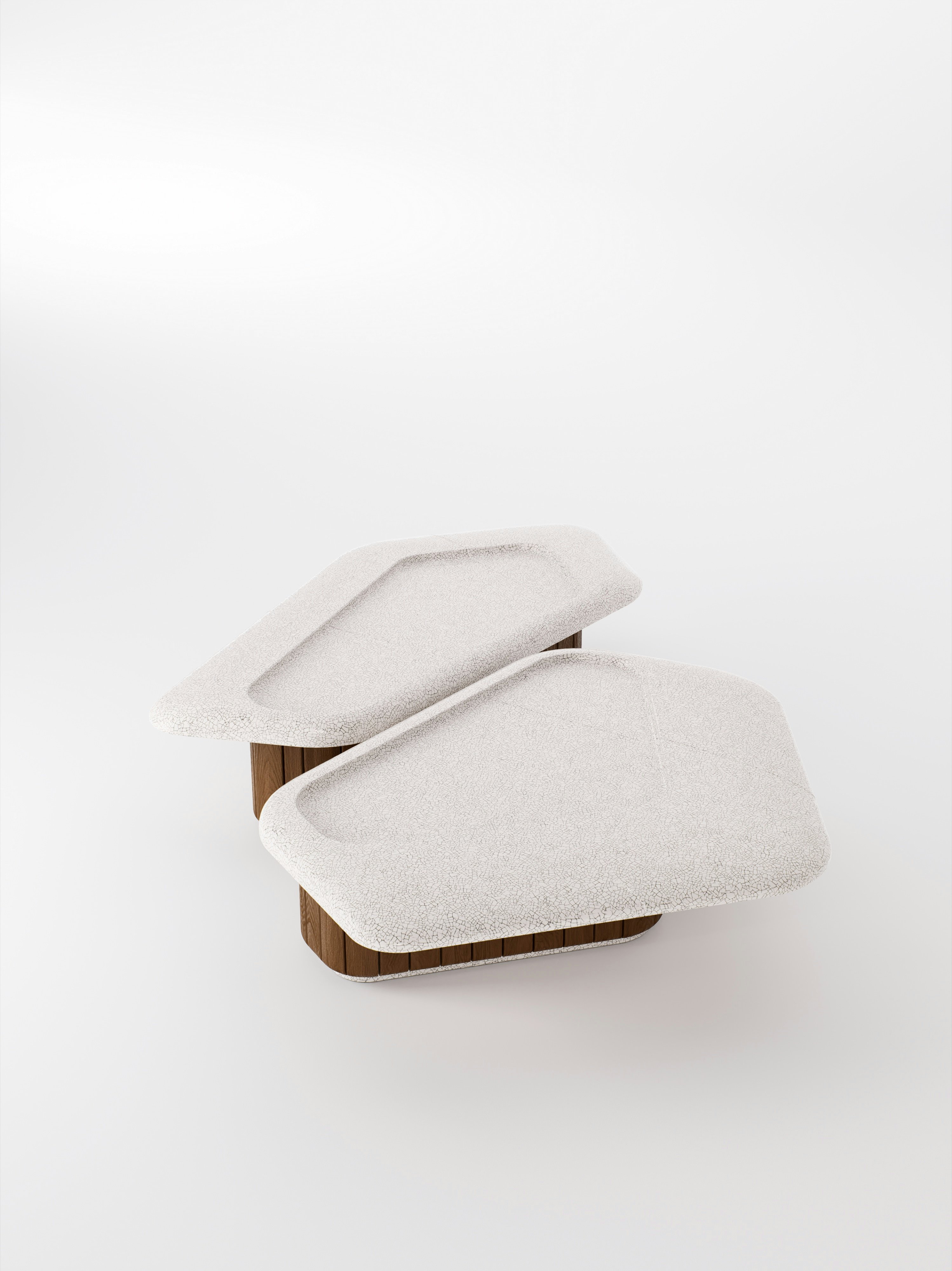 Mangala coffee table pictured in natural teak with a tabletop in raku blanc écru.