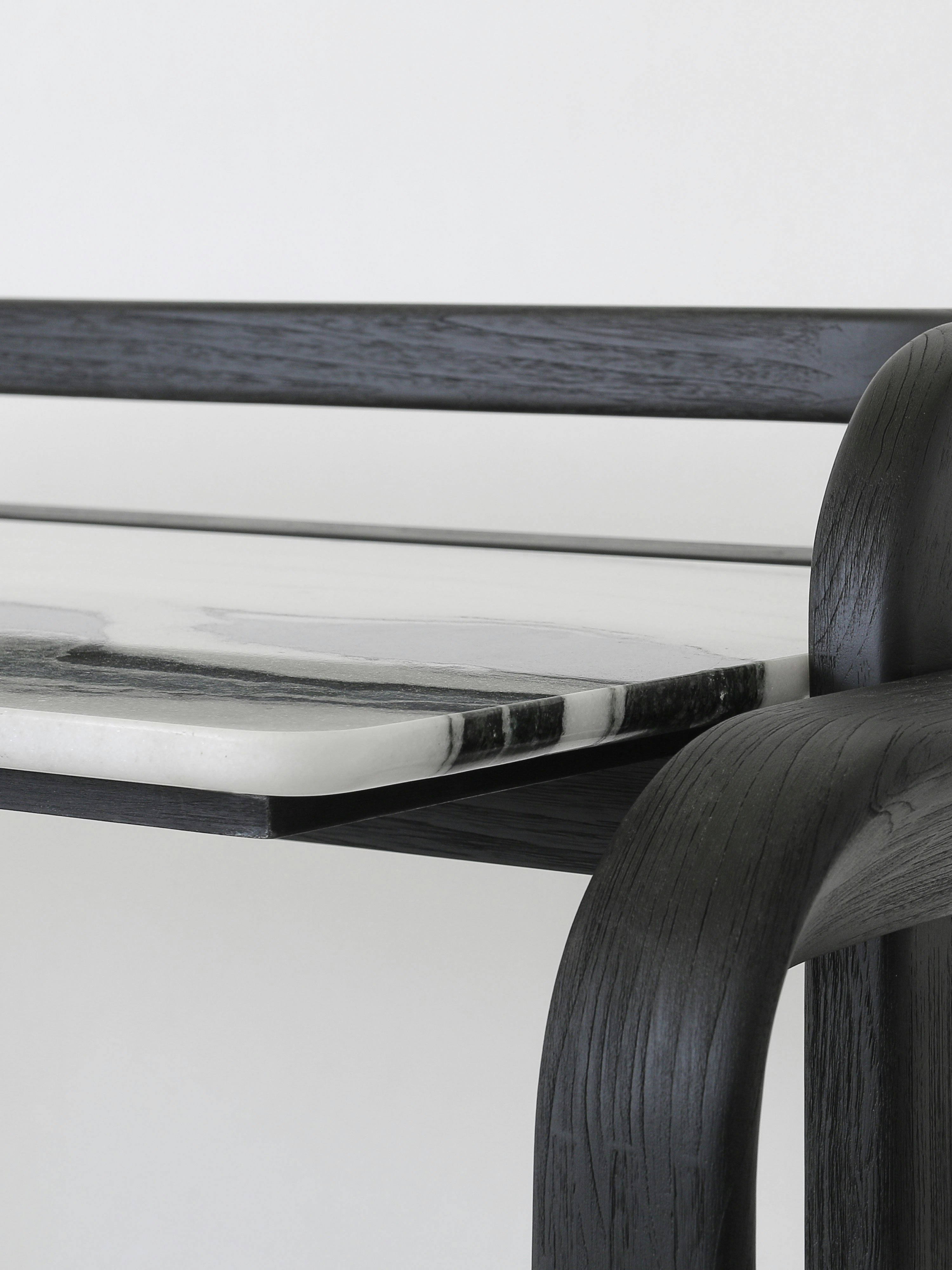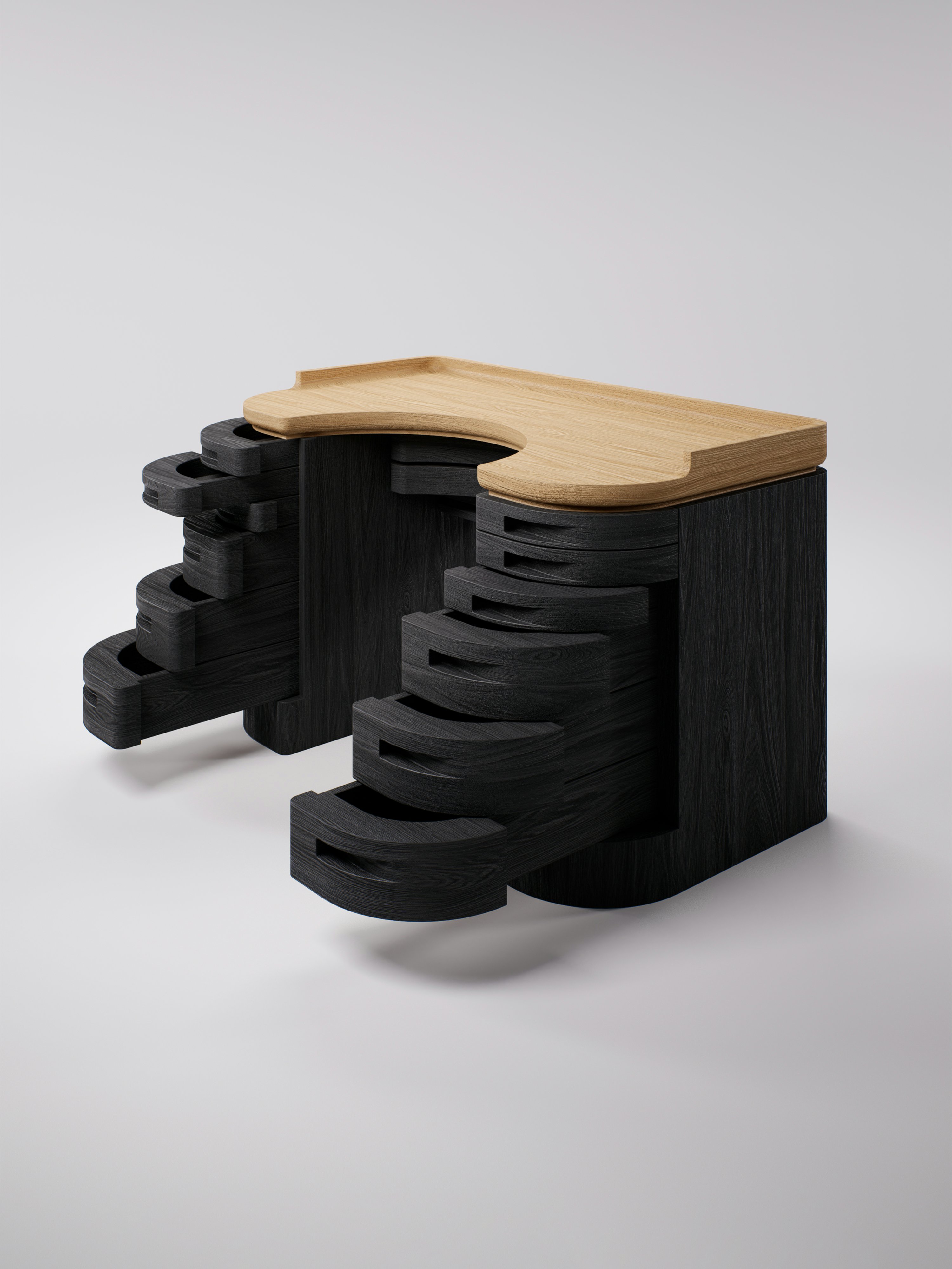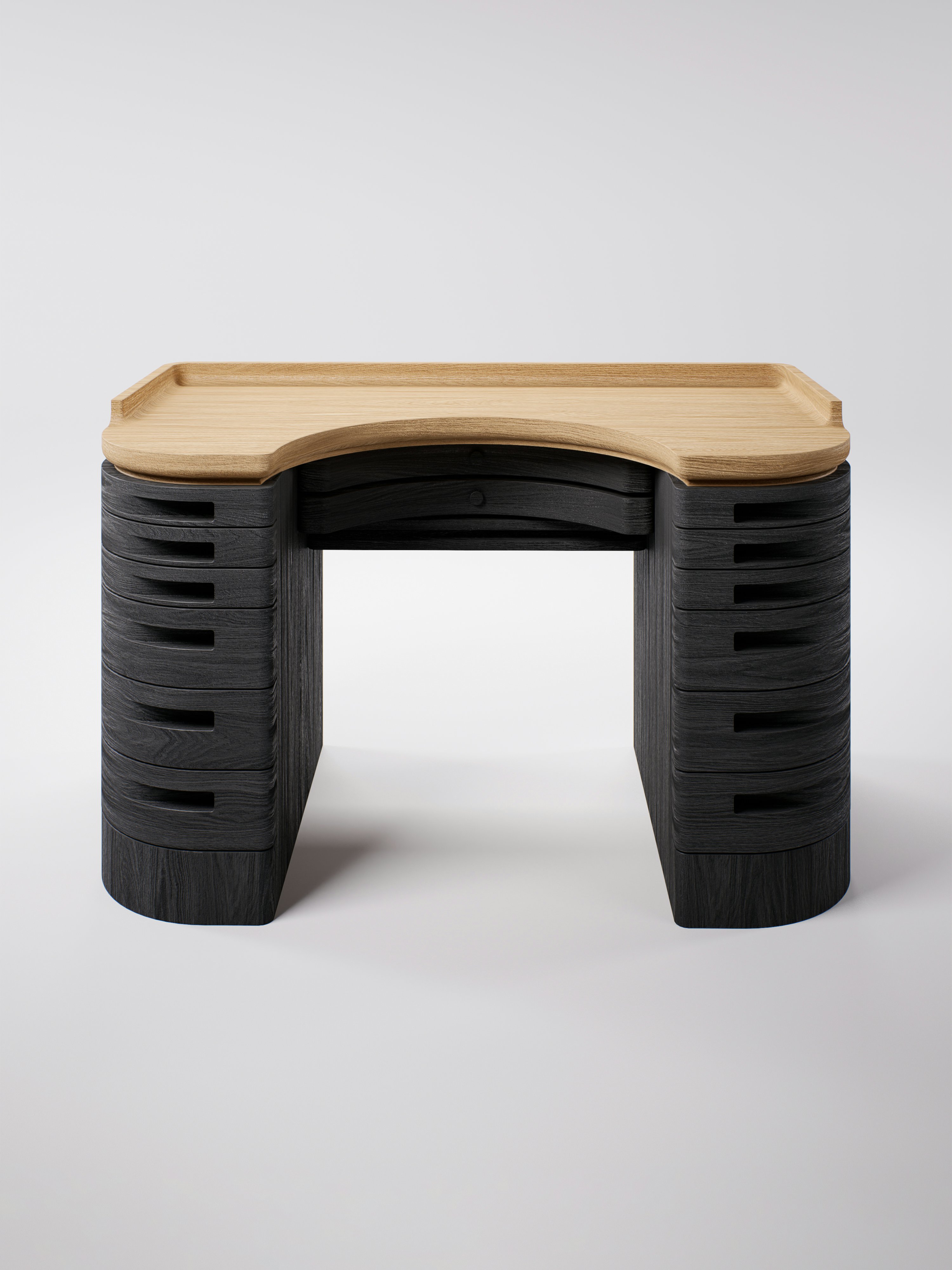 Desk pictured in black teak with a natural oak tabletop.