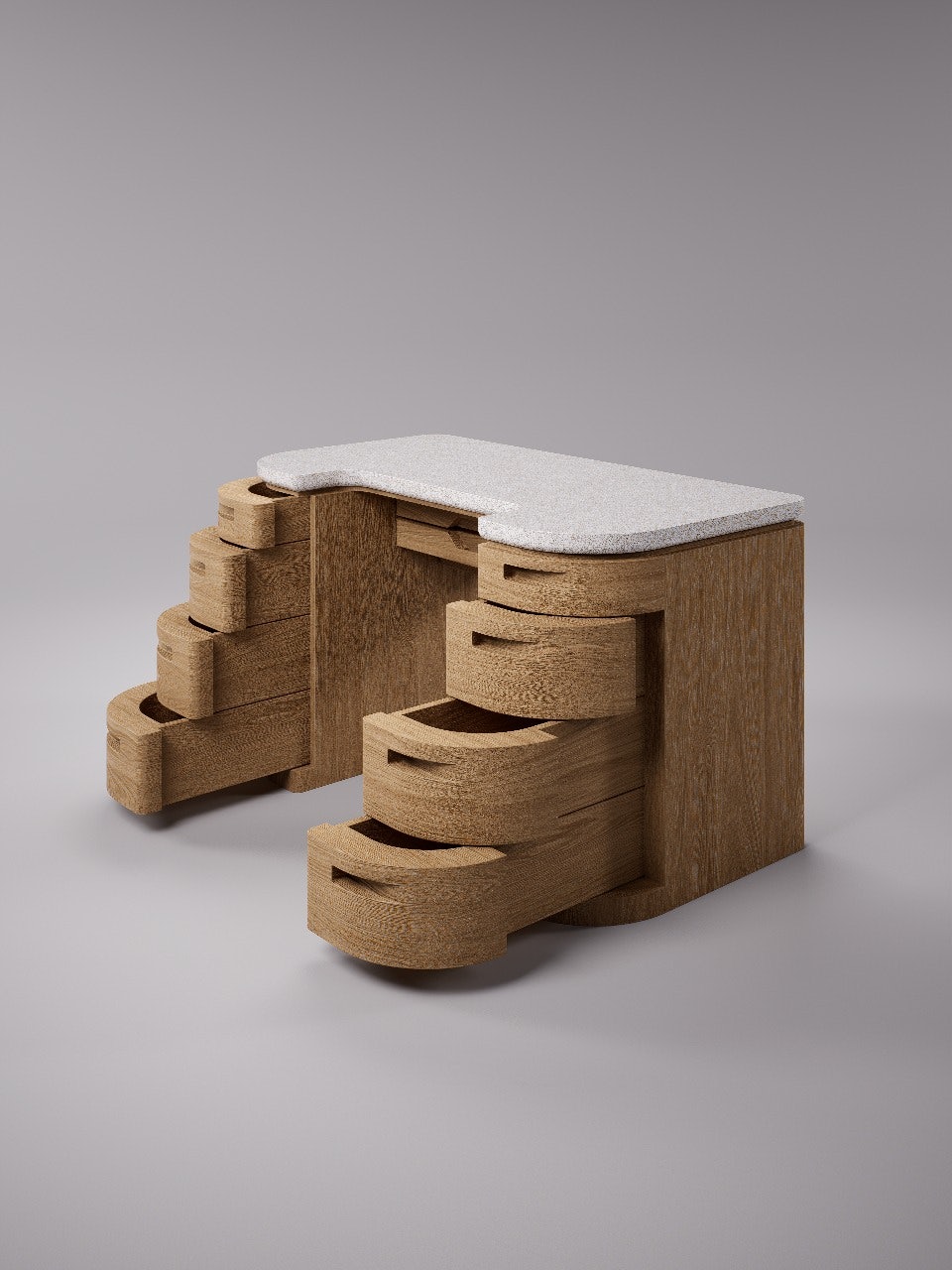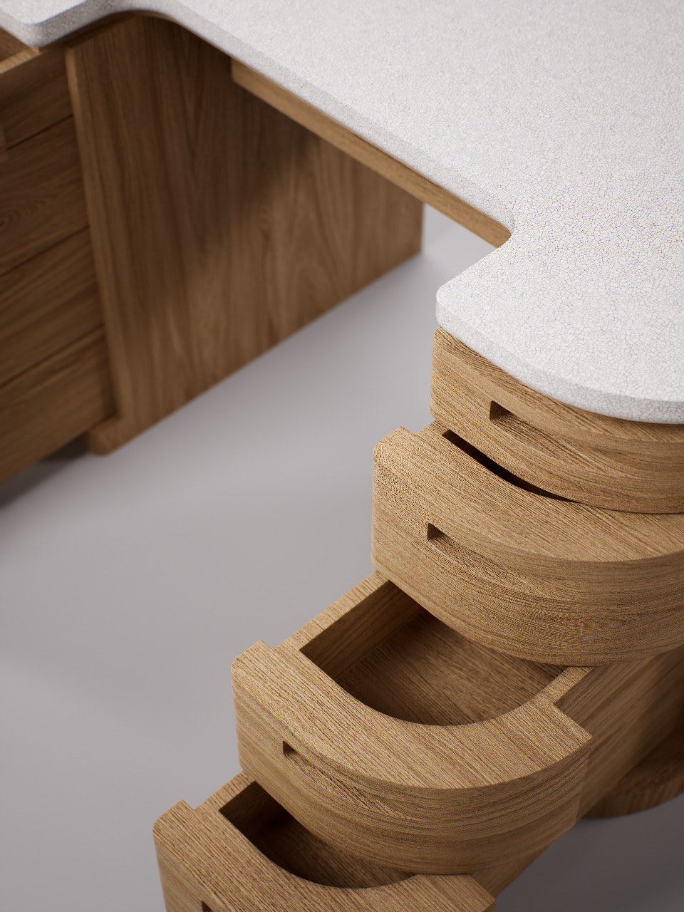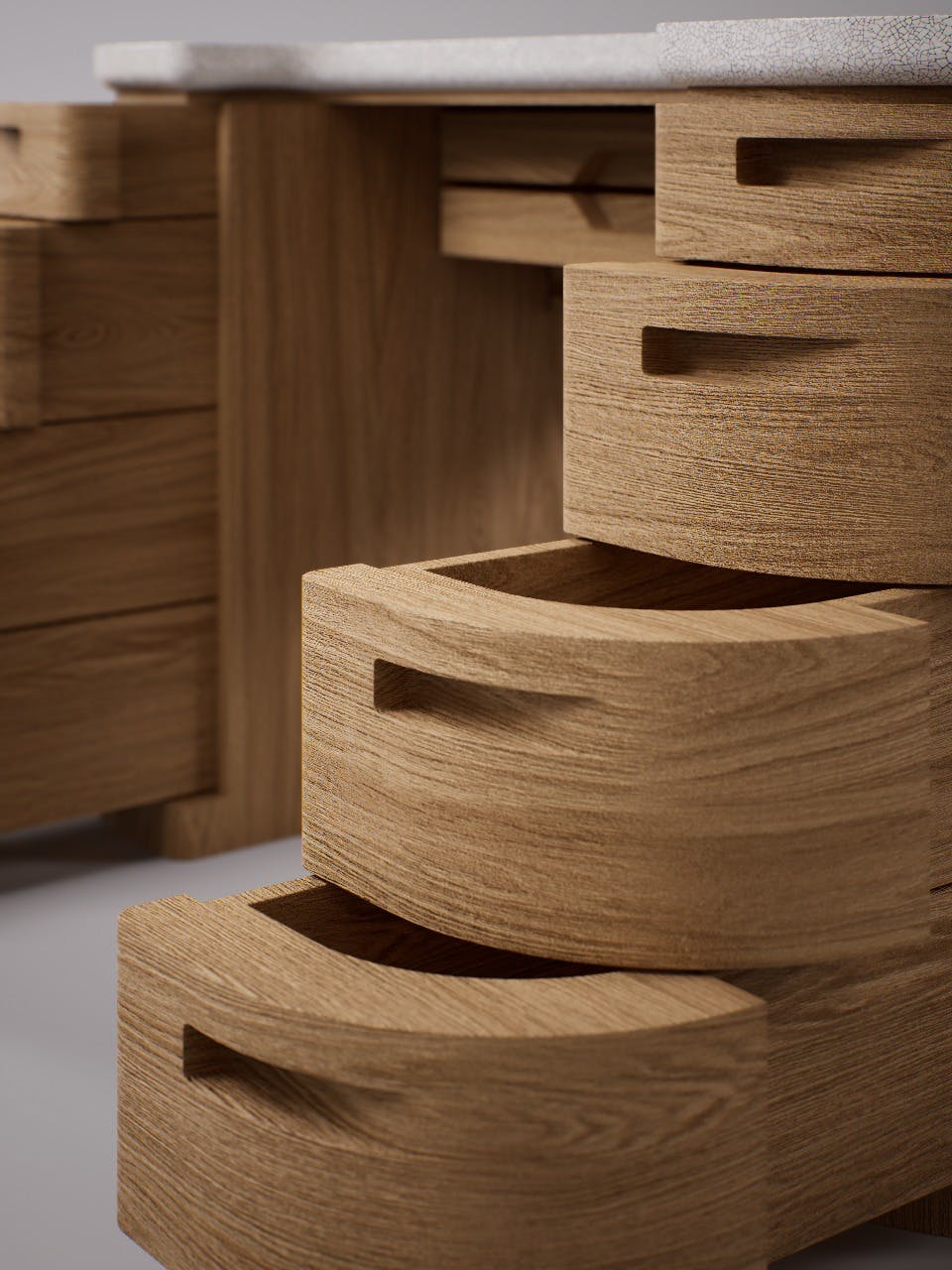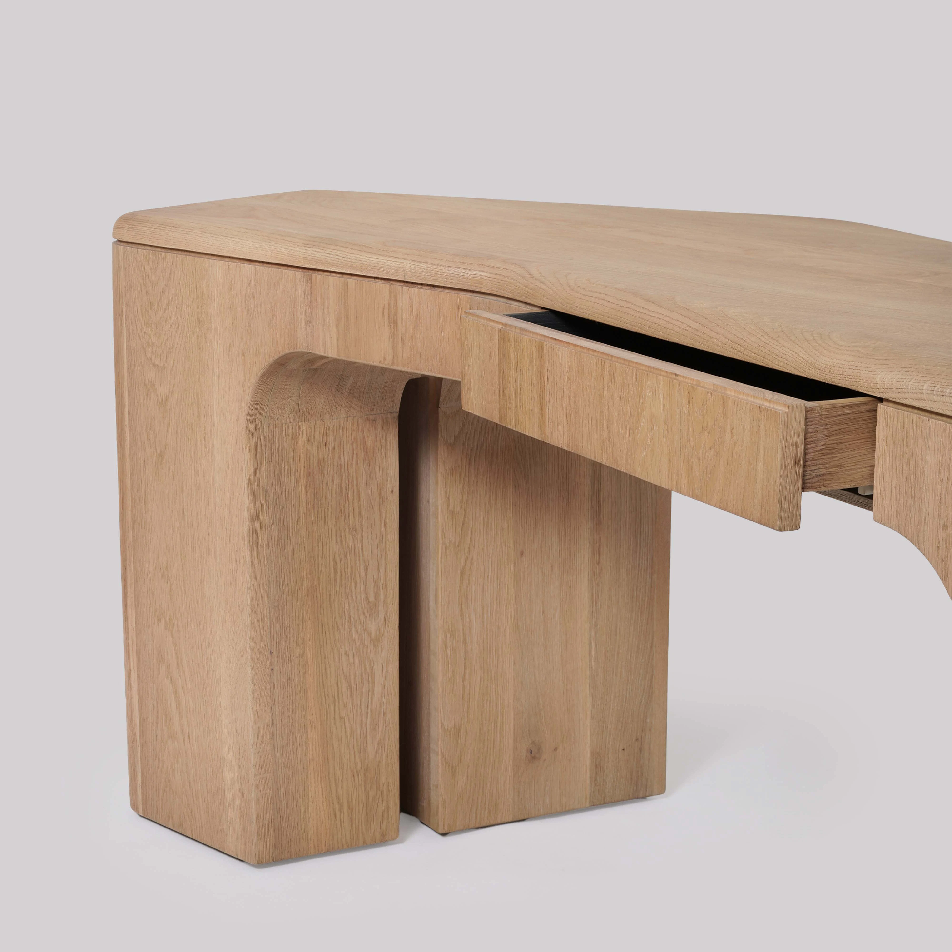Desk pictured in natural oak with a lava stone full glazed crackled tabletop.