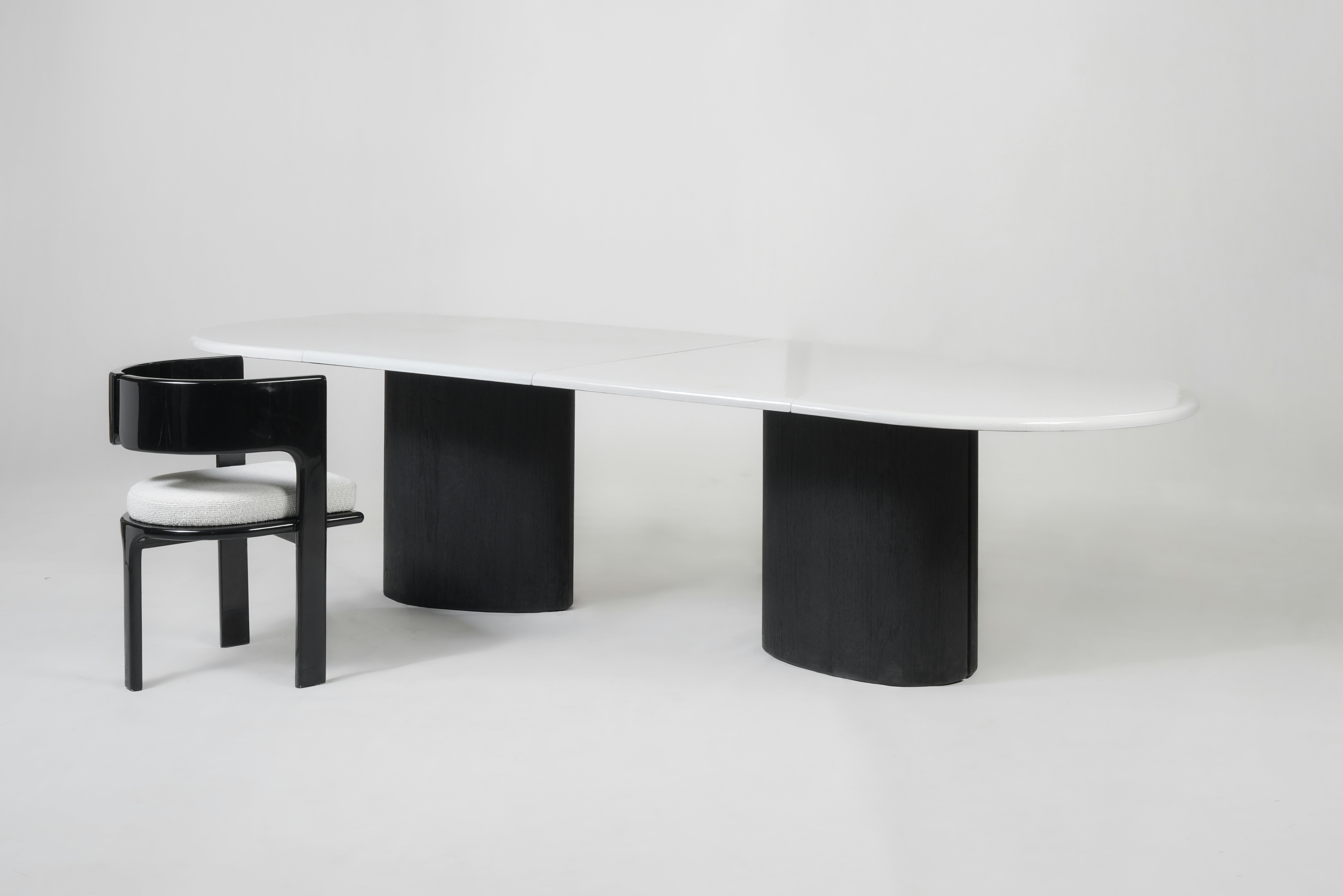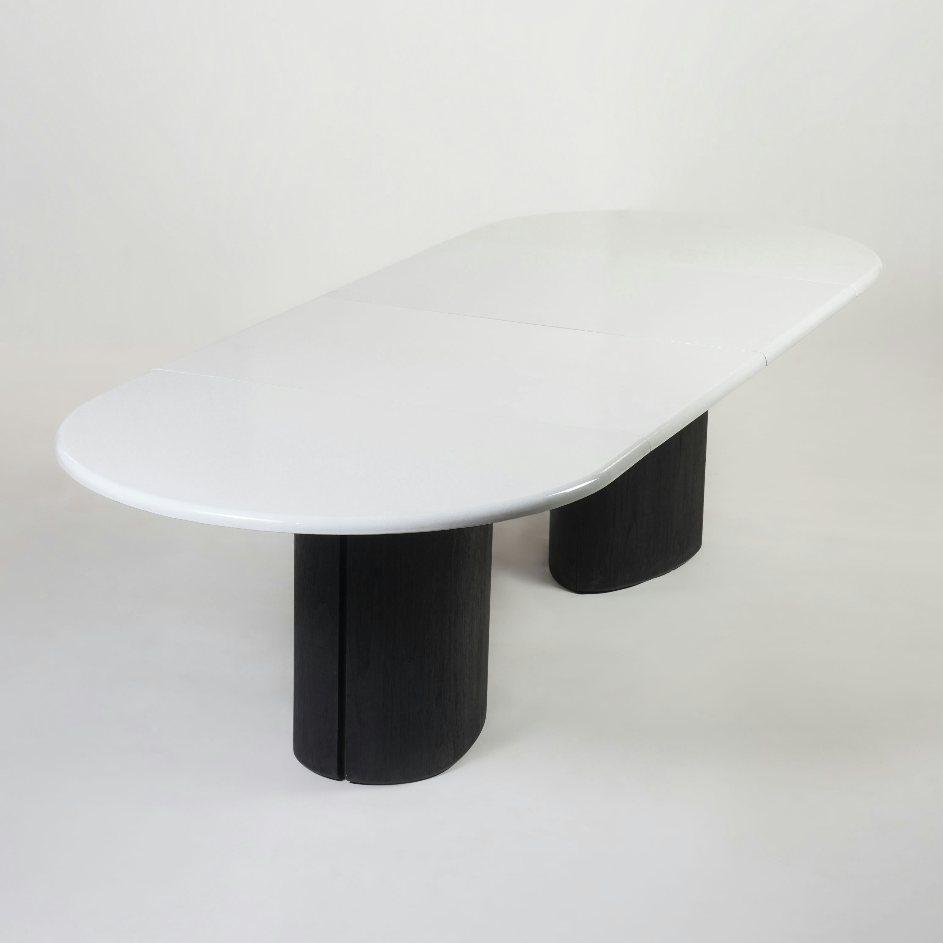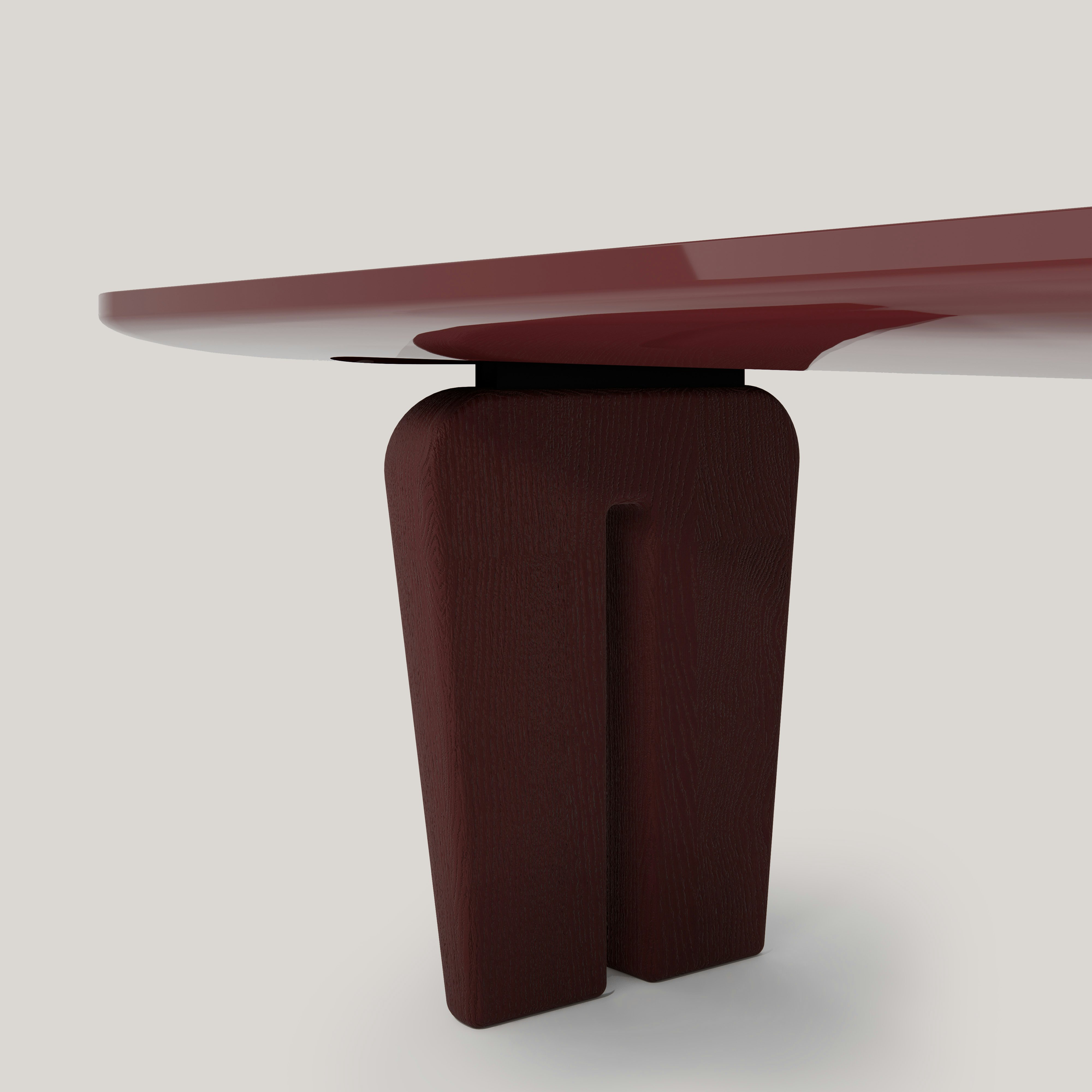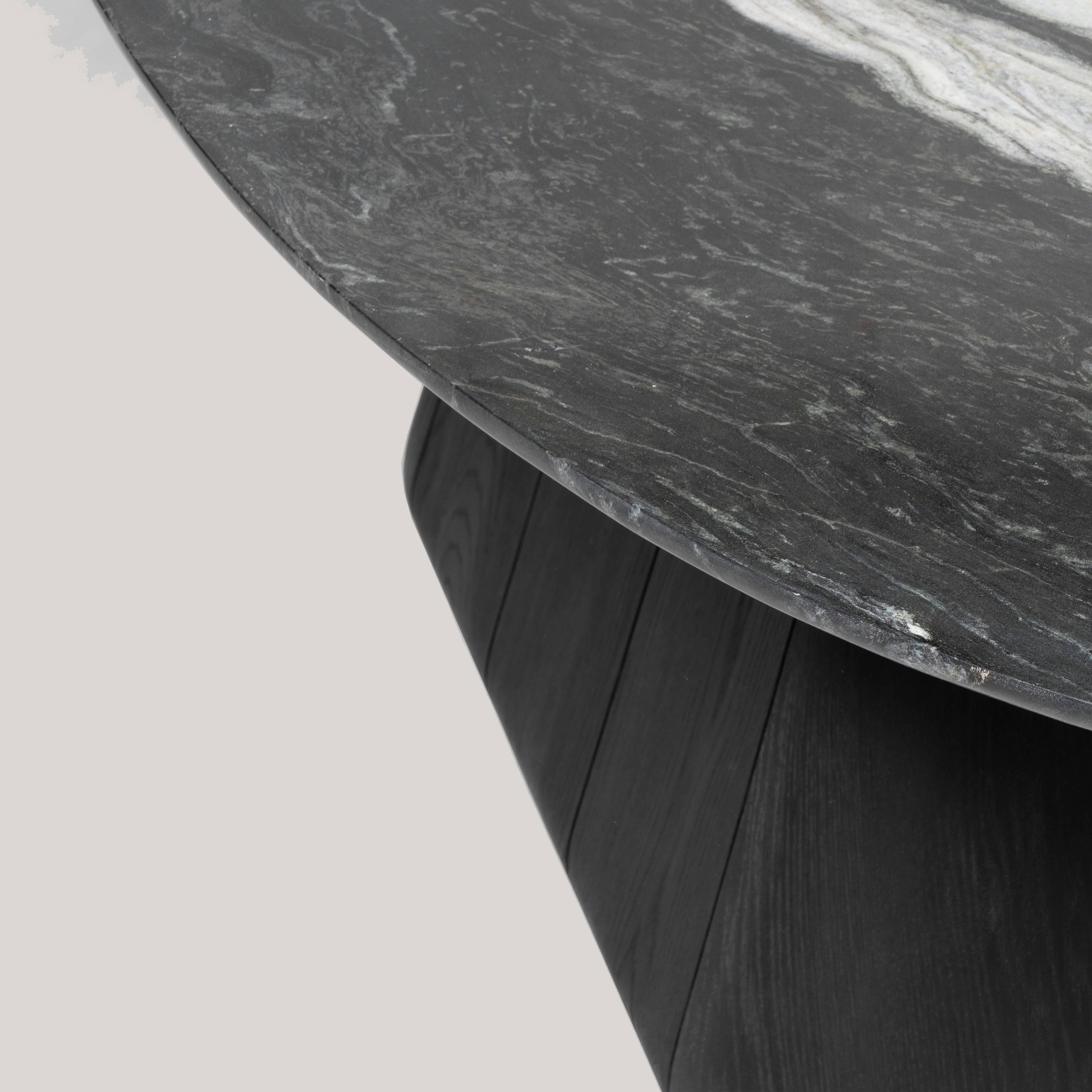 Dining table pictured in black teak with a lava stone table top.
