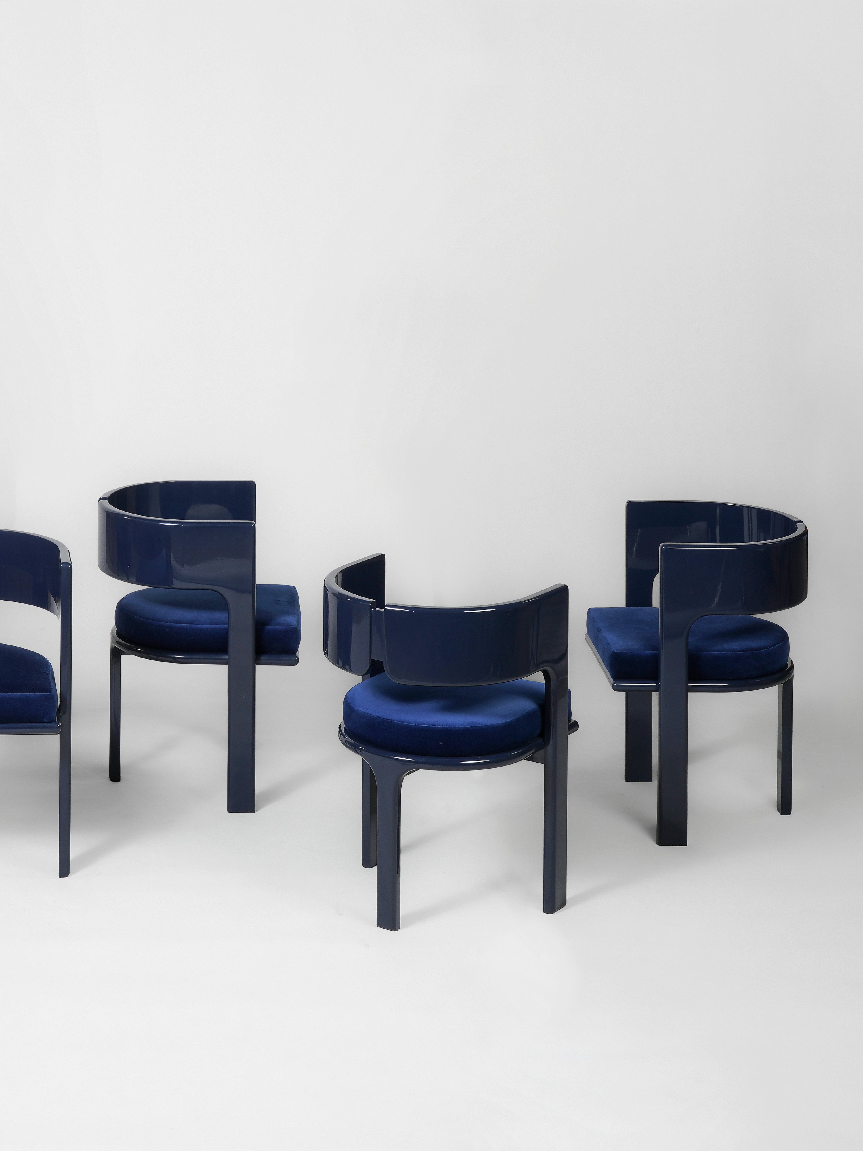 Chairs pictured in Indigo blue lacquer.