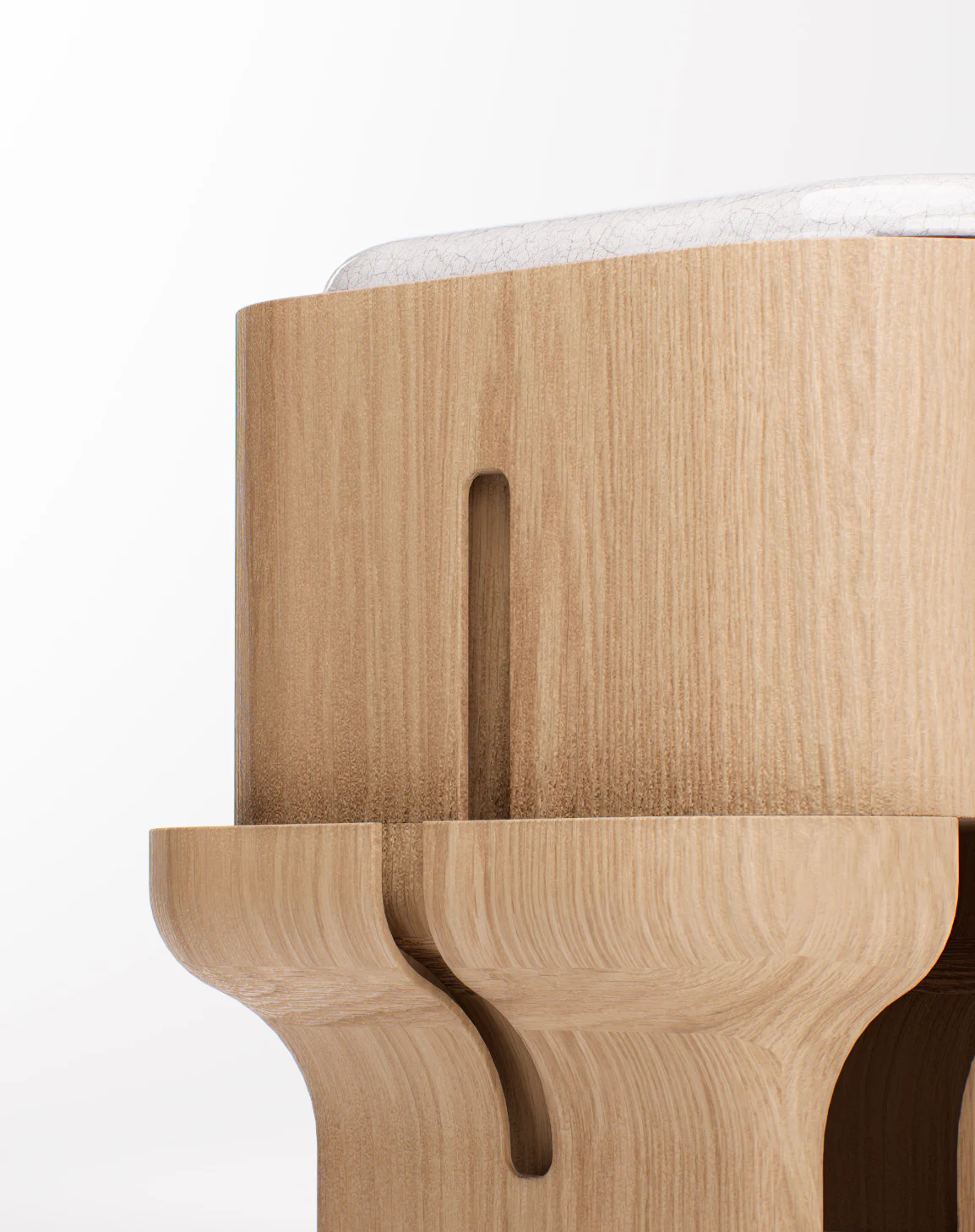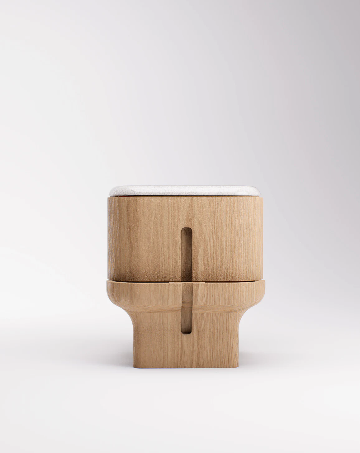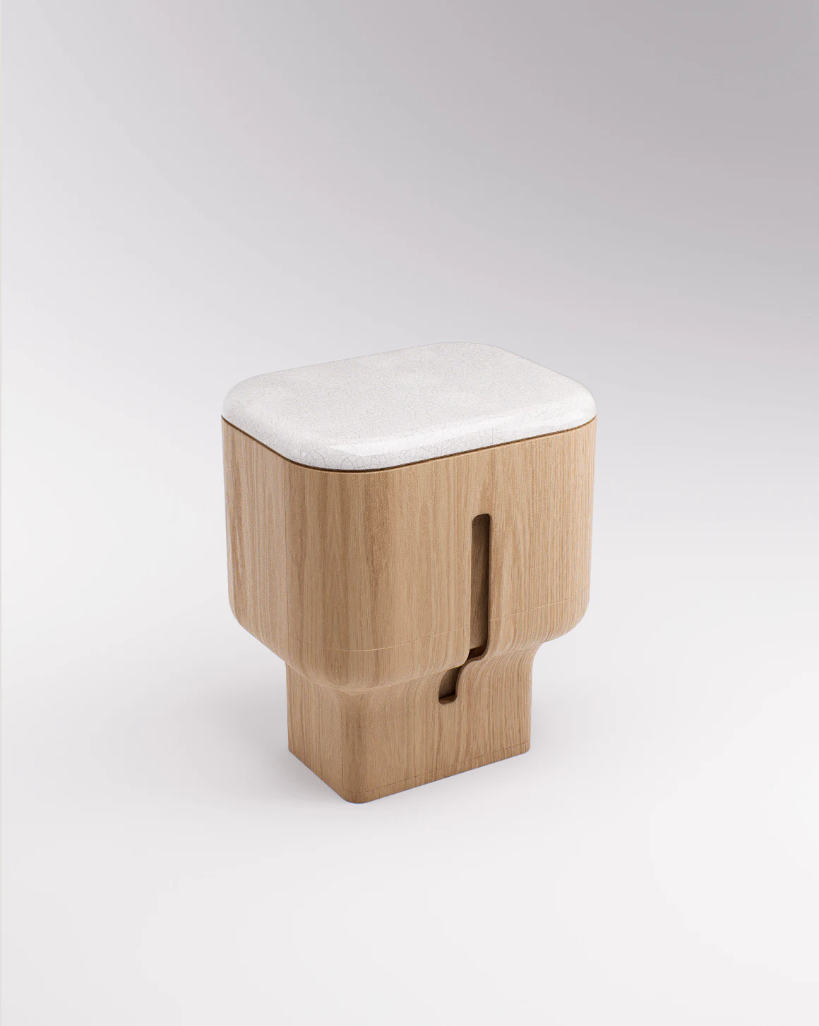Bedside table pictured in natural oak with a top in lava stone full glazed crackle.