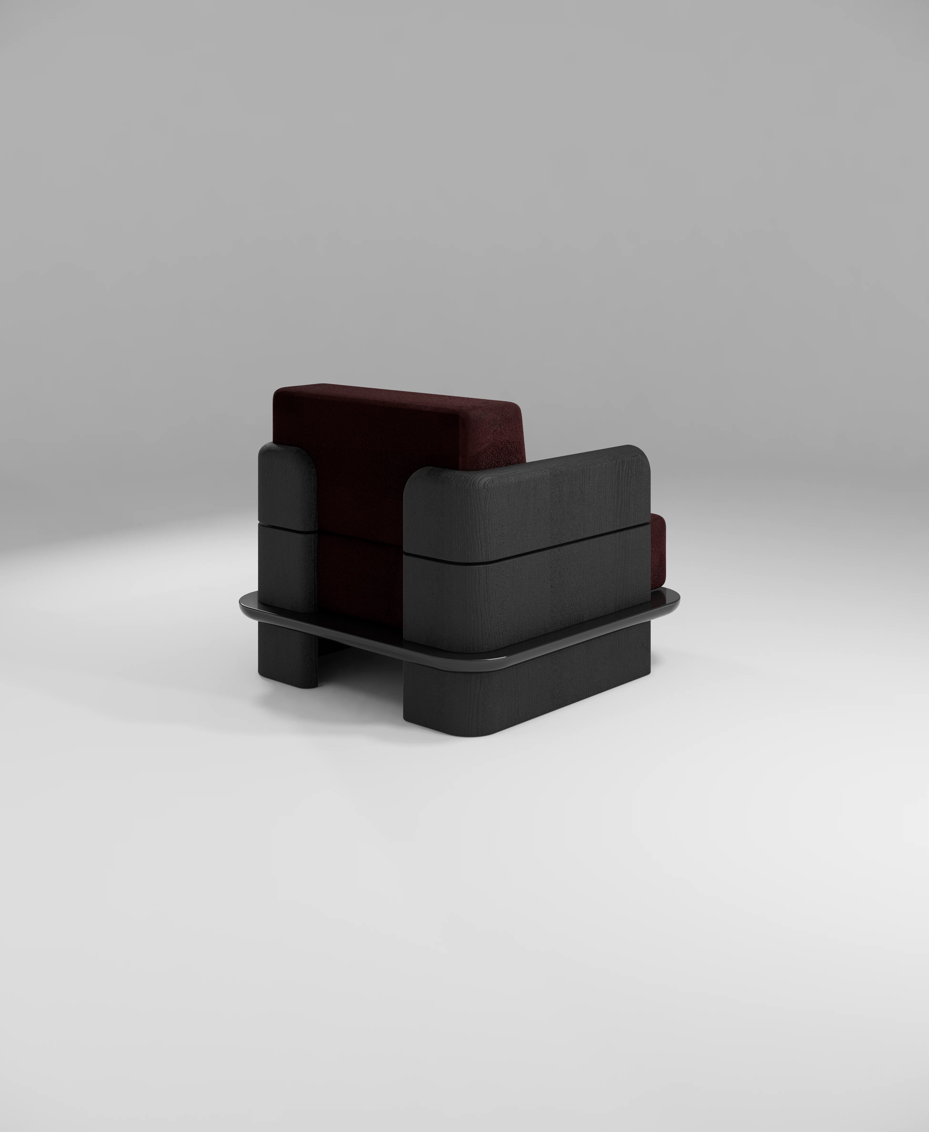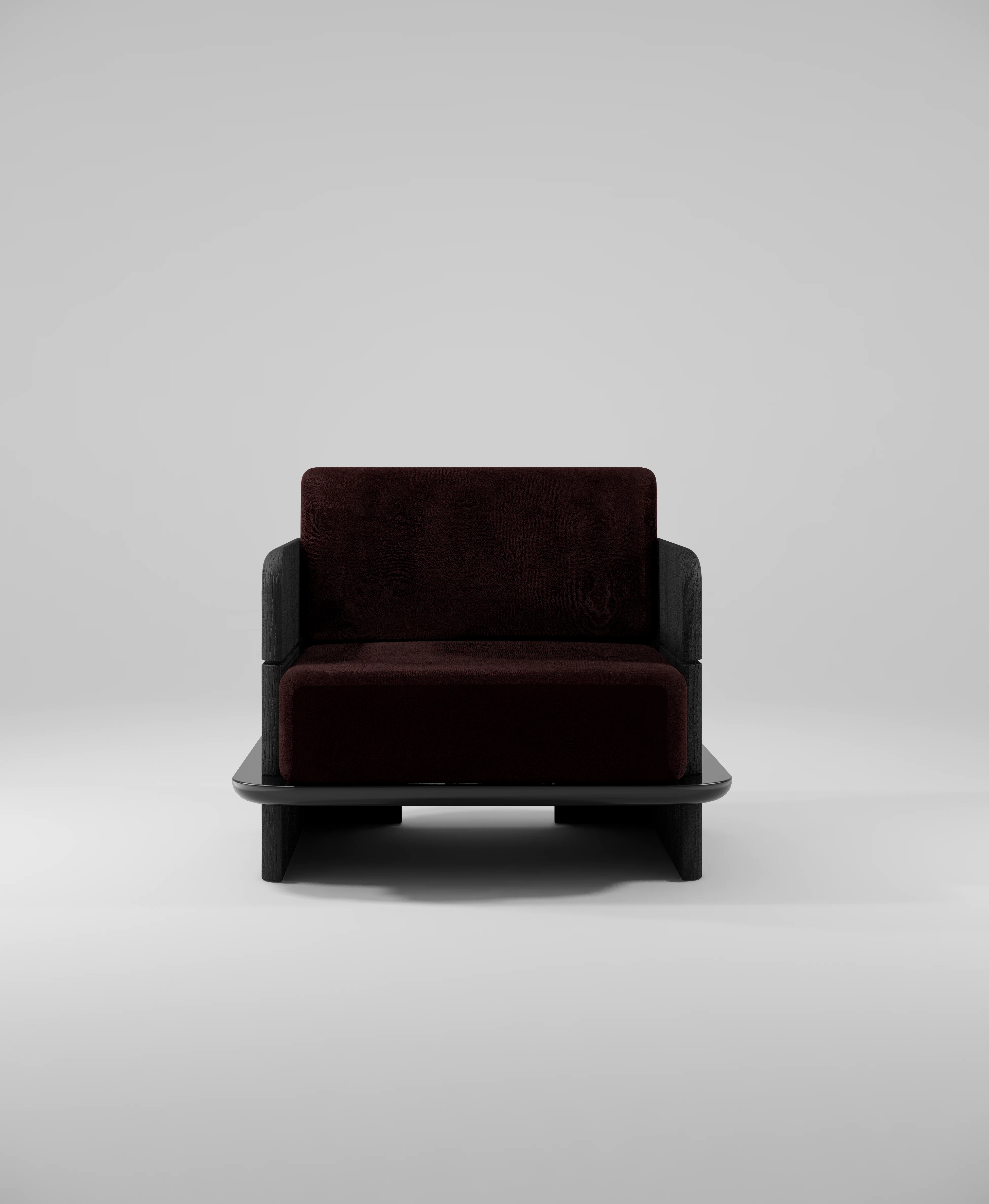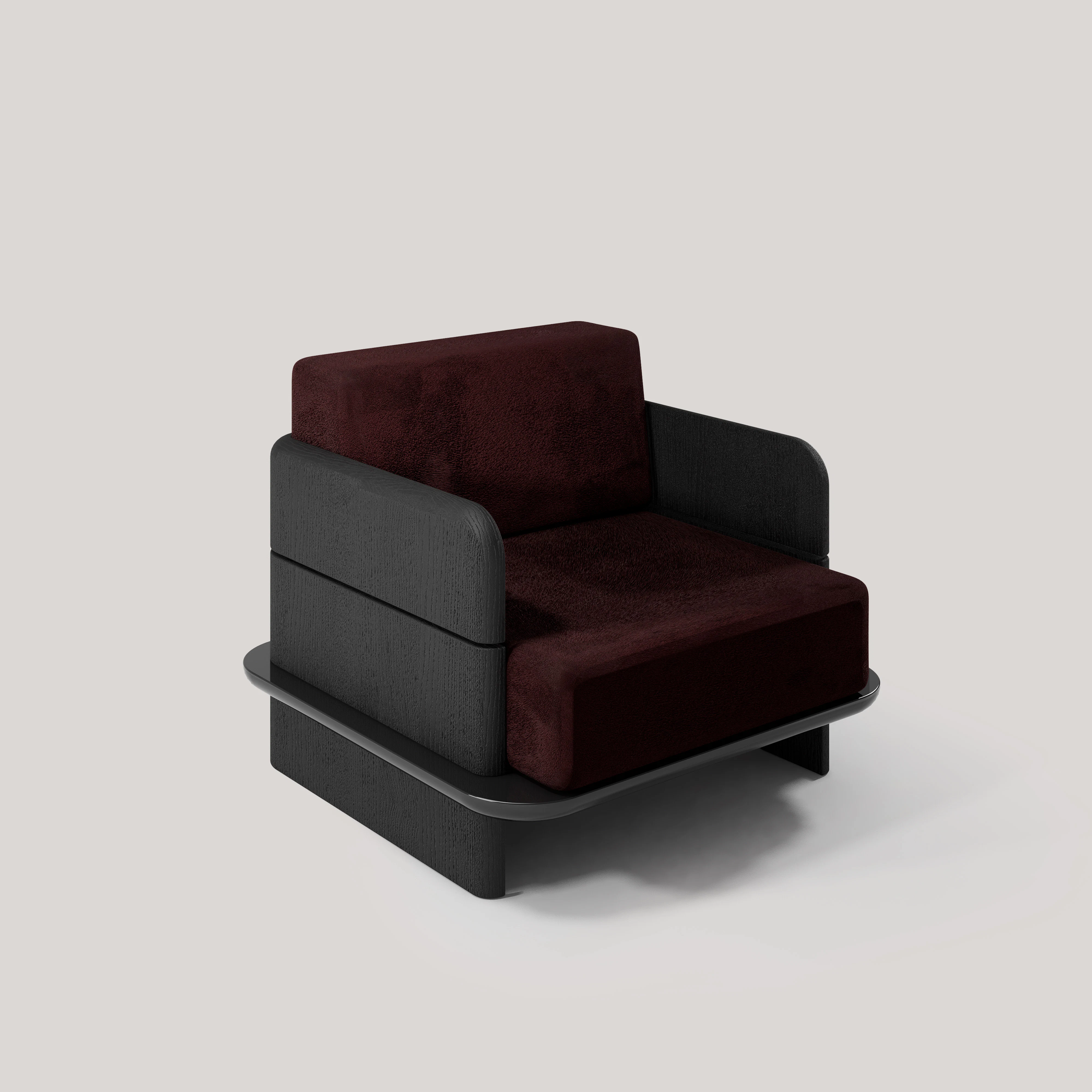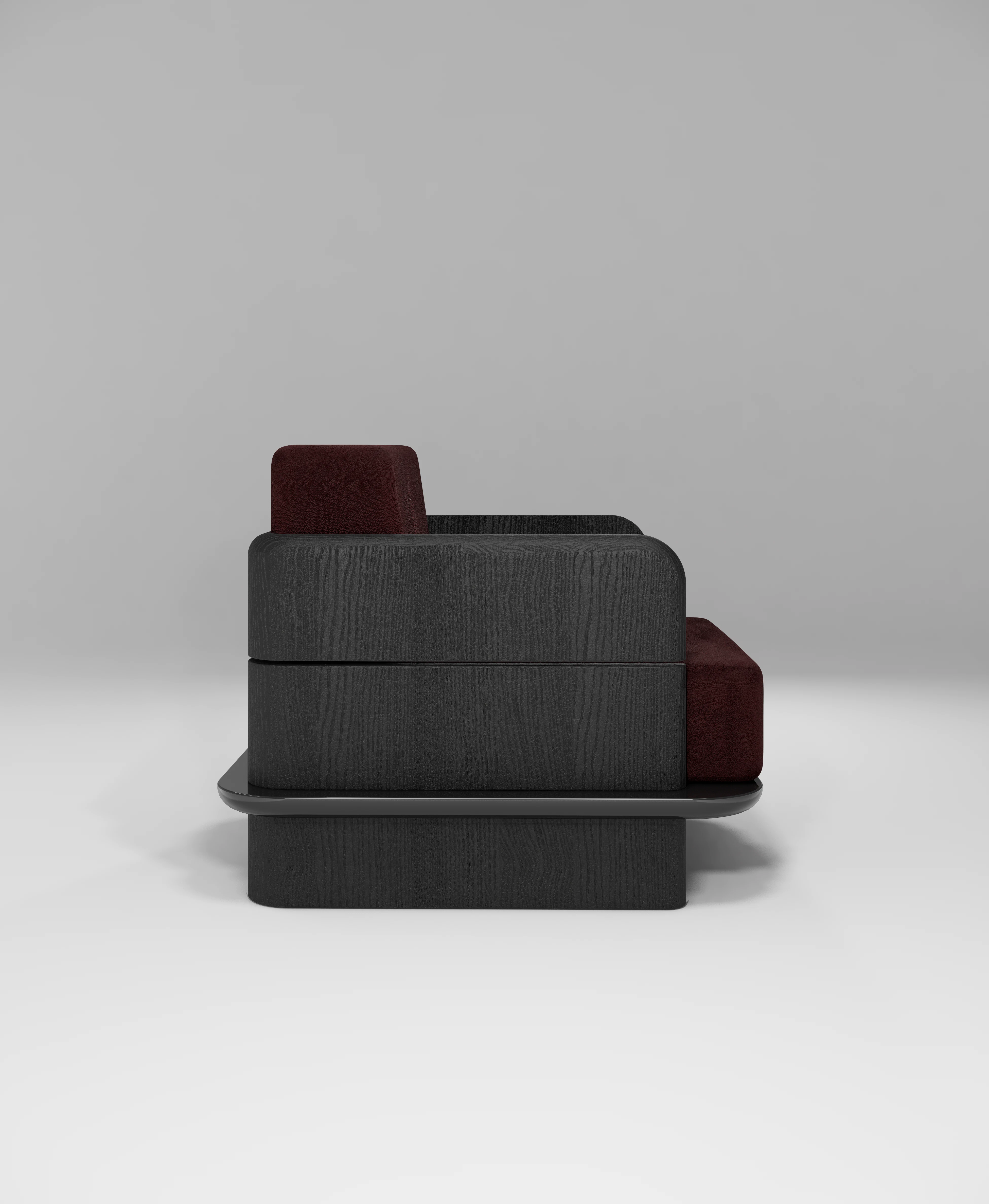 Lounge chair pictured in black teak with a lacquer edging.