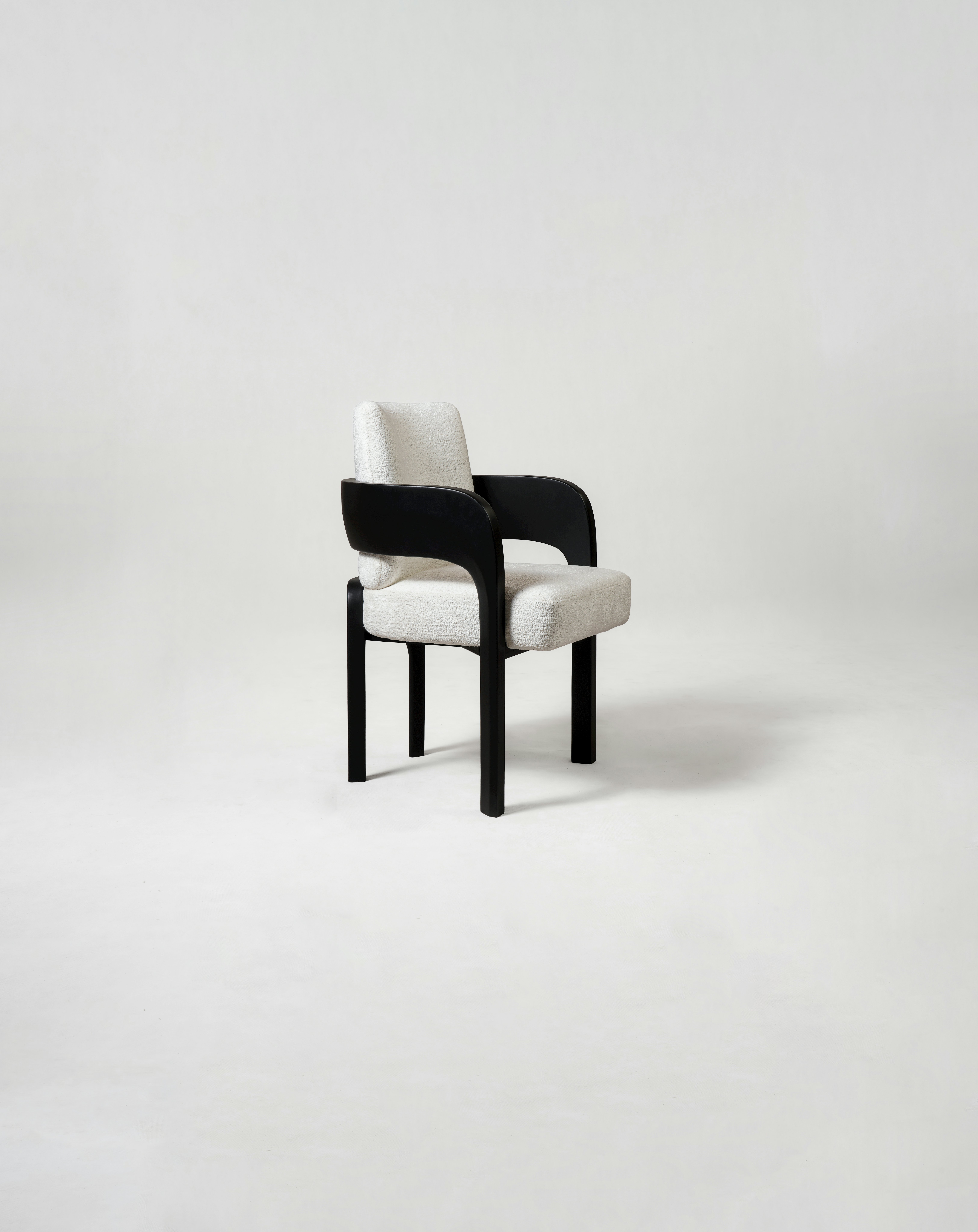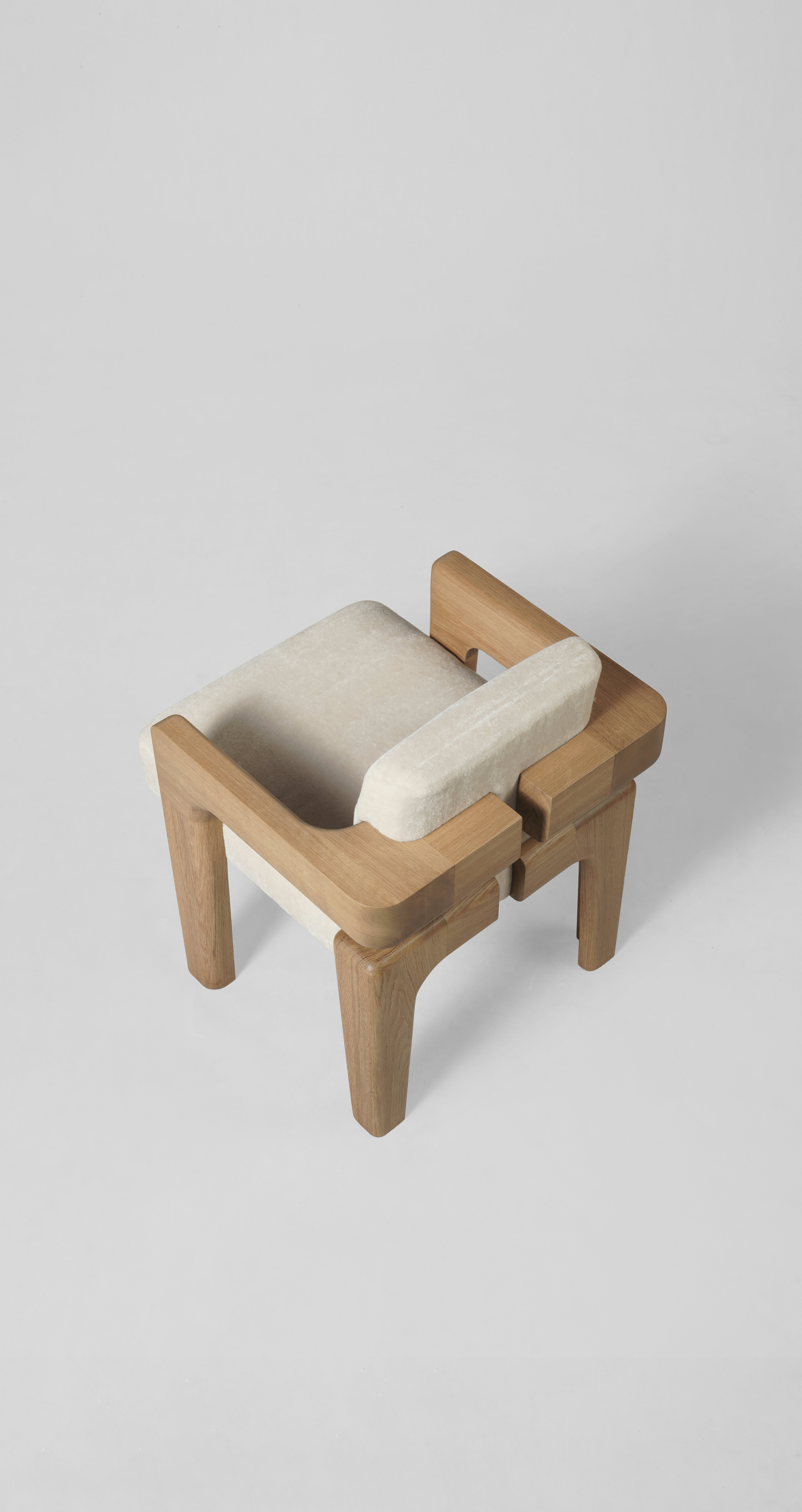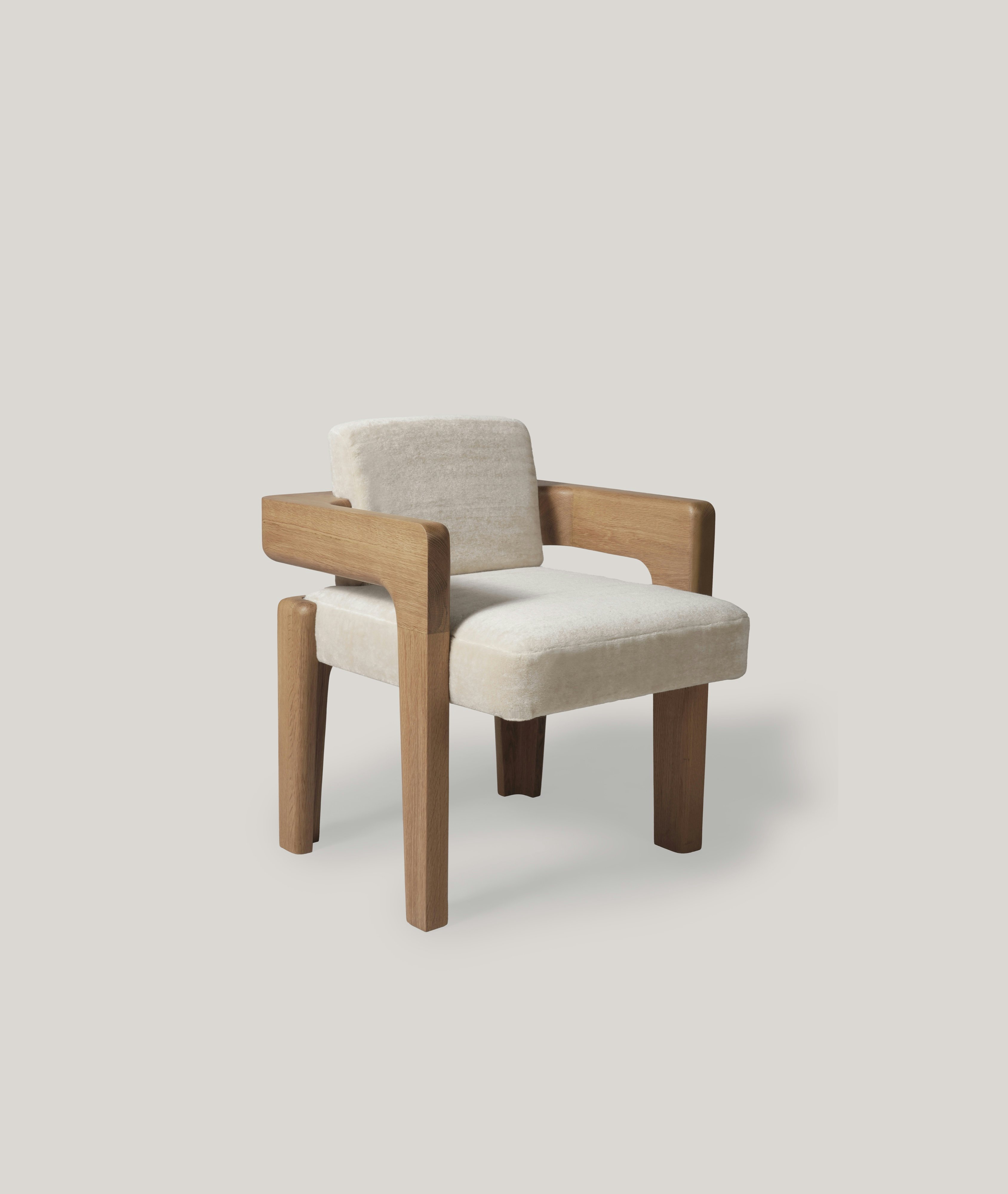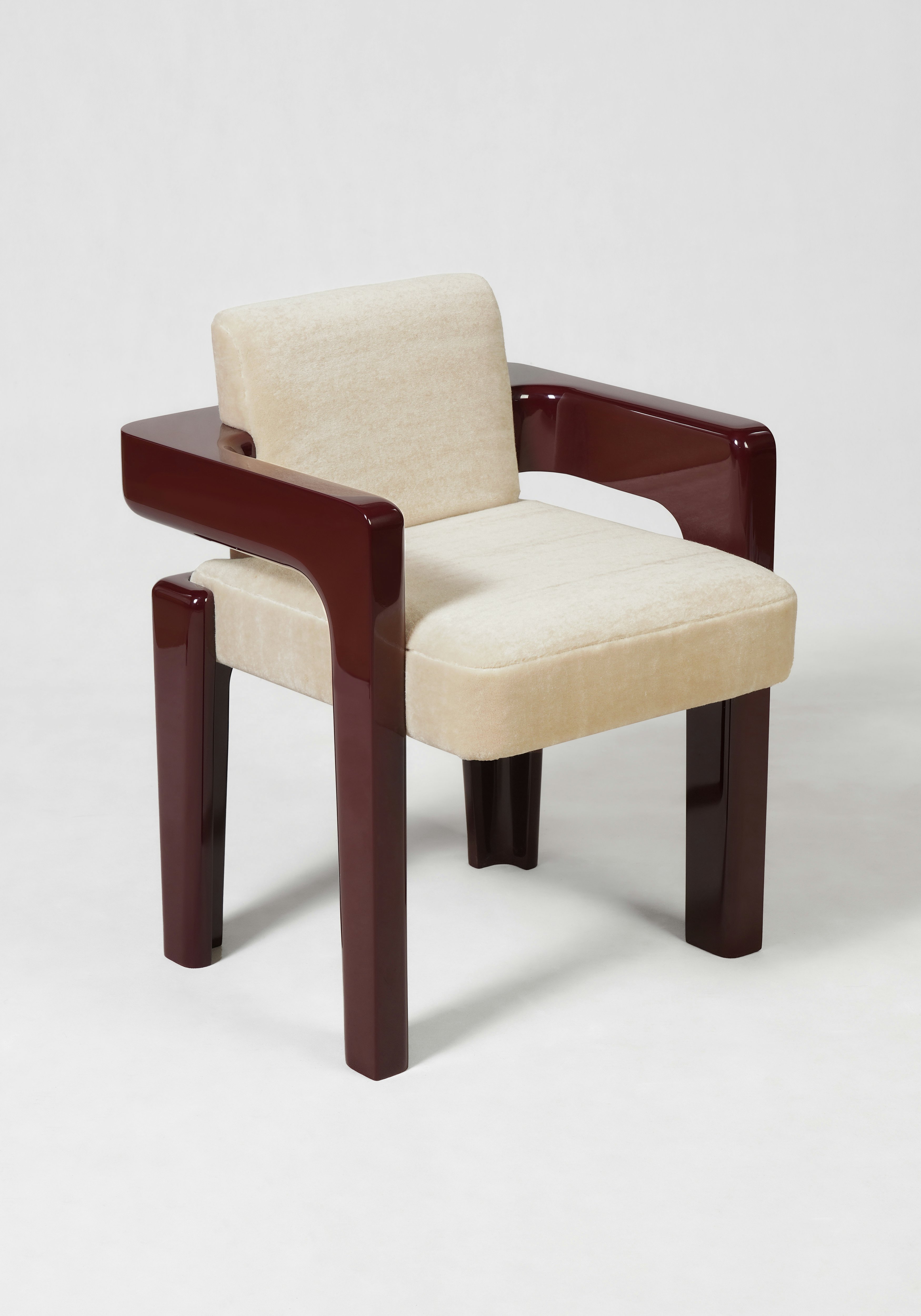 The back and seat are upholstered with Teddy Mohair by Pierre Frey.