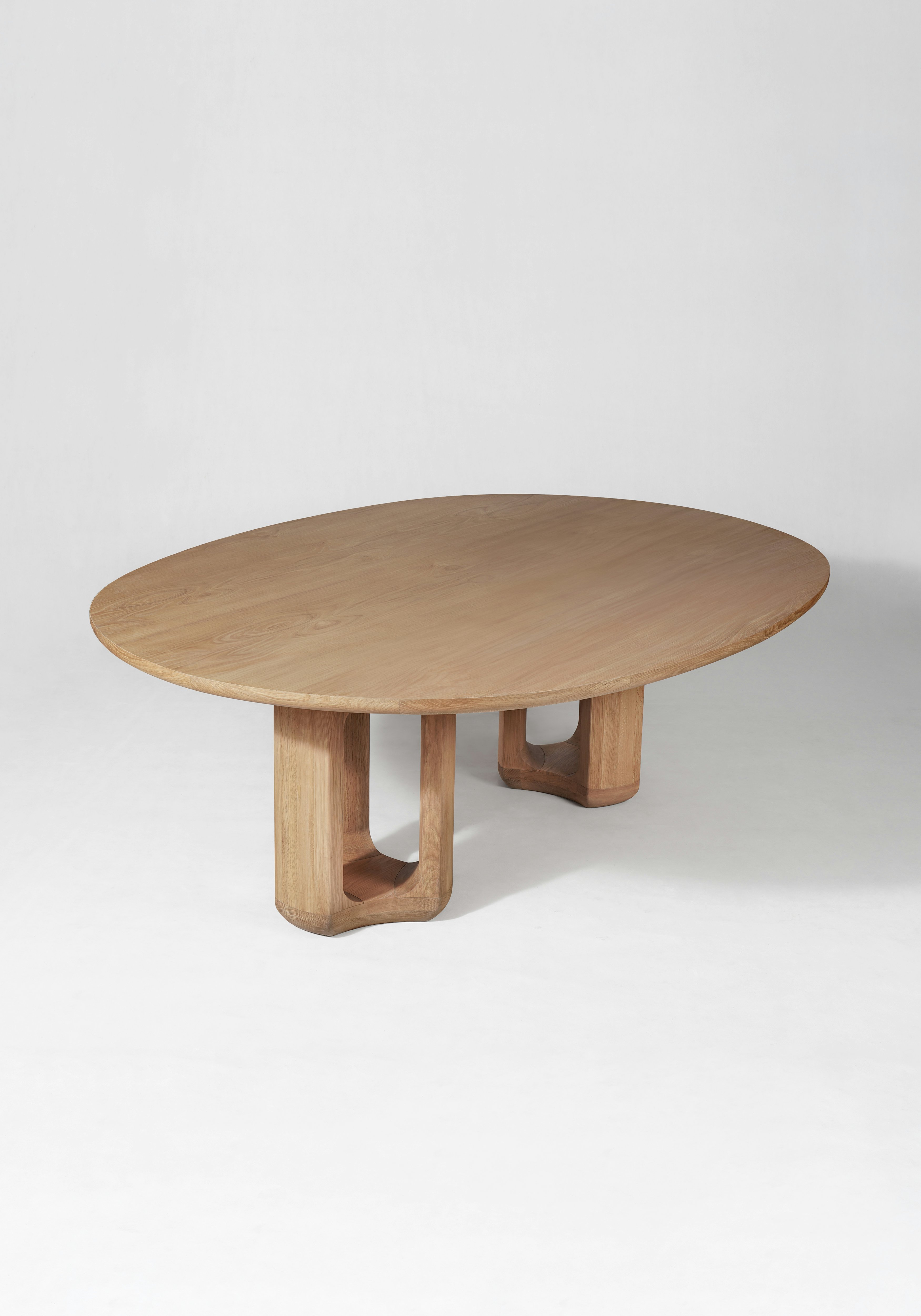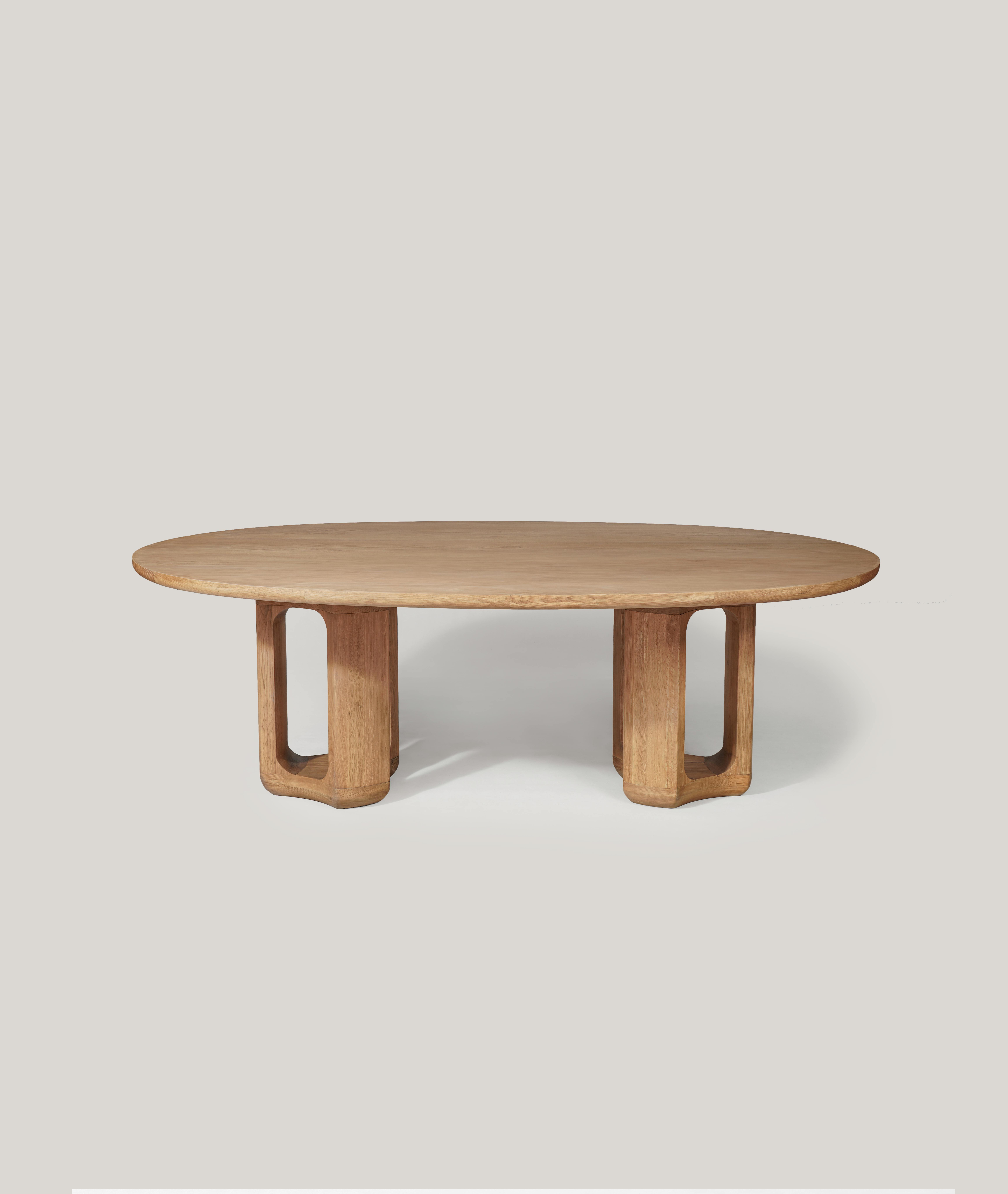 Oval dining table pictured in natural oak with a natural oak tabletop.