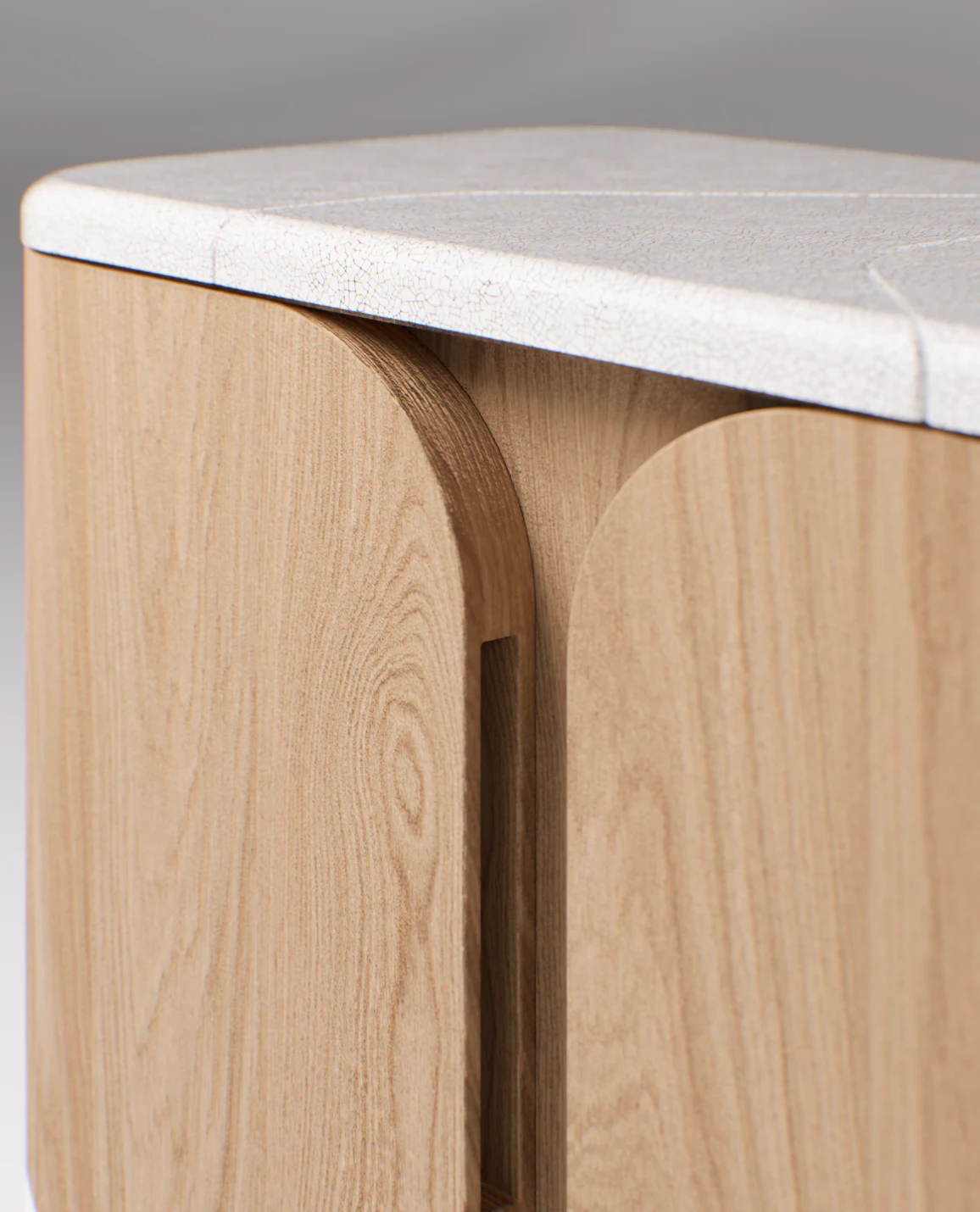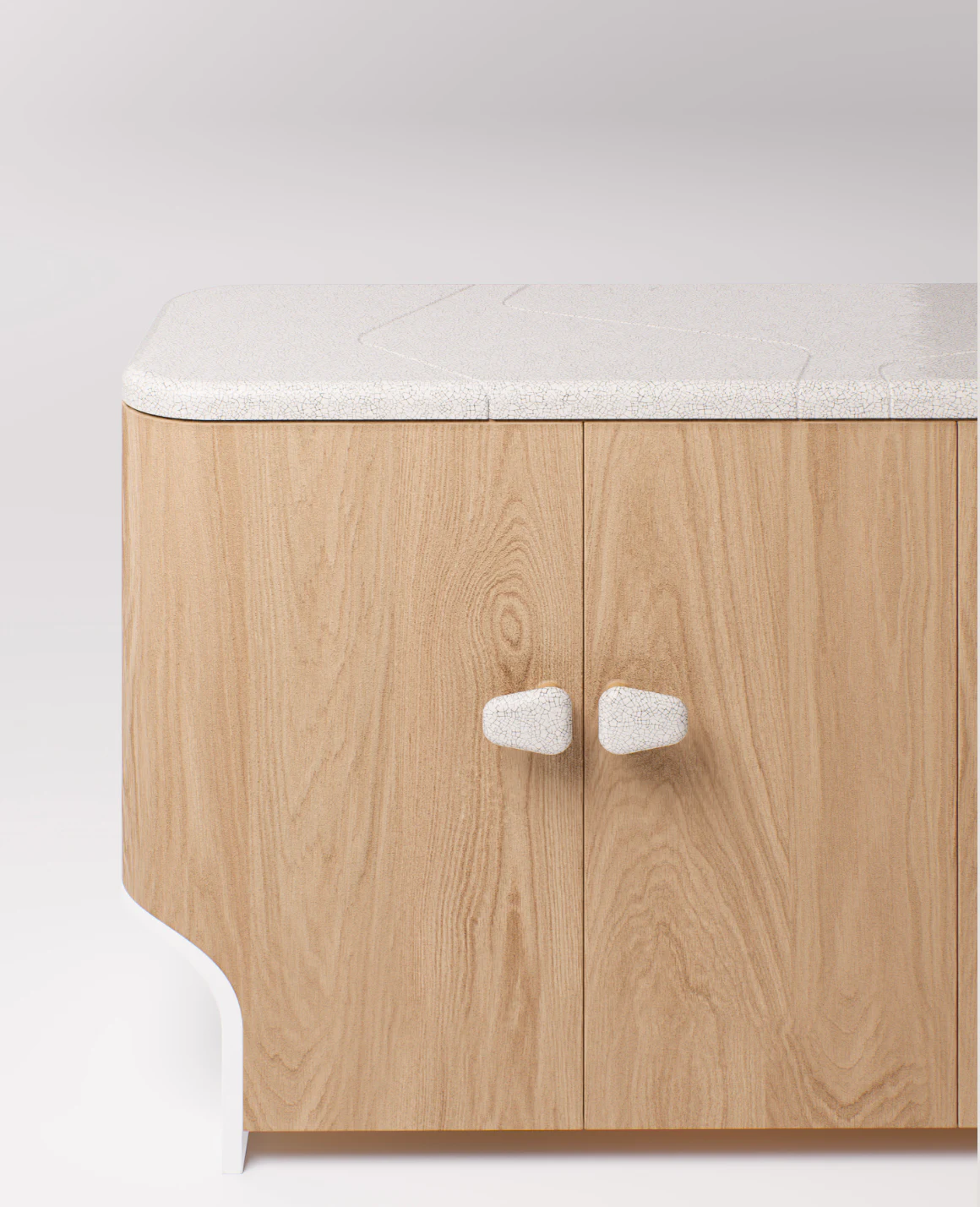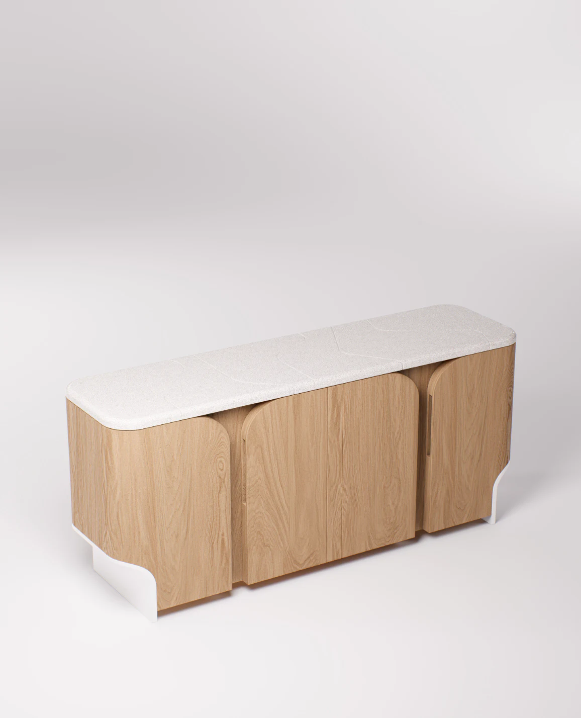 Cabinet pictured in natural oak with a top in lava stone.