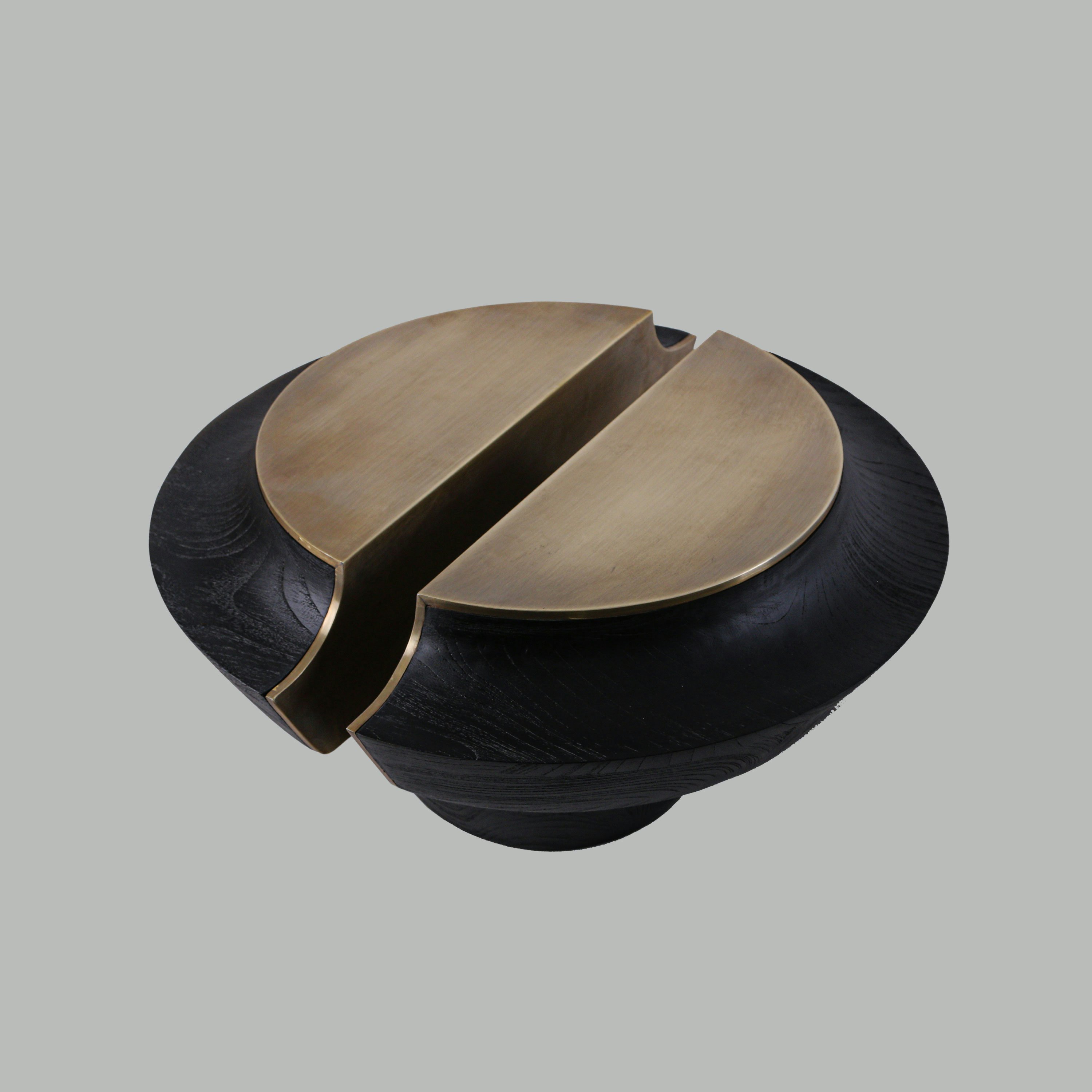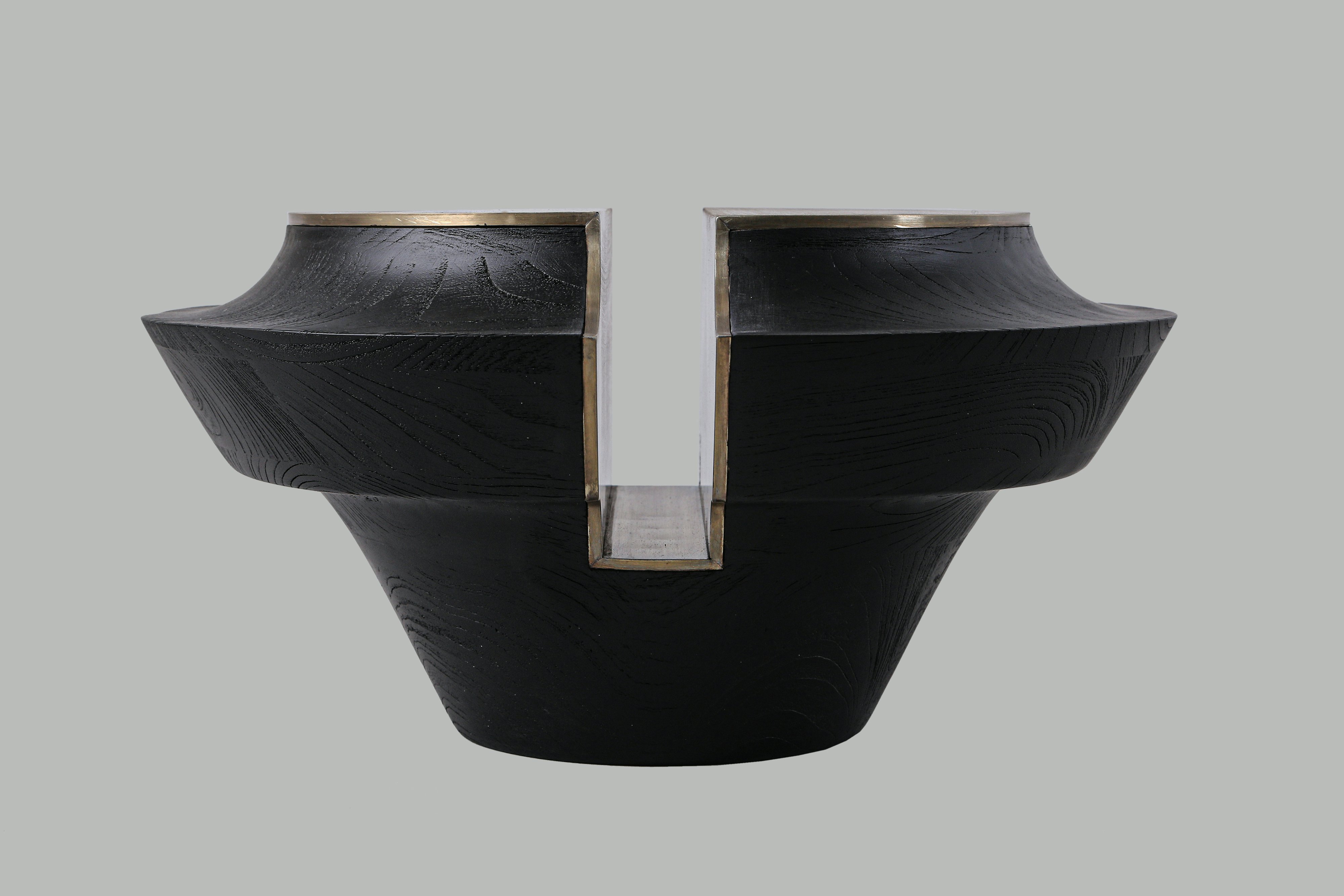 Side table pictured in black teak with Kuningan (brass) metal.