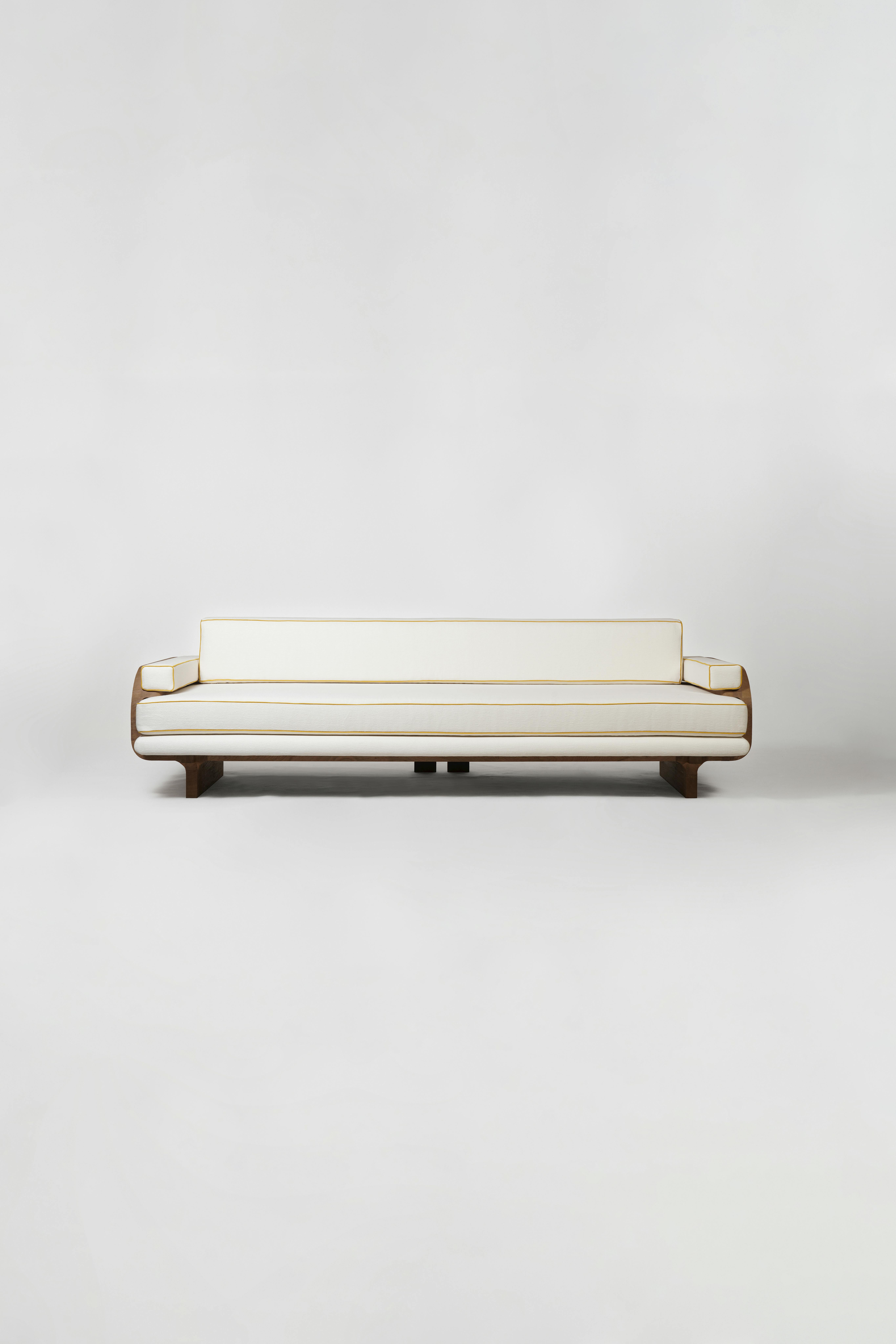 The Naksathra sofa can also be made in teak, as well as lacquered wood.