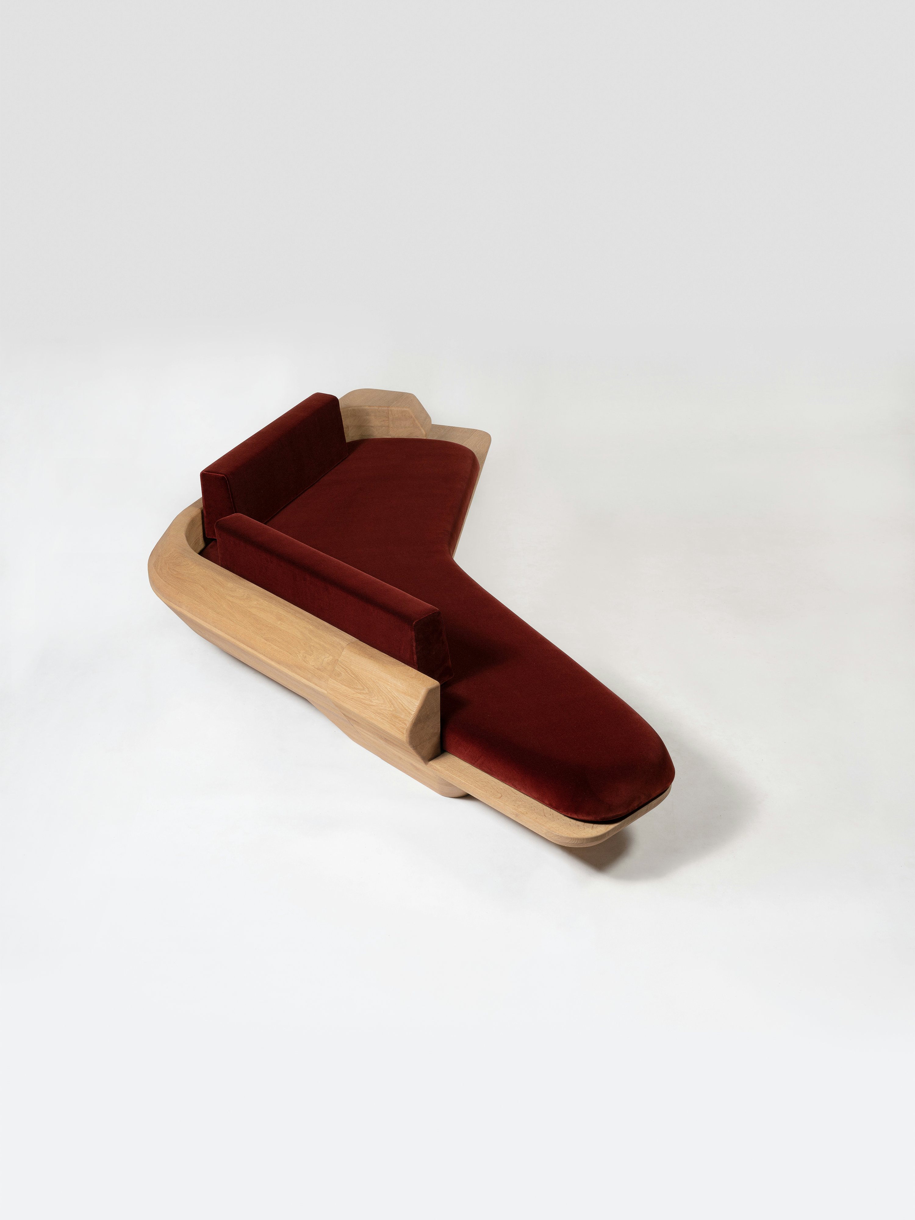 Sofa pictured in natural oak upholstered with fabric by Toyine Sellers.
