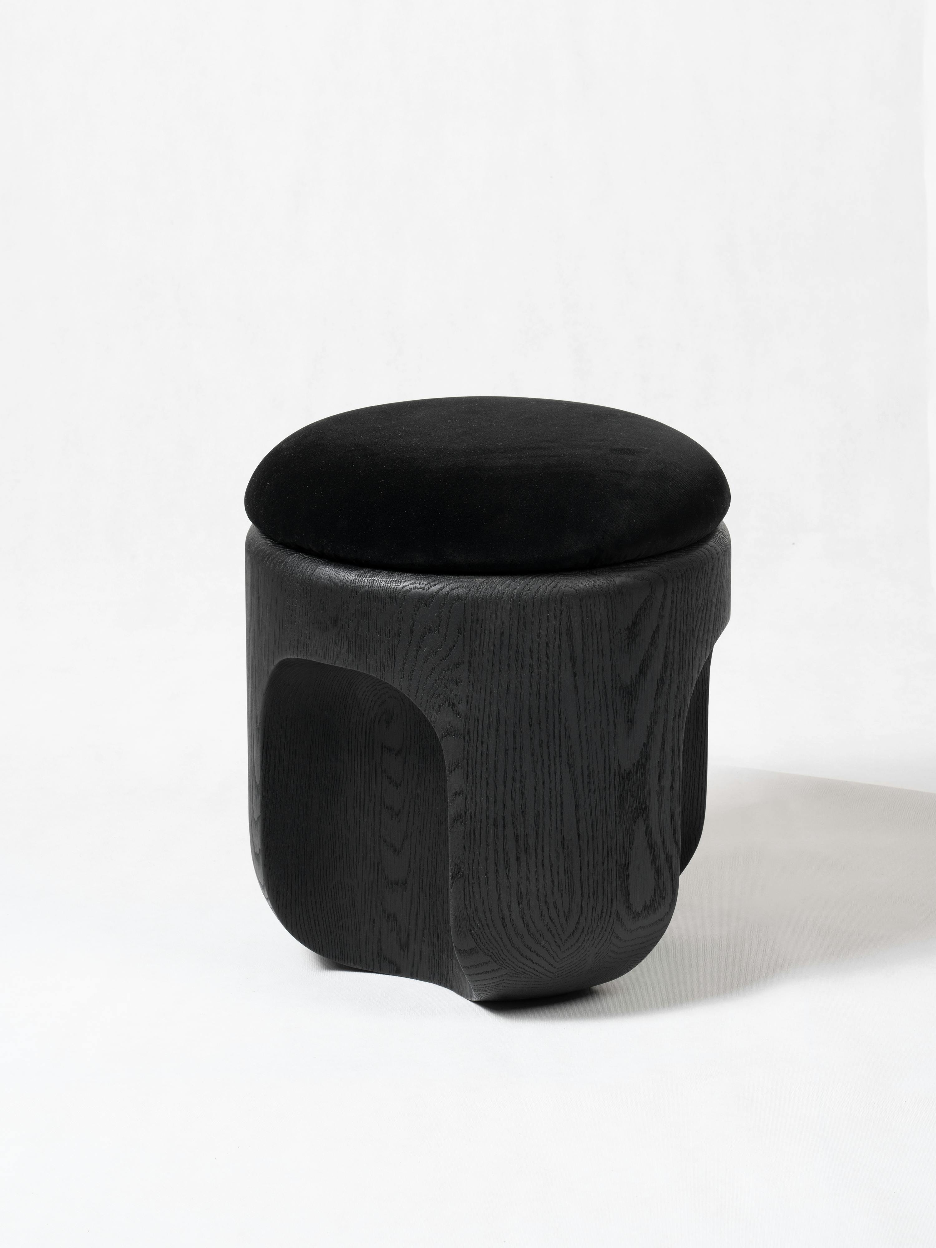The seat is upholstered with Dedar Adamo & Eva Nero.