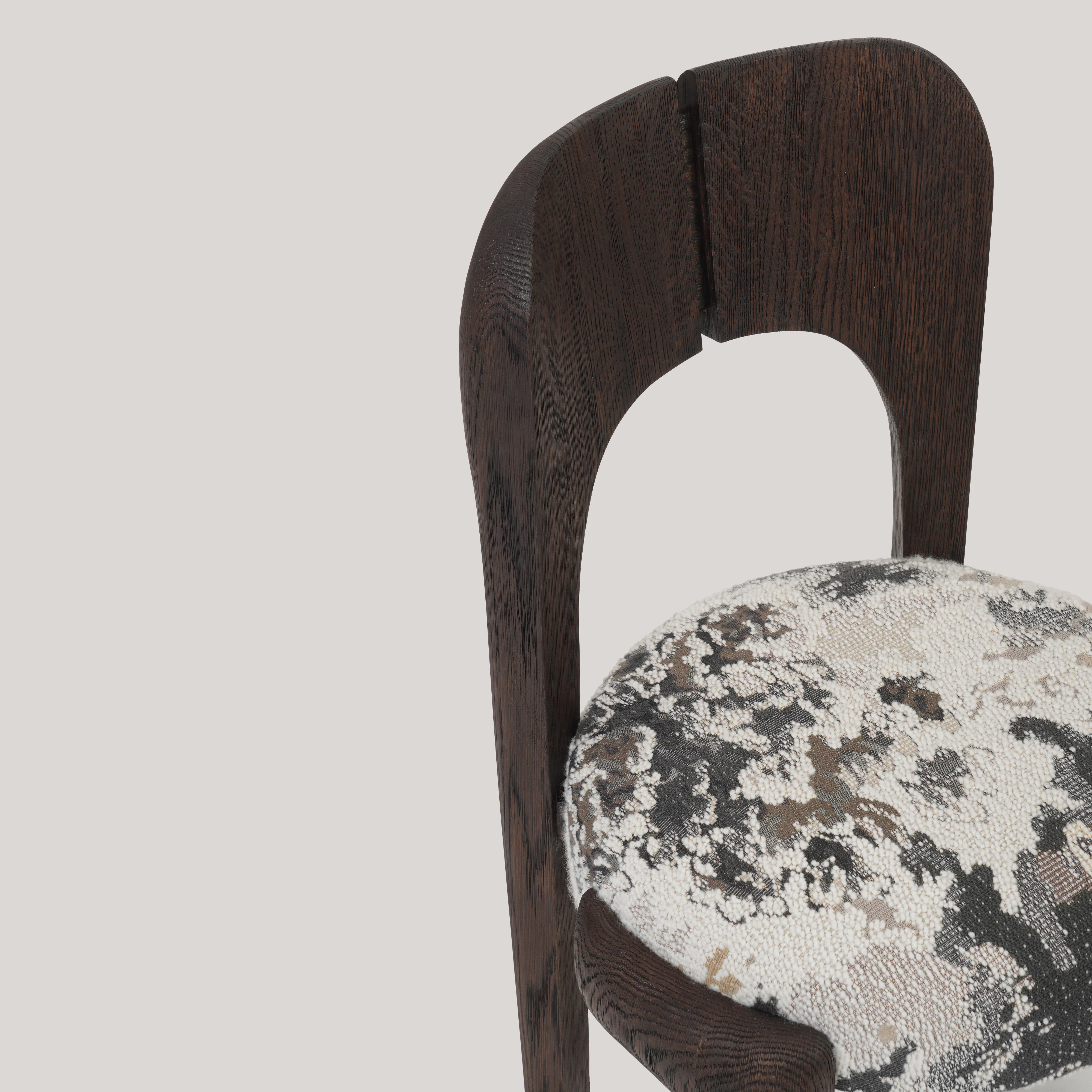 The seat is upholstered with fabric by Métaphores.